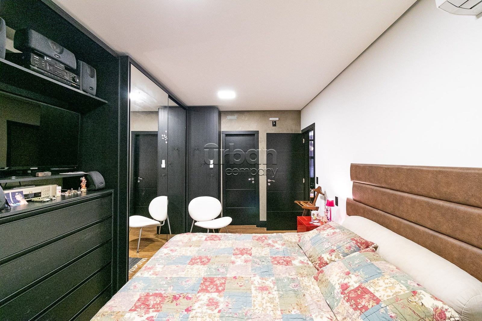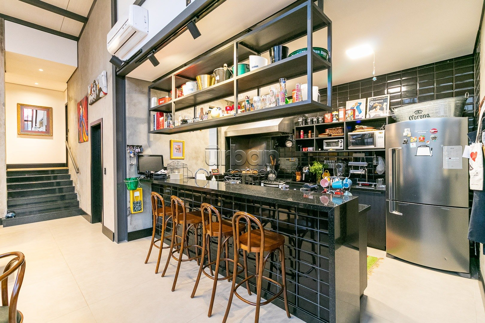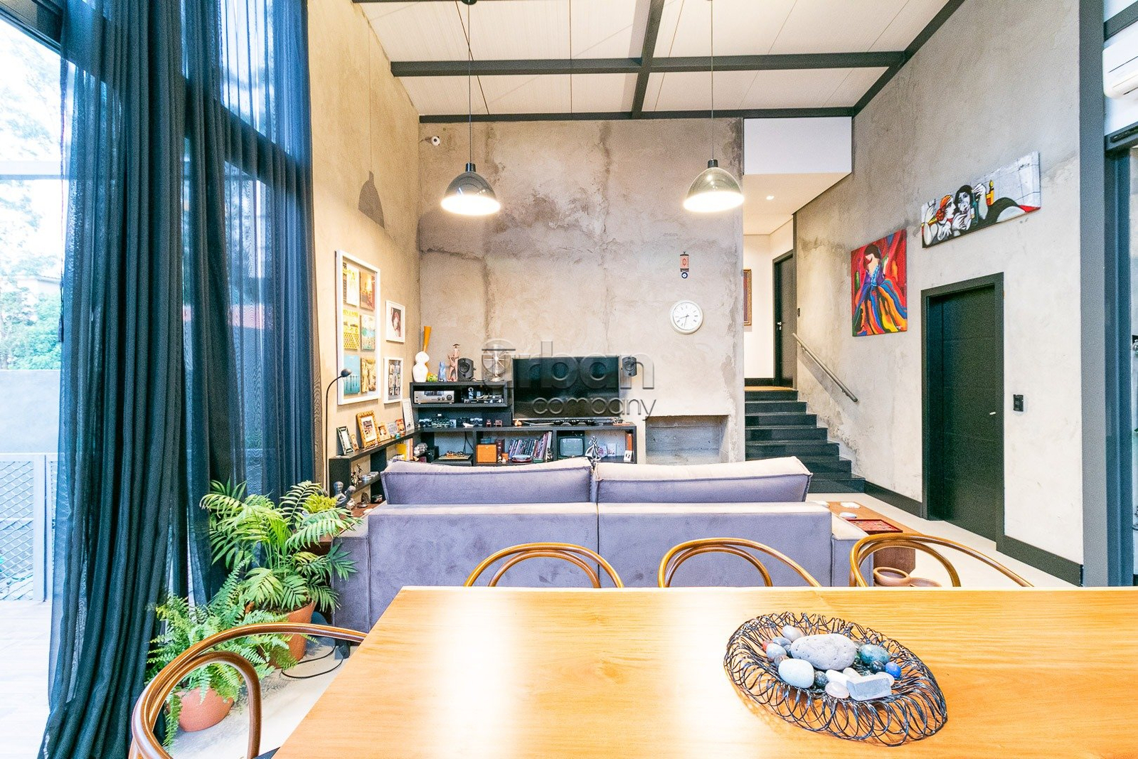 Construída em um pavimento único, a área social conta com um hall de entrada imponente, lavabo e uma ampla sala de estar e jantar, que se conectam harmoniosamente ao terraço, criando um espaço de convivência ideal. O home theater com lareira adiciona aconchego, enquanto o pé direito duplo possibilita a criação de um mezanino, ampliando as possibilidades do ambiente. A cozinha integrada é funcional e sofisticada, equipada com churrasqueira e acompanhada de uma lavanderia bem planejada.