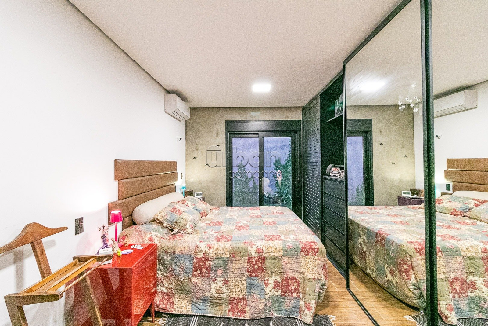 Na área íntima, três dormitórios oferecem privacidade e conforto, sendo um deles uma suíte espaçosa. Tanto a suíte quanto um dos dormitórios possuem acesso direto ao jardim externo, proporcionando conexão com a natureza e um ambiente tranquilo.