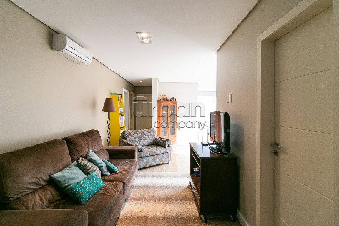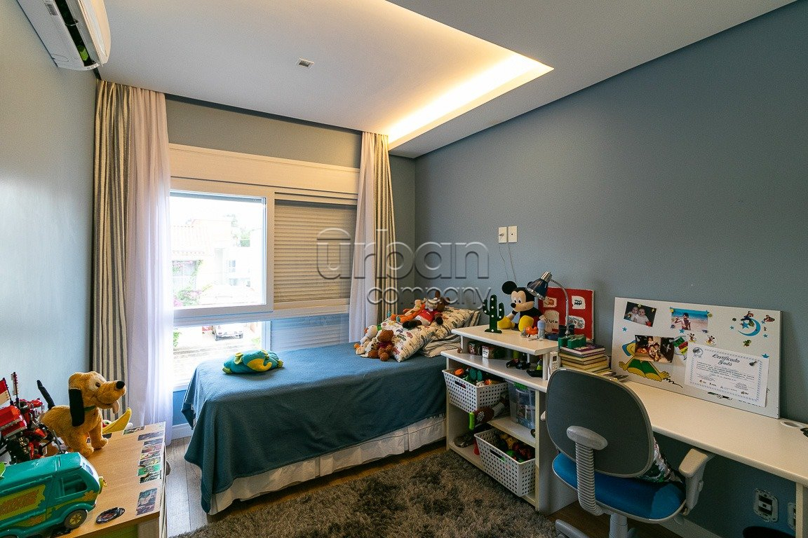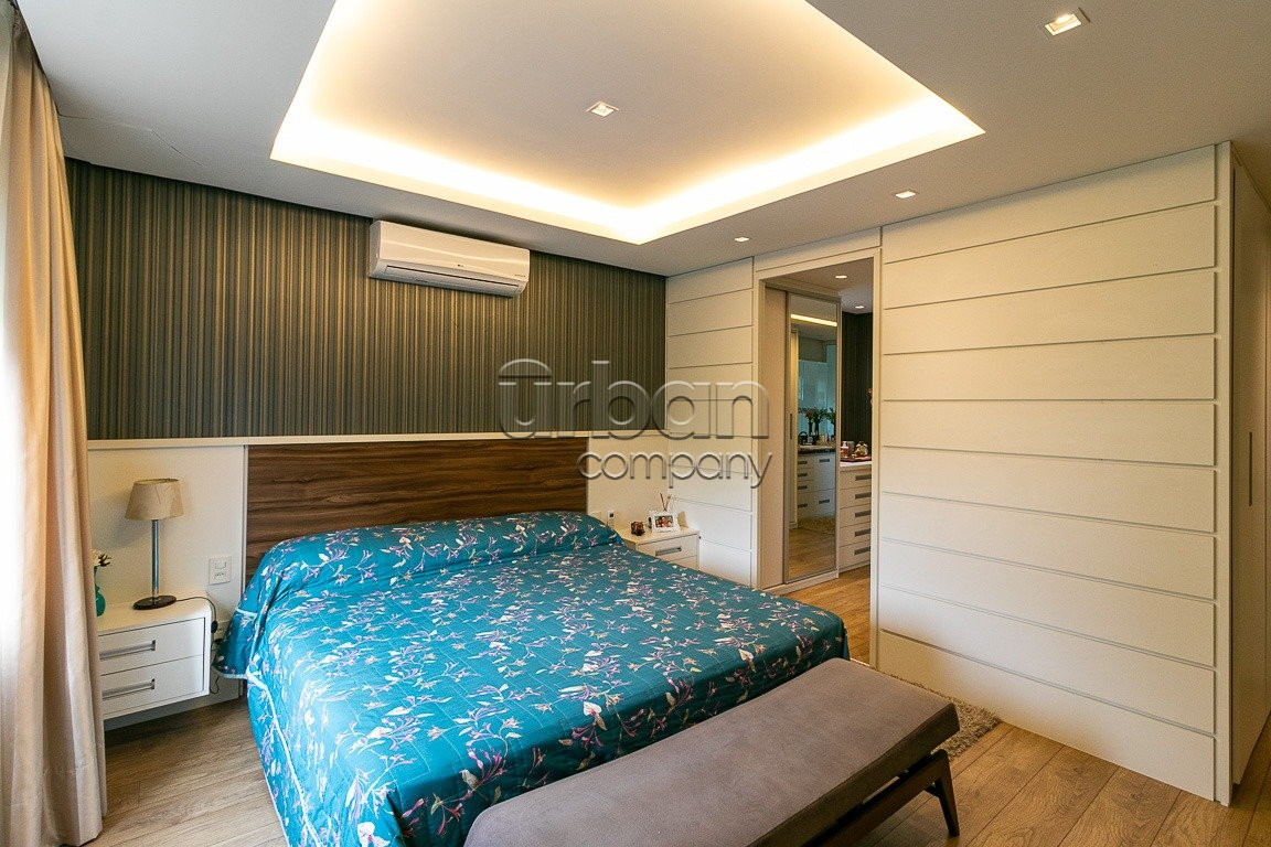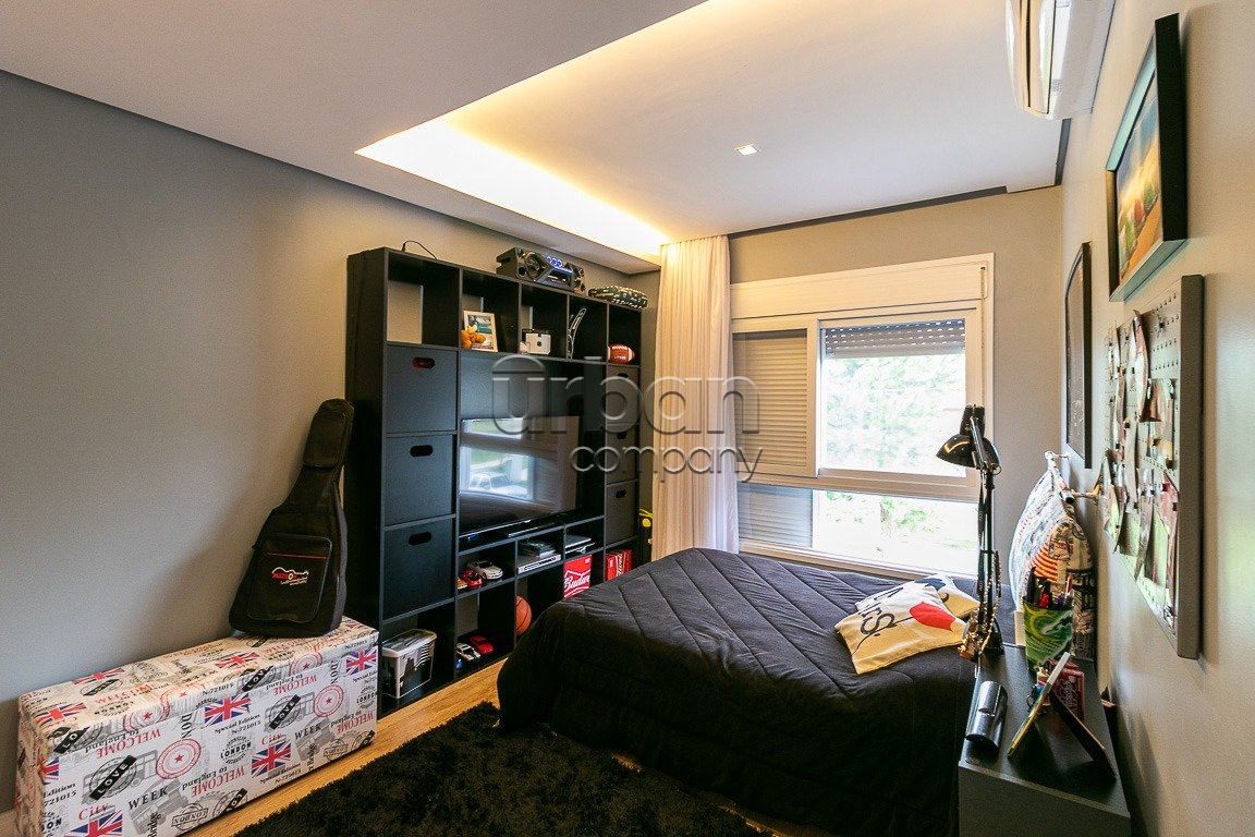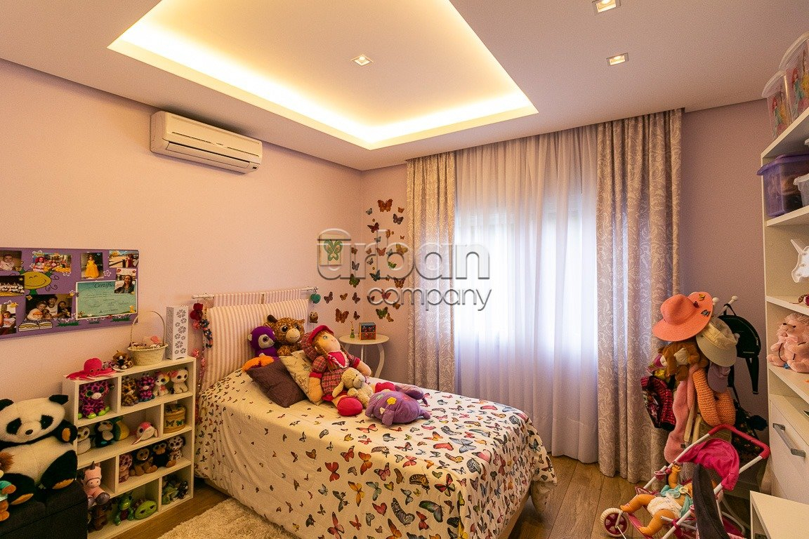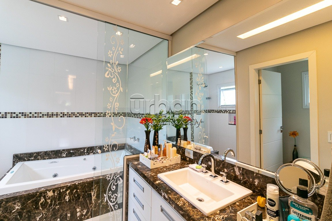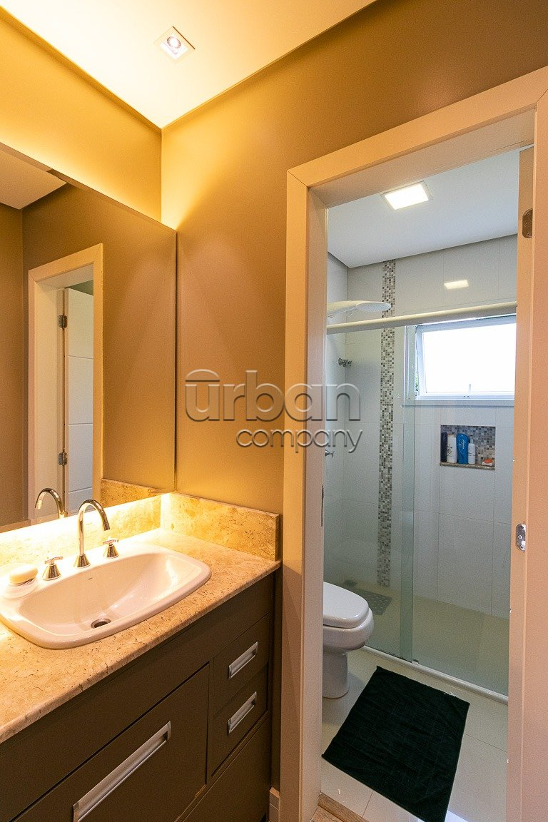 Com 250m² de área privativa, o pavimento térreo dispõe de um hall de entrada que dá as boas-vindas a uma ampla sala de estar com lareira, ideal para momentos aconchegantes. A sala de jantar conecta-se harmoniosamente à cozinha integrada, equipada com bancada de ilha e espaço gourmet com churrasqueira. A área social se estende até um lindo jardim com deck, proporcionando um espaço agradável para lazer e convivência. O térreo ainda conta com lavabo e lavanderia, garantindo praticidade no dia a dia.