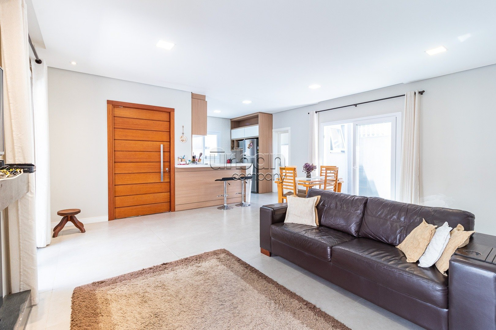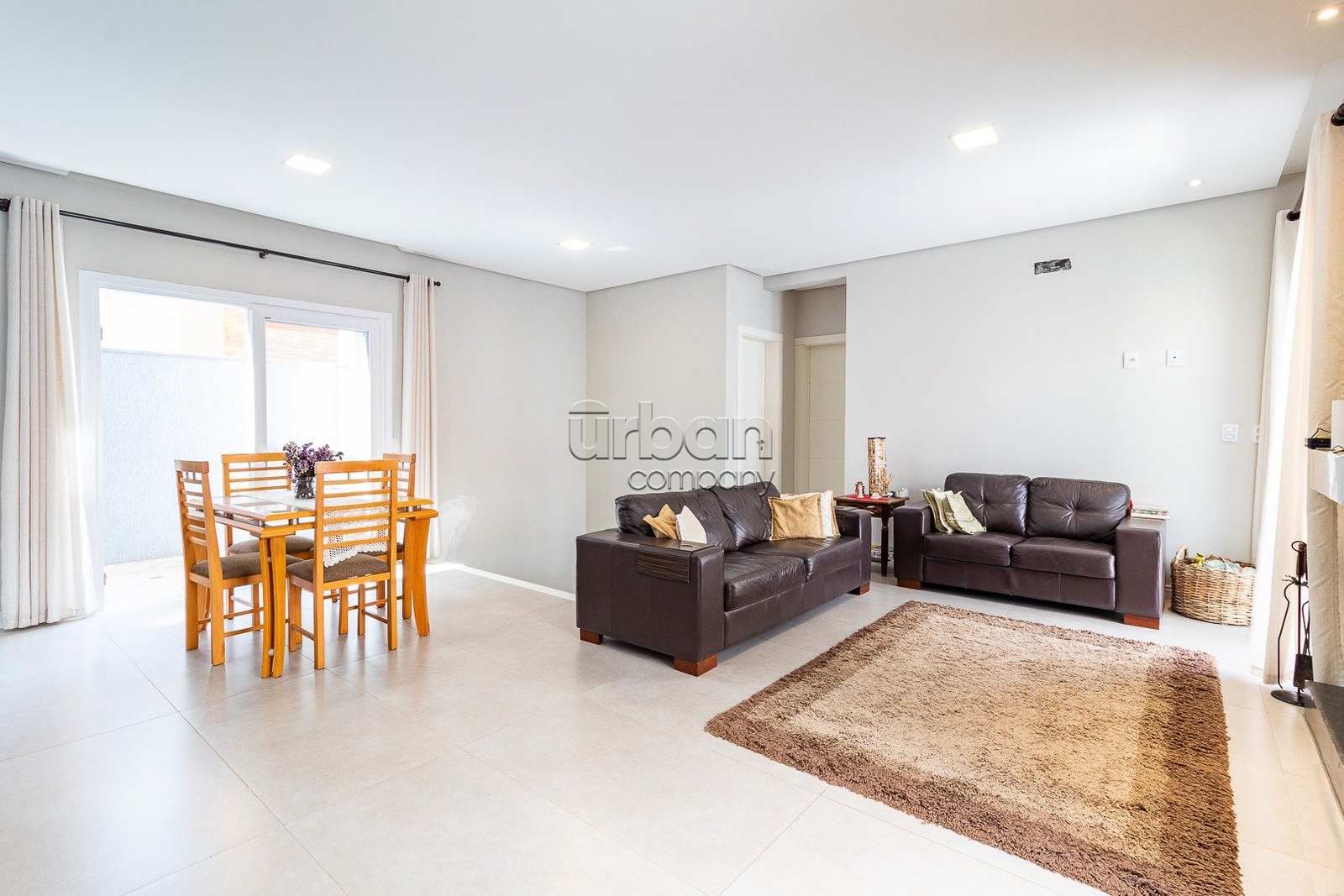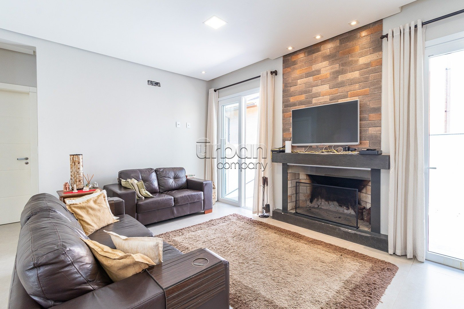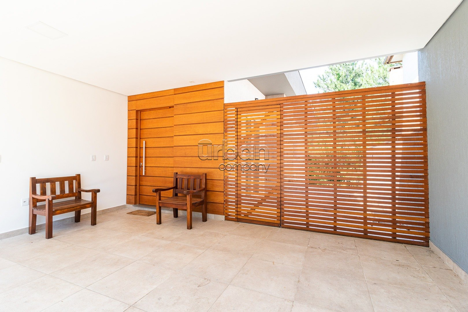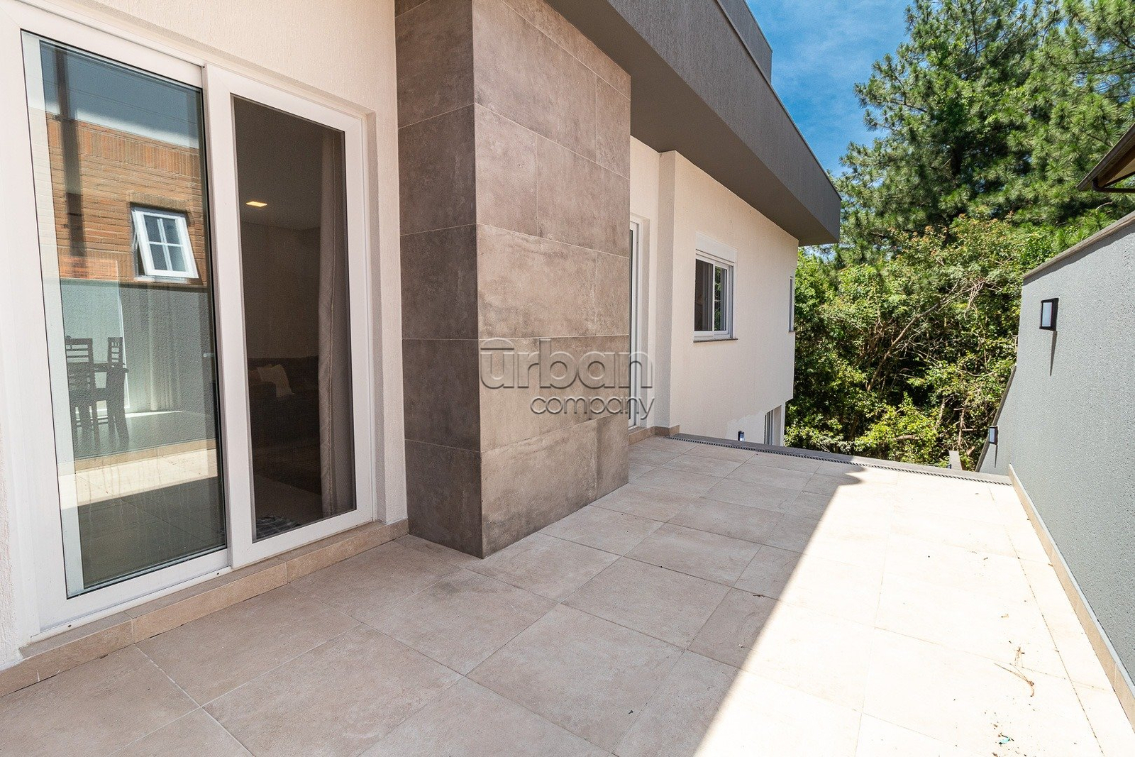 O pavimento térreo conta com sala de estar com lareira, sala de jantar, cozinha mobiliada e lavanderia. Na área íntima, três dormitórios, sendo uma suíte com sacada e um banheiro.