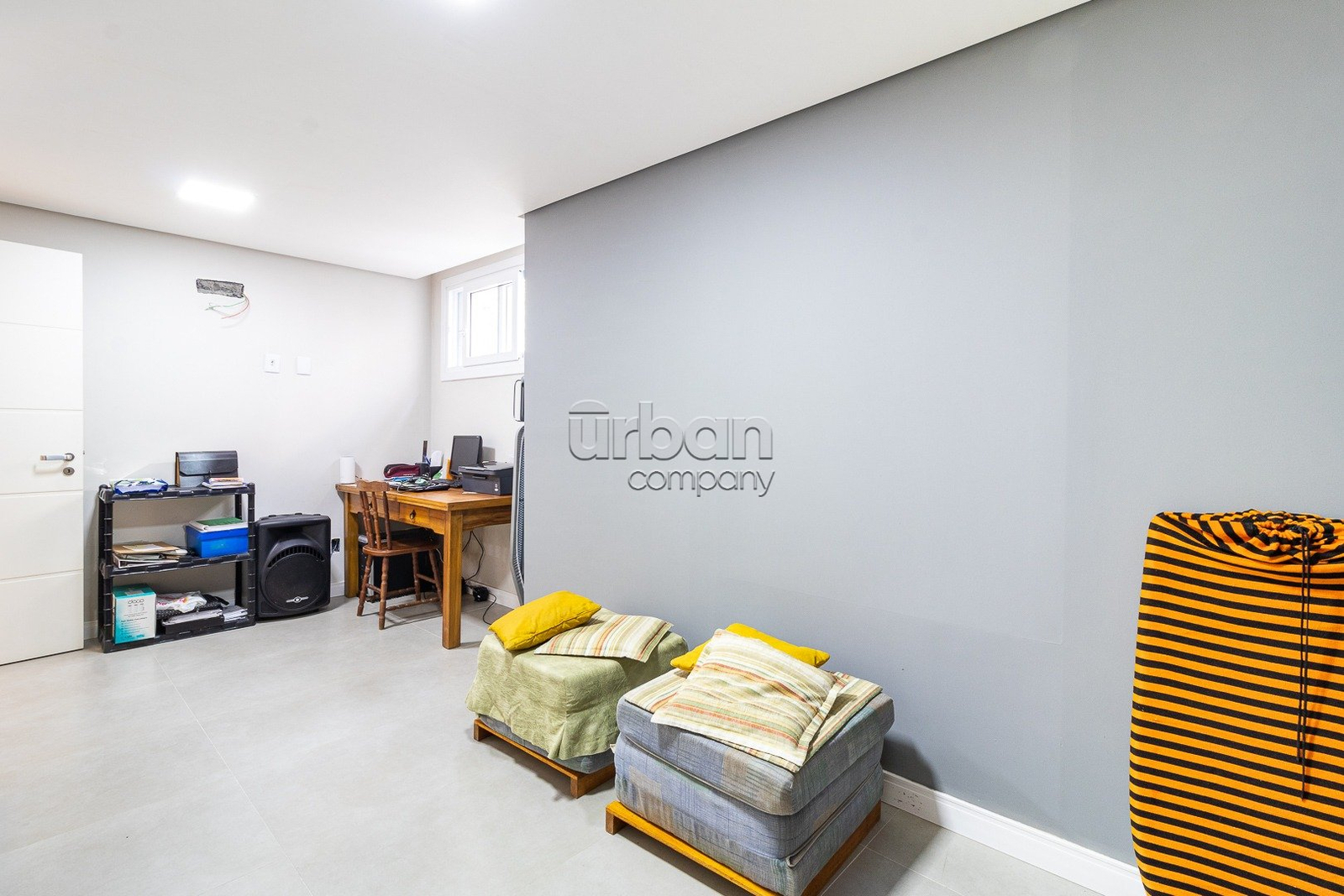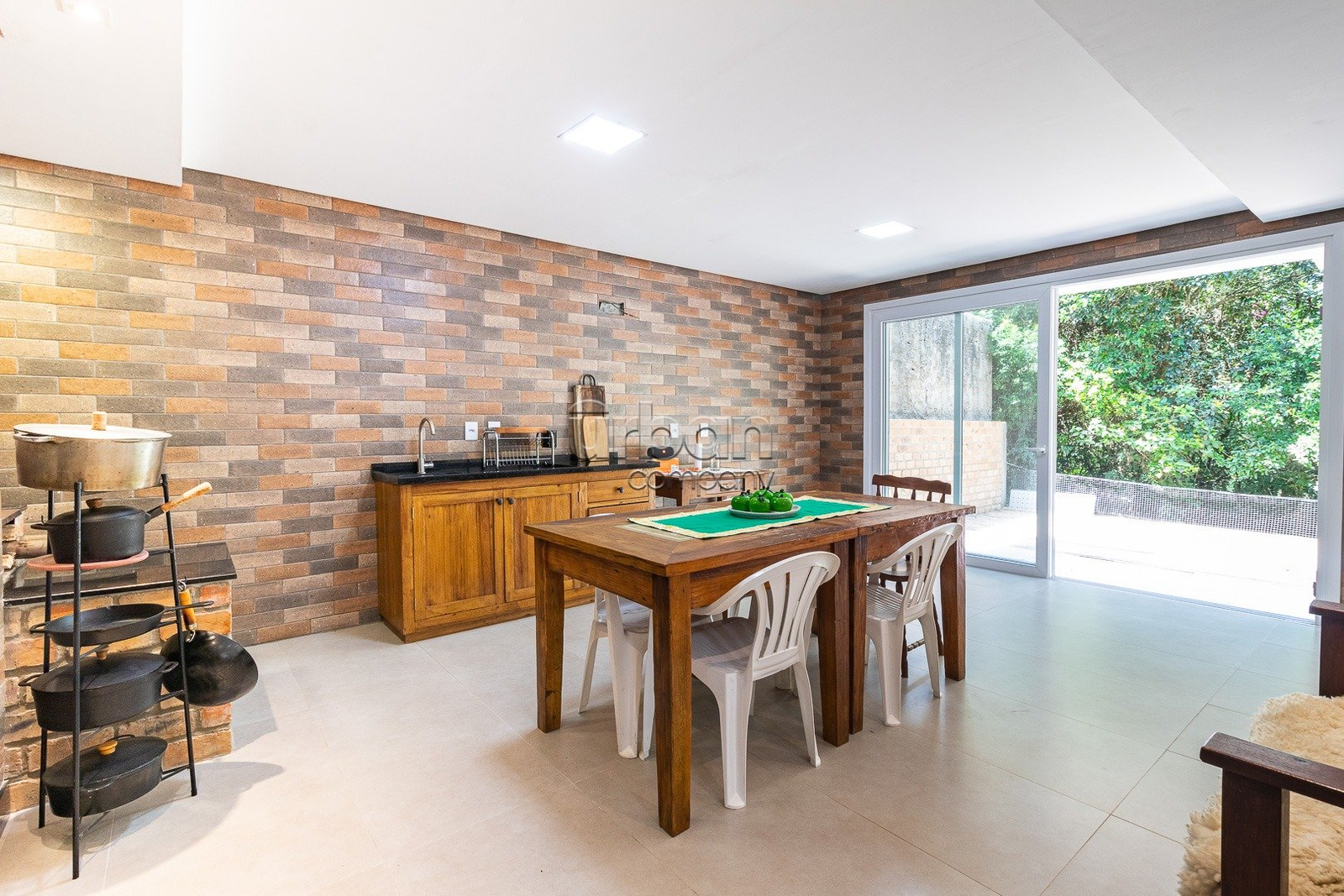 No subsolo há um amplo espaço gourmet com churrasqueira e fogão a lenha, um escritório, banheiro social, lavanderia e depósito.