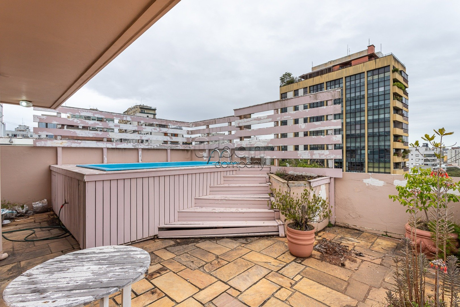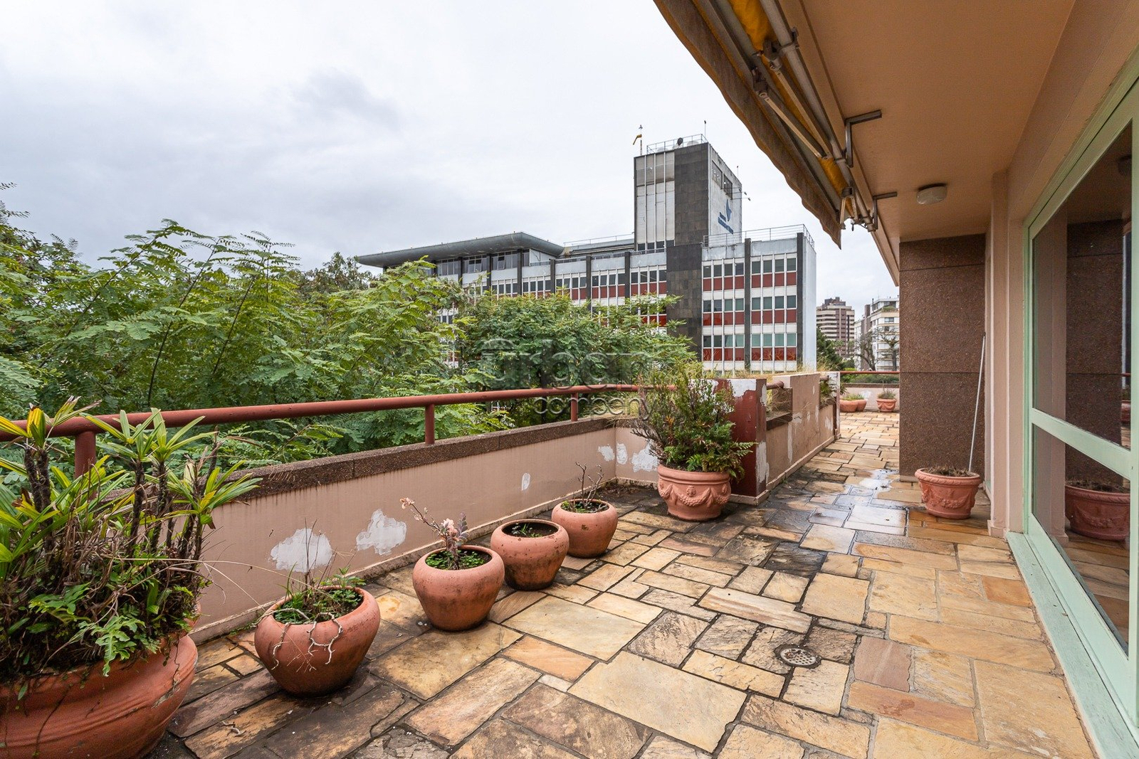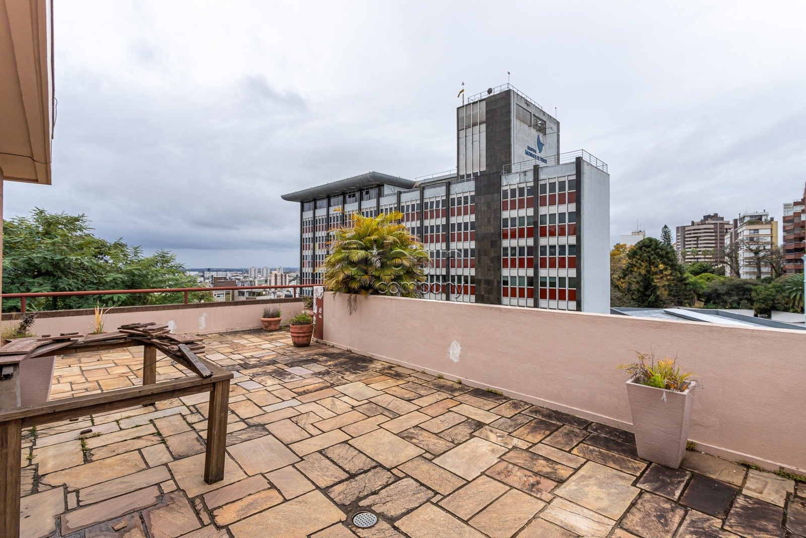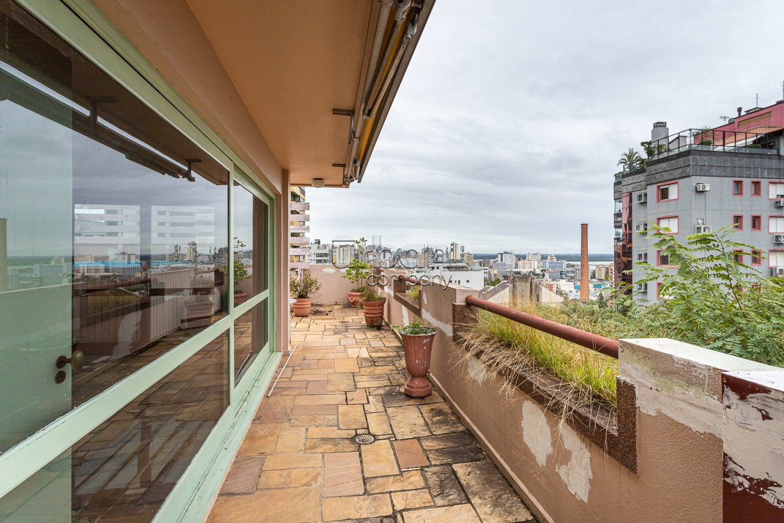 Cobertura com 424,65 metros privativos, 4 dormitórios, amplo living com lareira, sacada integrada a sala de jantar , área de serviço e dependência de empregada completa. Na parte superior sala de estar, banheiro e terraço com piscina e uma linda vista para o Guaíba, 2 vagas de garagem simples com deposito.