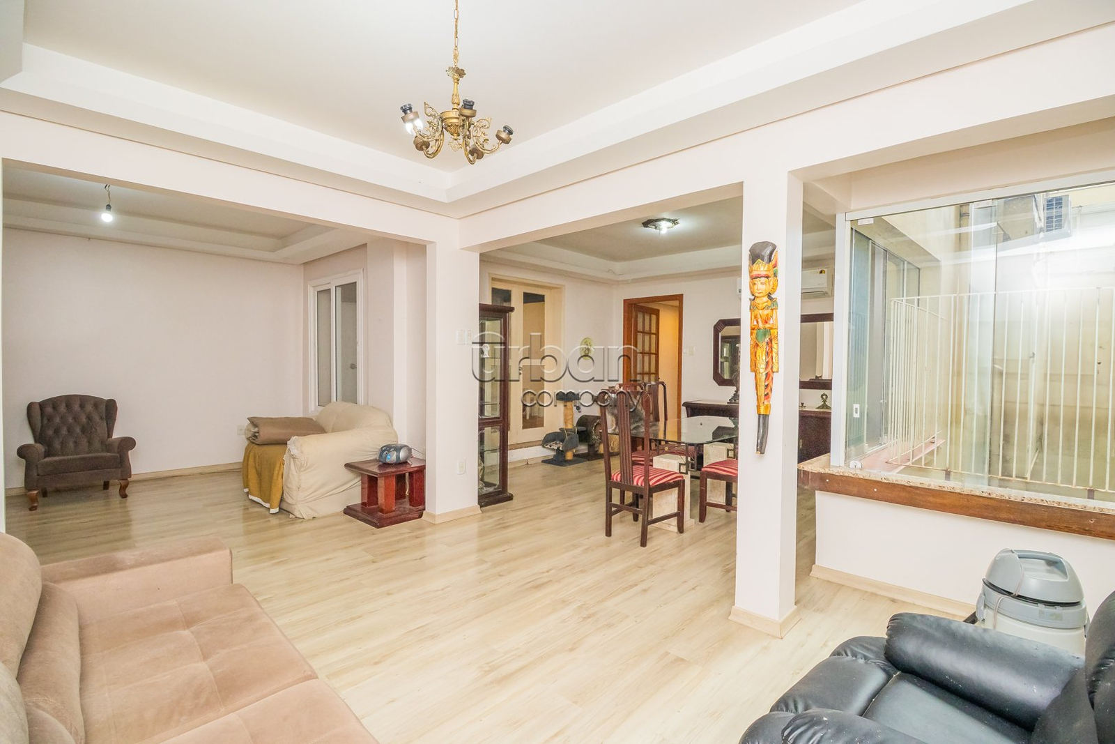 Apartamento com 112,22 metros privativos, 2 dormitórios, possibilidade de ser transformado em 3 dormitórios, 1 suíte com uma pequena sacada, living para três ambientes com sala de estar e jantar definida e espera para lareira.