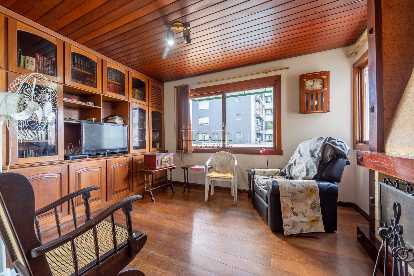 Na parte superior, o destaque fica por conta do terraço privativo com piscina, um convidativo espaço gourmet com churrasqueira e um aconchegante escritório com lareira, ideal para o home office ou momentos de leitura. O imóvel ainda conta com duas vagas de garagem cobertas, garantindo praticidade e segurança.