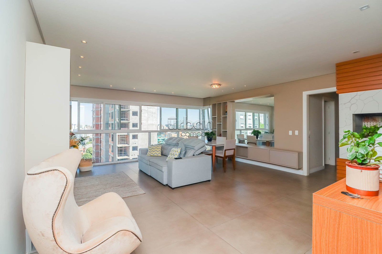 Apartamento semi mobiliado com 108 metros privativos, 3 dormitórios sendo 1 suíte com closet, living três ambientes com janelas piso teto gerando maior luminosidade e vista panorâmica, conta também com churrasqueira. Apartamento com 2 vagas de garagem. Ficam no apartamento todos móveis sob medida.