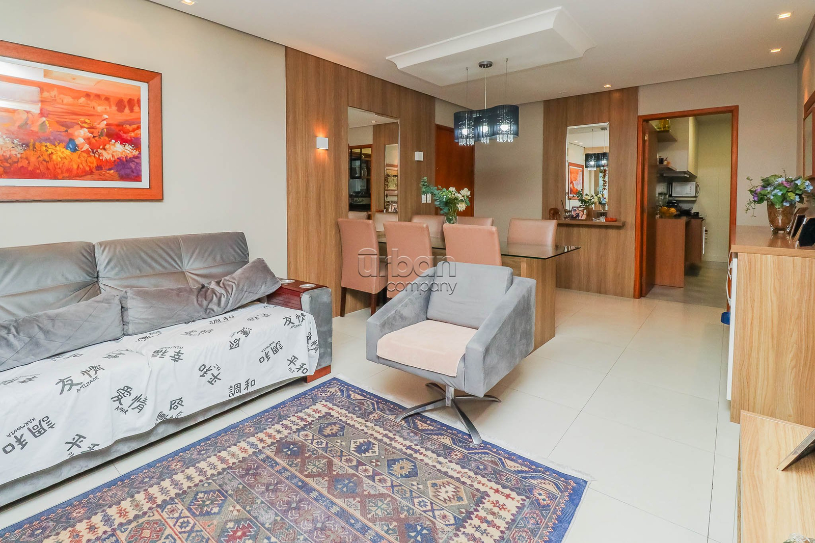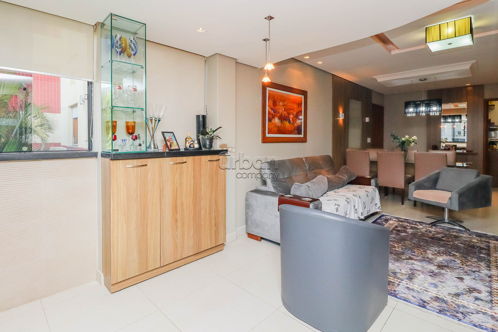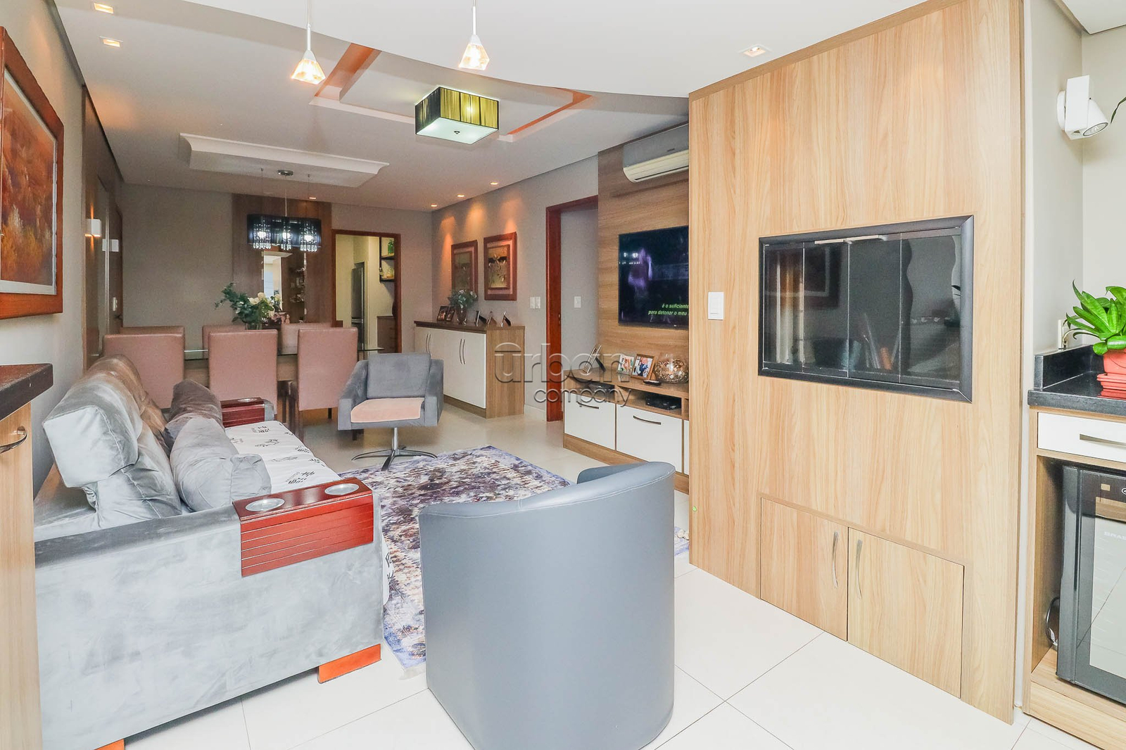 com excelente posição solar norte, aberta, iluminação e ventilação em todos os cômodos, 03 dormitórios sendo 1 suíte, Living 2 amplos ambientes com sacada integrada, com barzinho, churrasqueira, espera para lareira, Cozinha com ampla área de serviço separada e banheiro auxiliar. Ficam todos móveis fixos e ar condicionado de todas as peças. 01 vaga de garagem coberta. Gás central individualizado, monitoramento por câmeras de segurança, zelador, salão de festas.