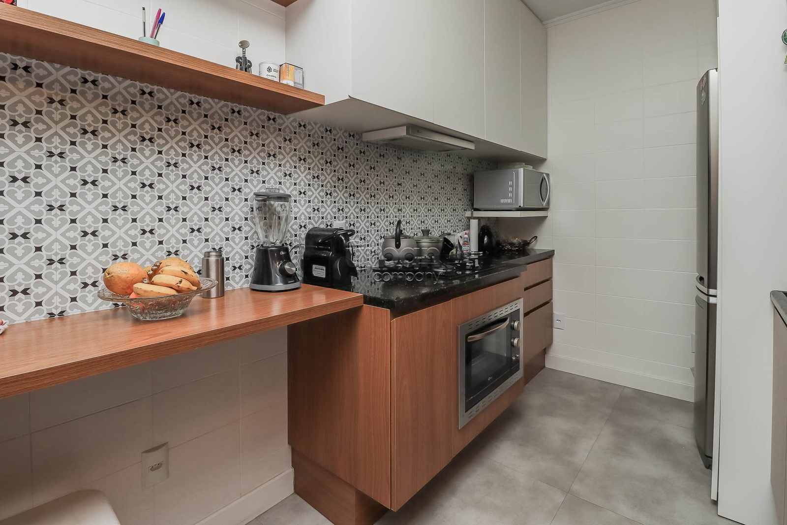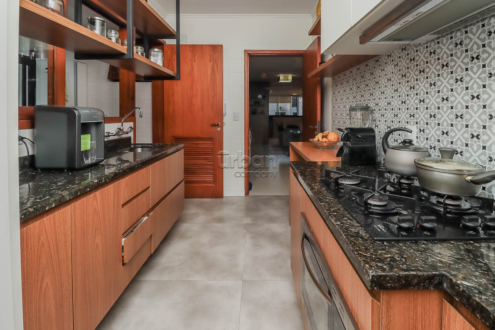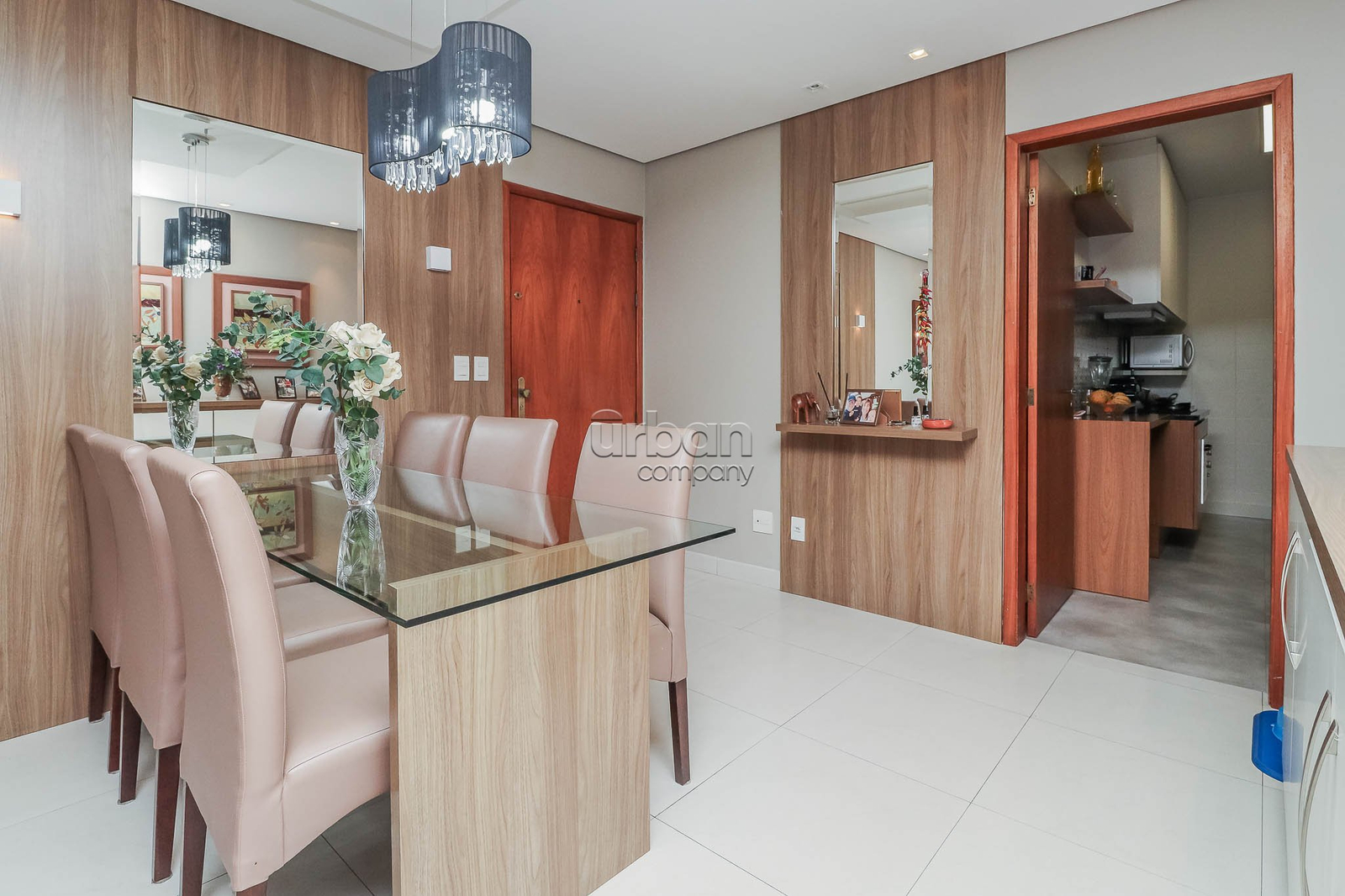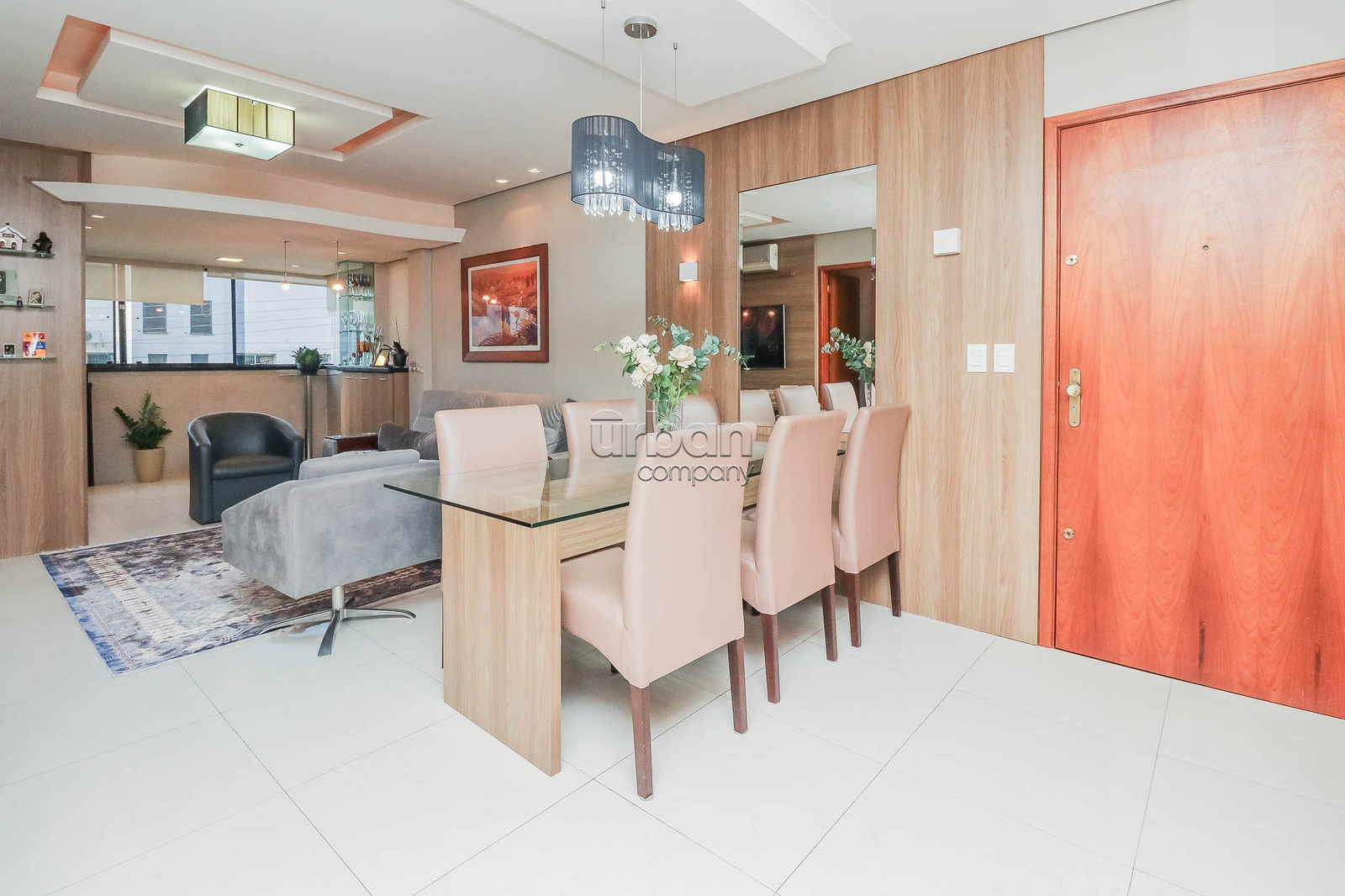 com excelente posição solar norte, aberta, iluminação e ventilação em todos os cômodos, 03 dormitórios sendo 1 suíte, Living 2 amplos ambientes com sacada integrada, com barzinho, churrasqueira, espera para lareira, Cozinha com ampla área de serviço separada e banheiro auxiliar. Ficam todos móveis fixos e ar condicionado de todas as peças. 01 vaga de garagem coberta. Gás central individualizado, monitoramento por câmeras de segurança, zelador, salão de festas.