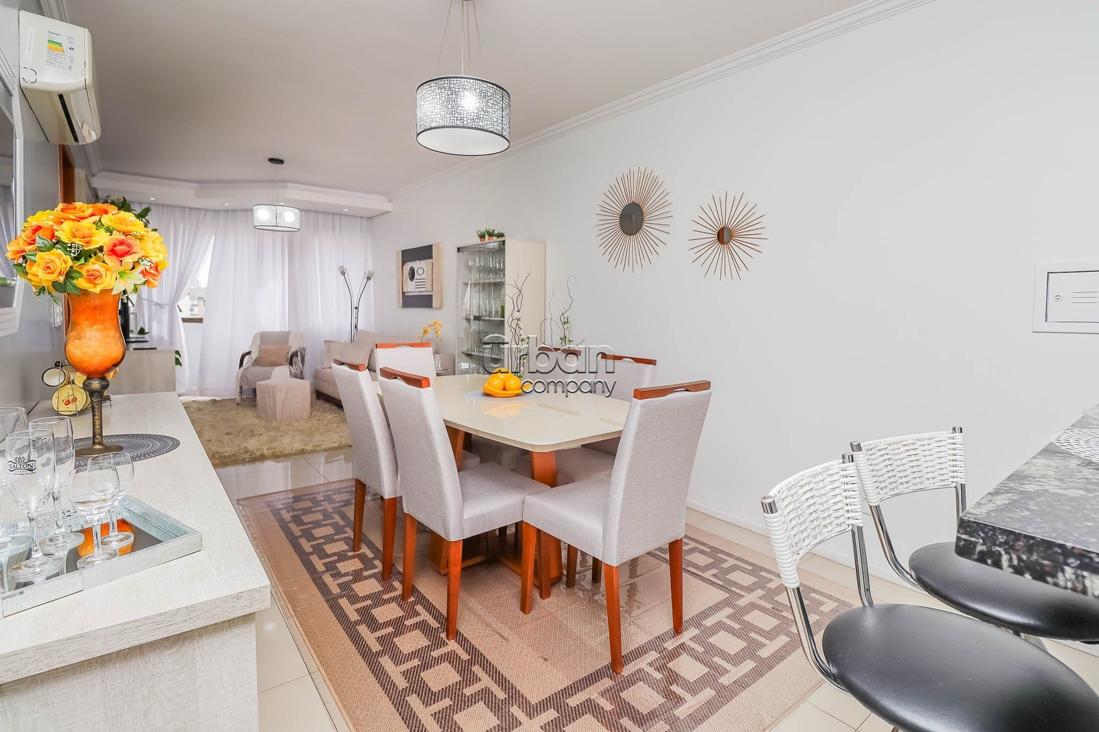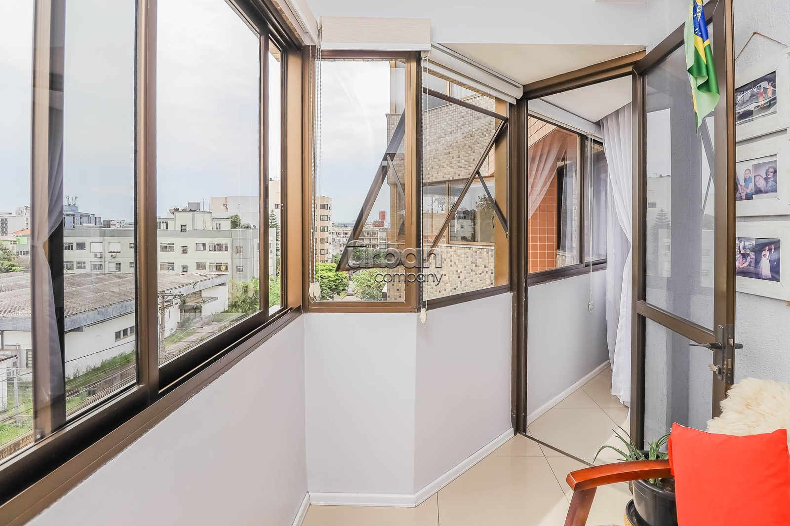 ambientes com sala de estar e jantar definida, ampla sacada fechada.