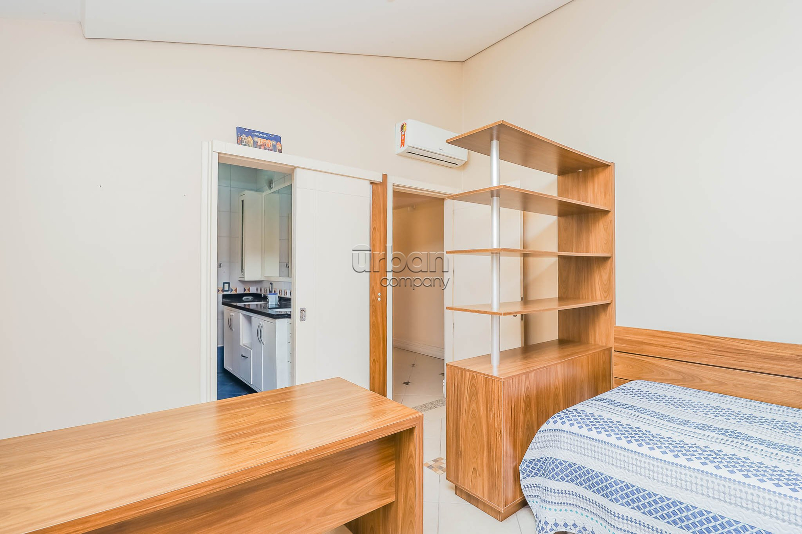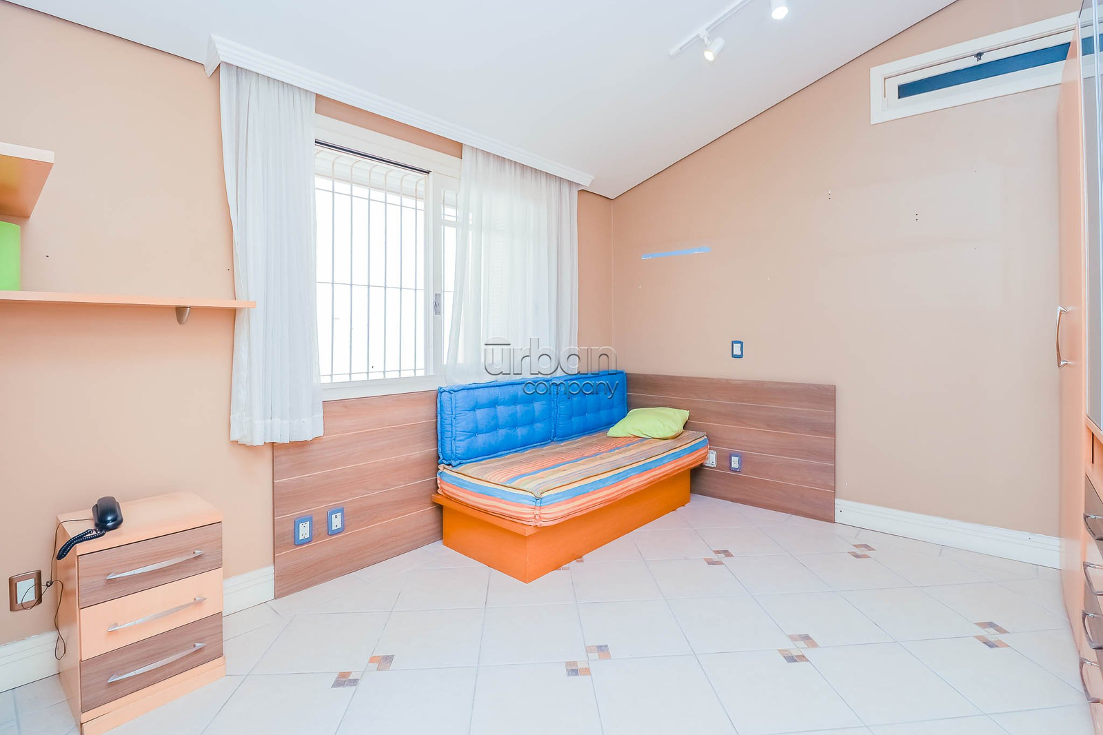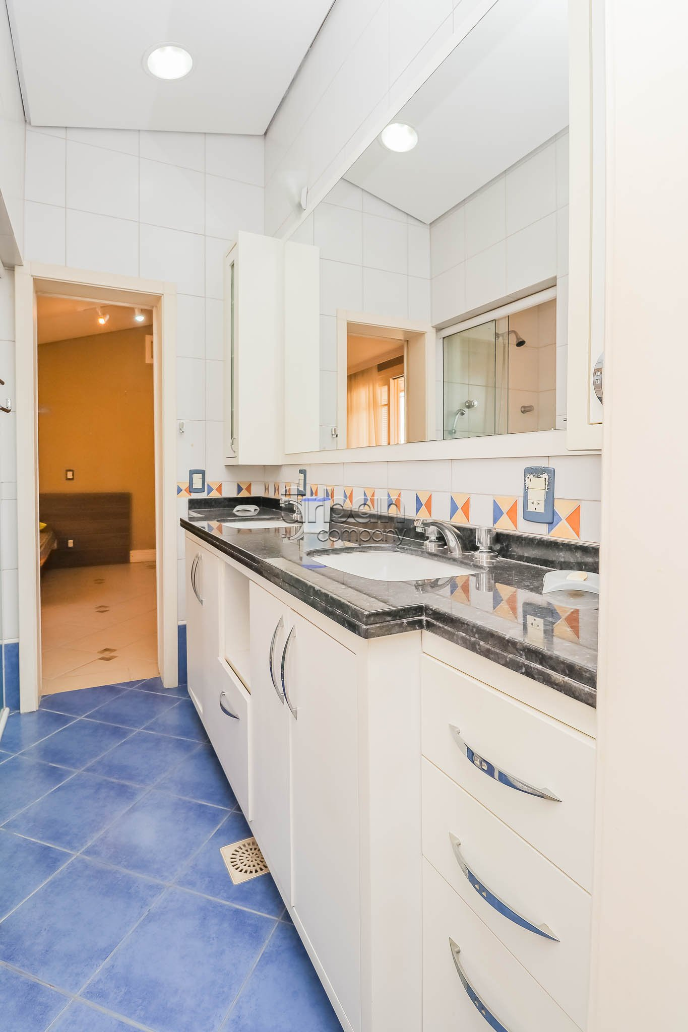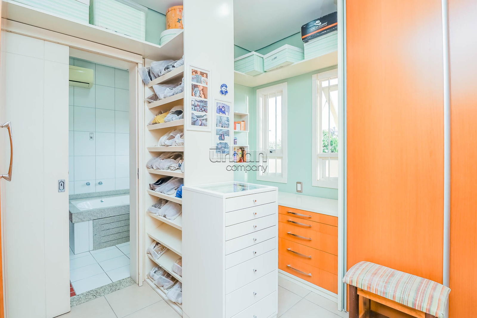 O andar superior abriga a suíte master com closet, banheiro com hidromassagem e sacada externa. Duas suítes estilo americano oferecem conforto adicional, acompanhadas por uma sala íntima e mais um escritório, ideal para quem precisa de um espaço reservado para trabalho ou estudo.
