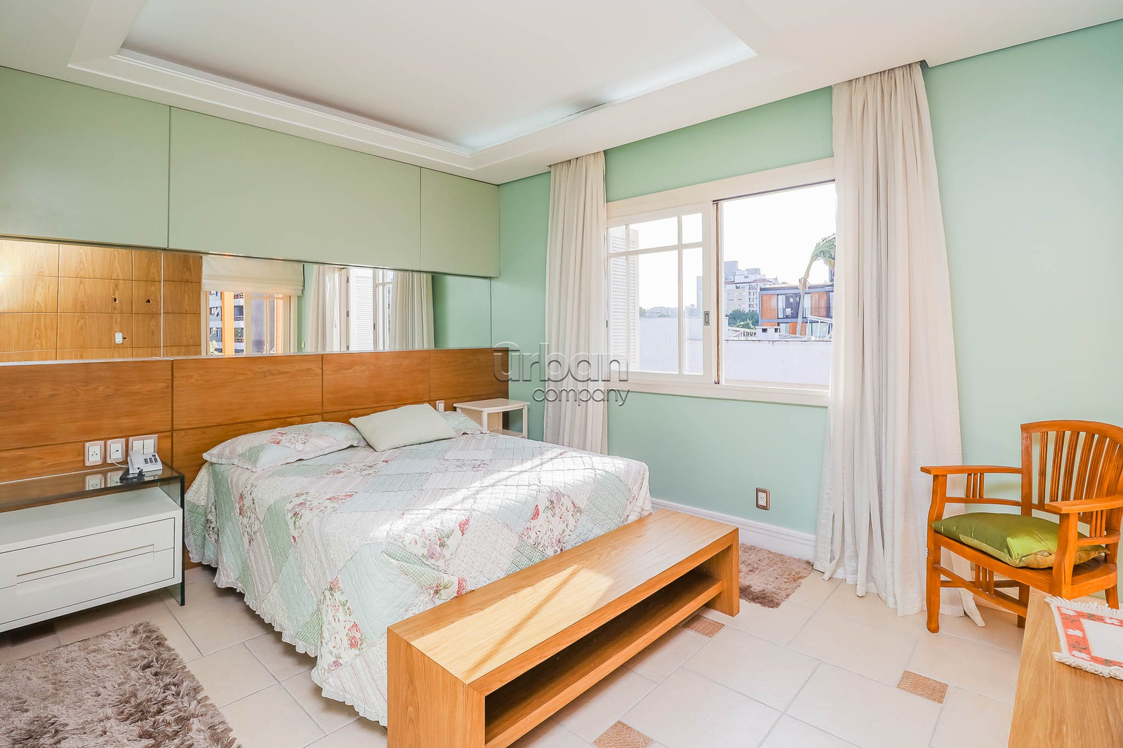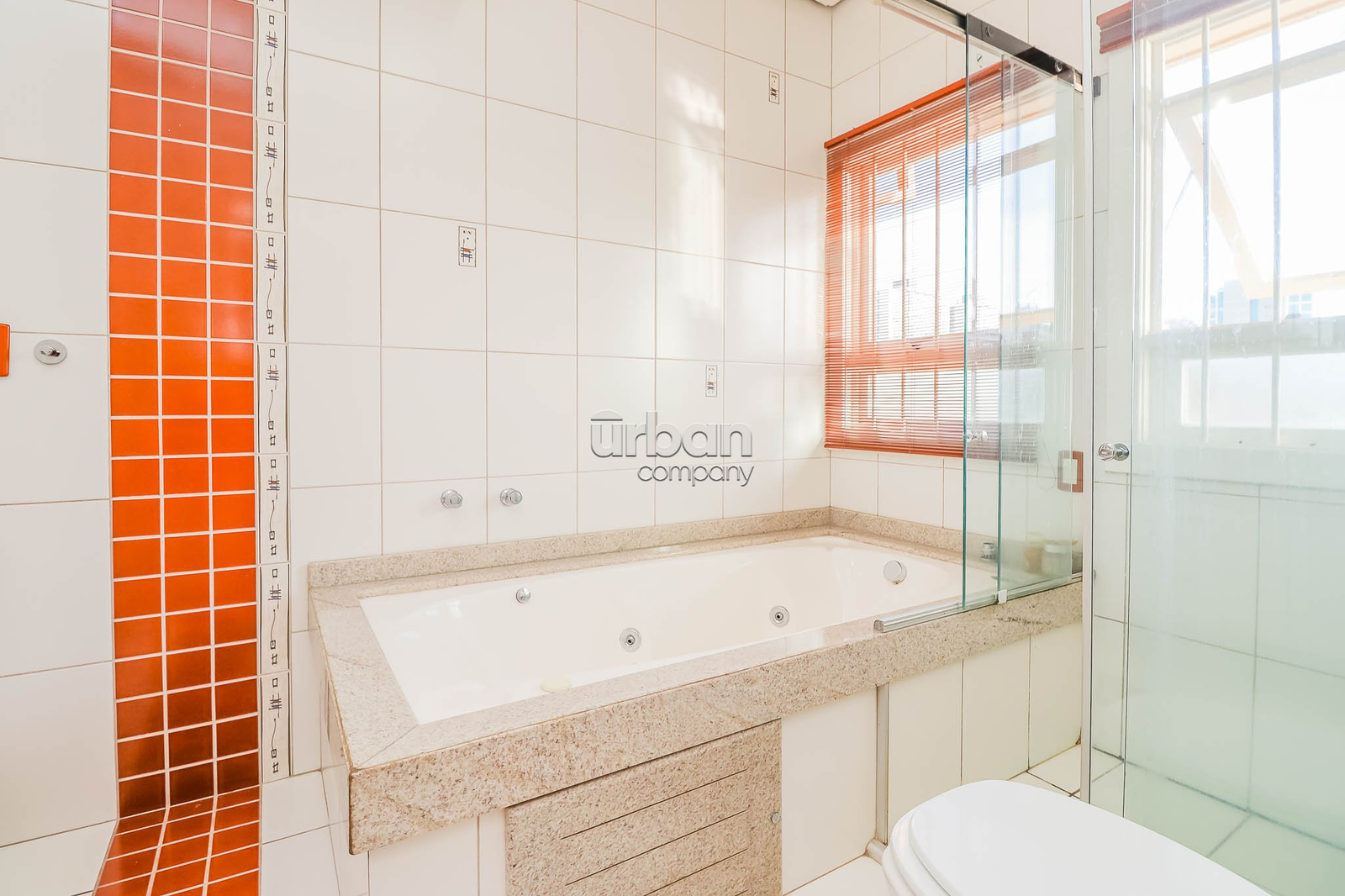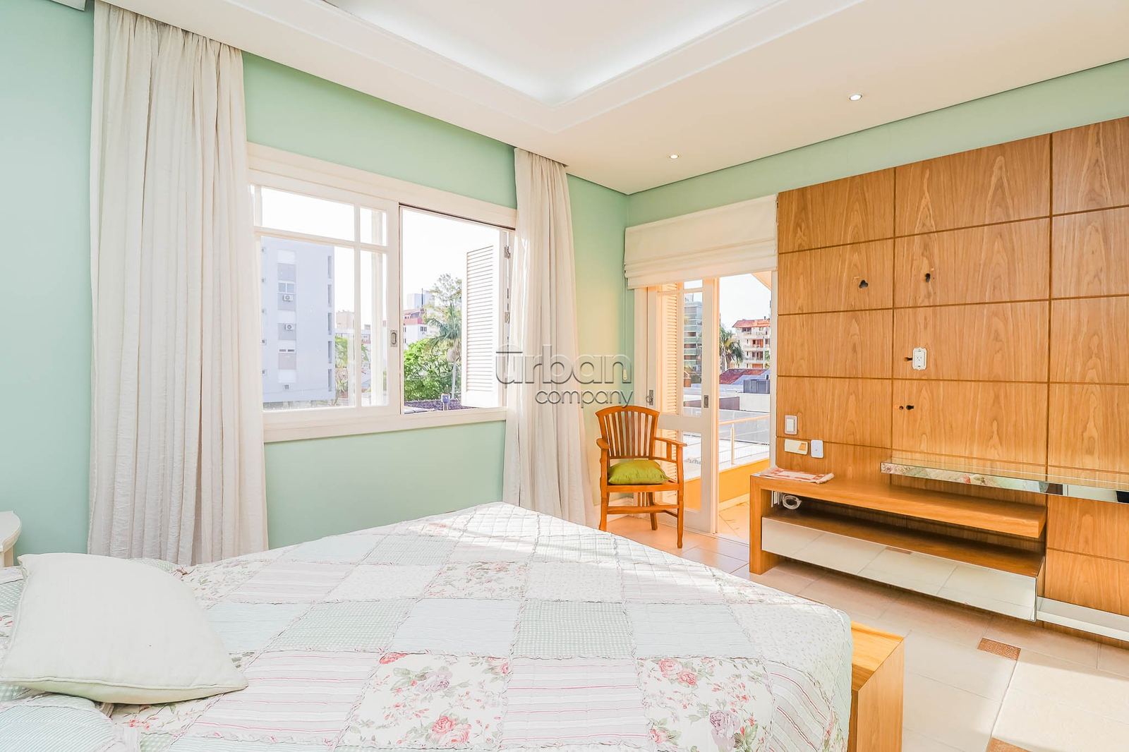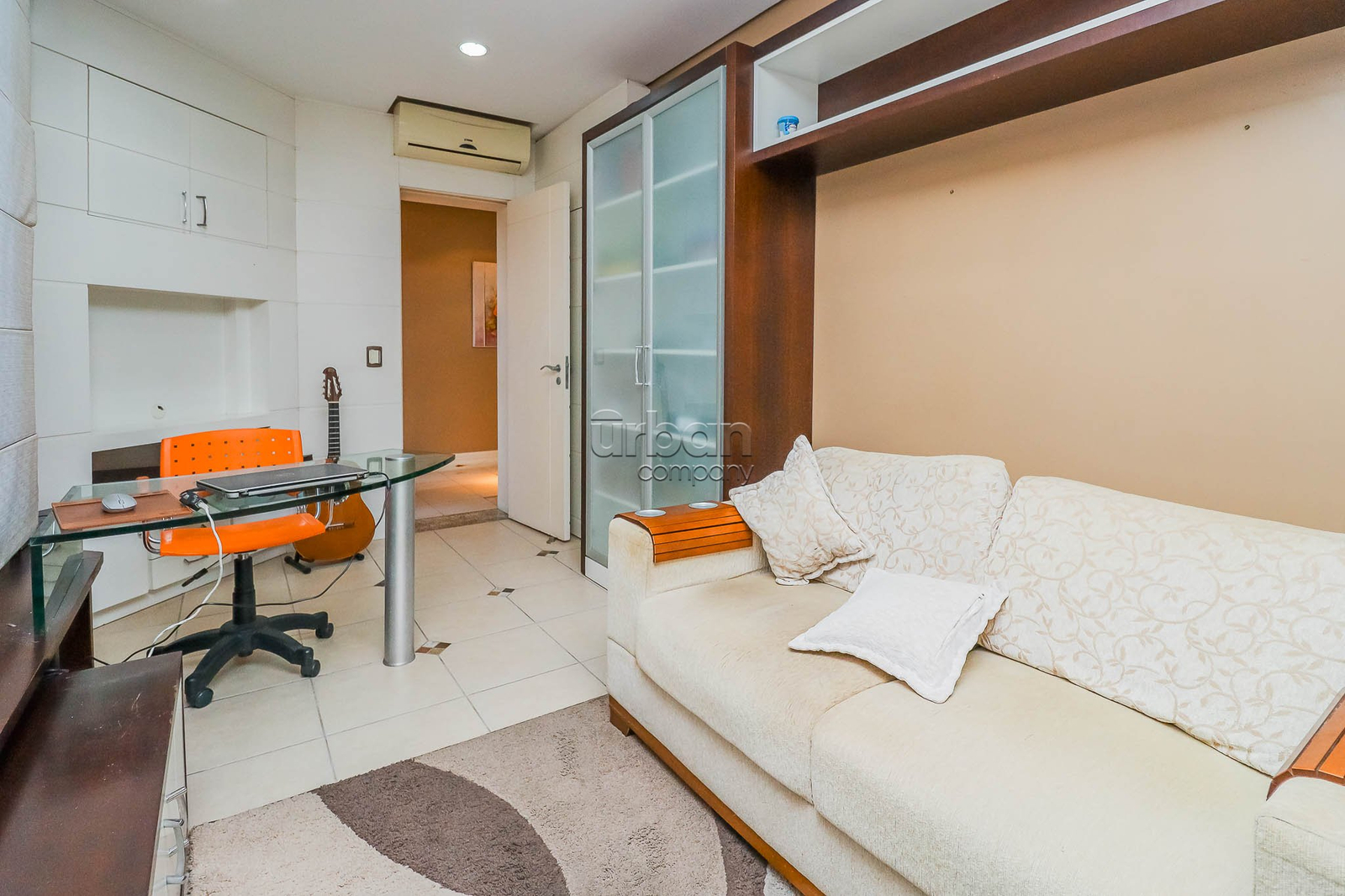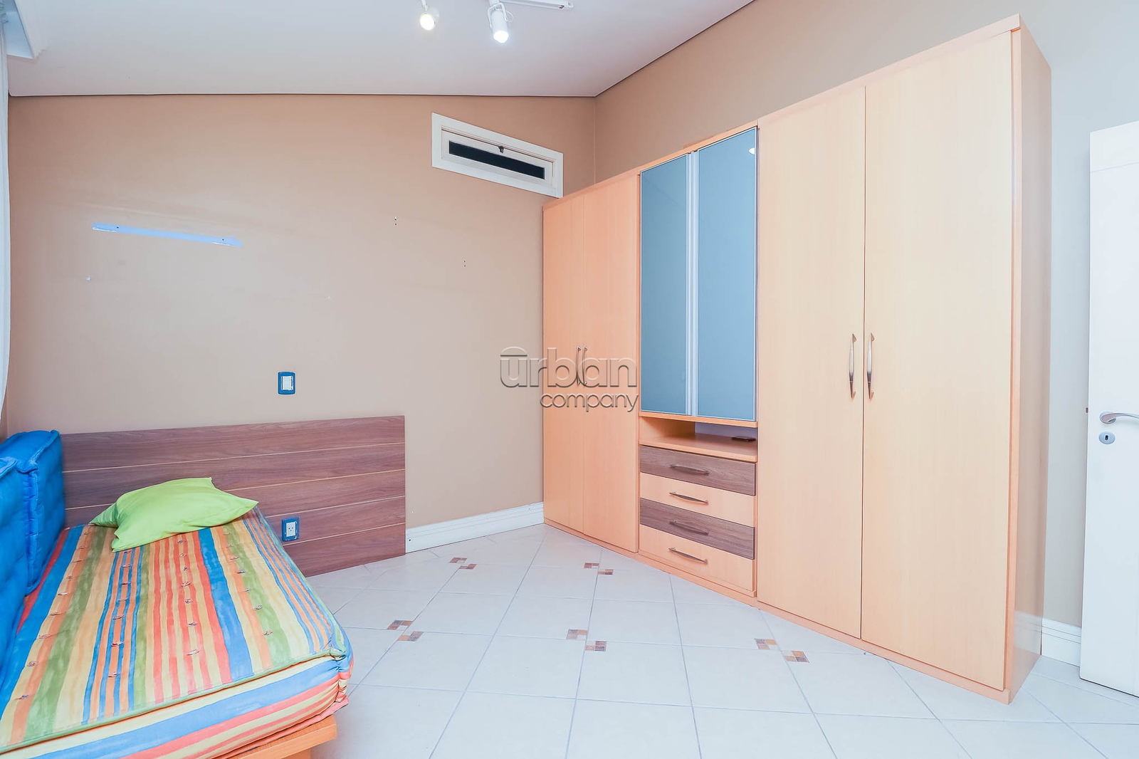 O andar superior abriga a suíte master com closet, banheiro com hidromassagem e sacada externa. Duas suítes estilo americano oferecem conforto adicional, acompanhadas por uma sala íntima e mais um escritório, ideal para quem precisa de um espaço reservado para trabalho ou estudo.