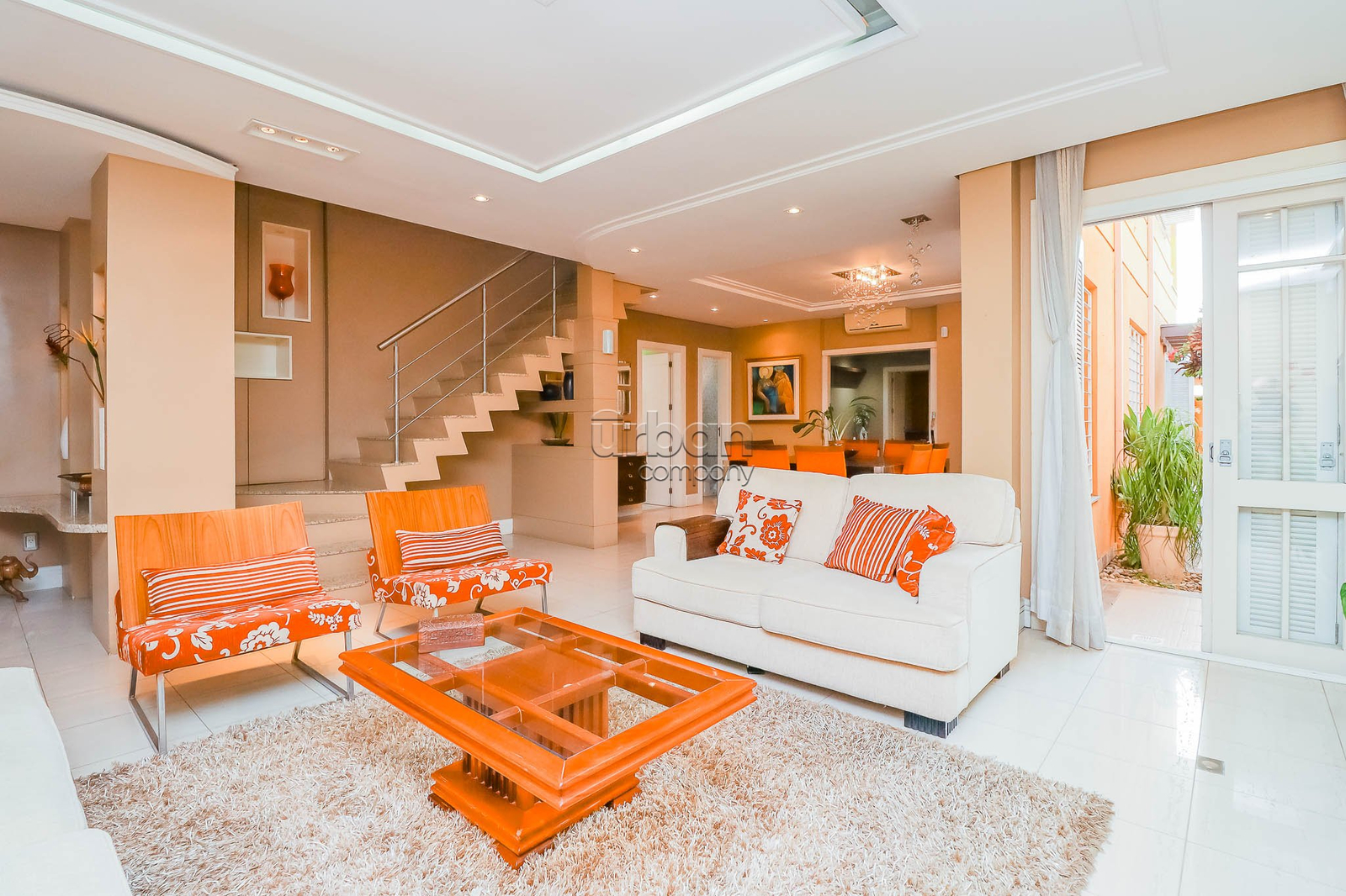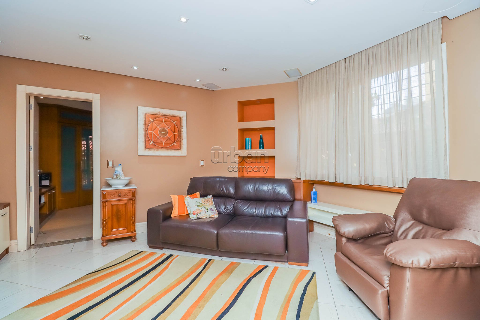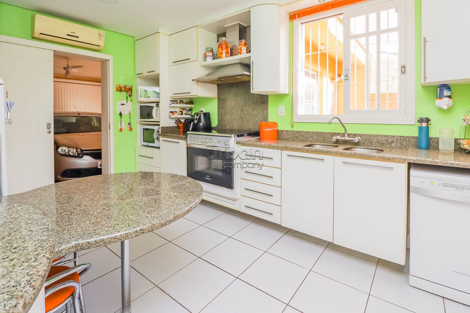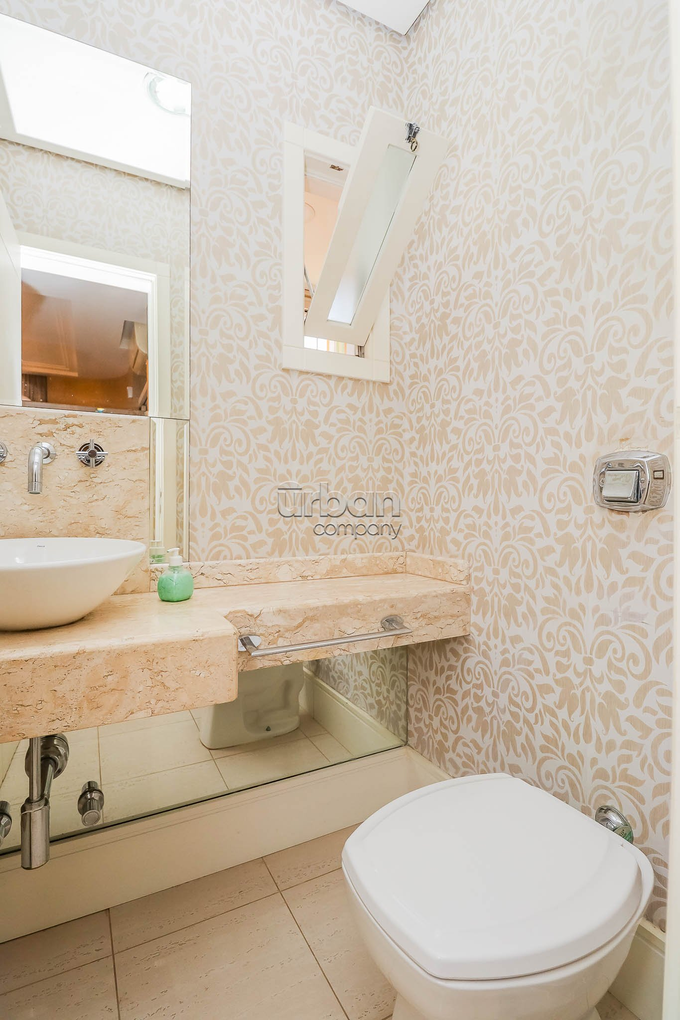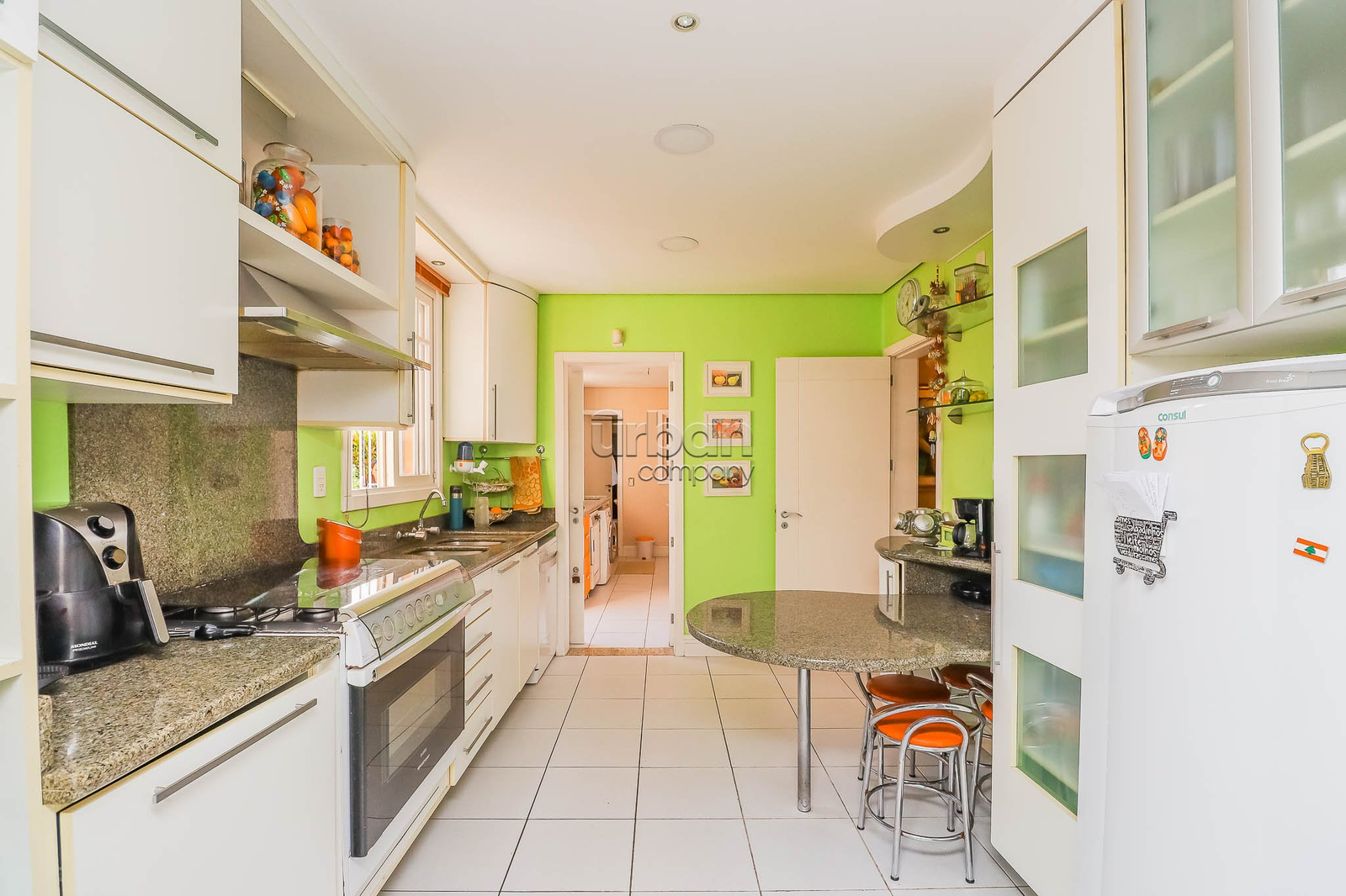 No primeiro pavimento, o living espaçoso para dois ambientes é realçado por uma lareira elegante e um jardim de inverno que traz leveza e tranquilidade. A sala de jantar se conecta à área de estar íntima, ideal para momentos de descanso e entretenimento. Há também um dormitório térreo que pode ser convertido em uma quarta suíte, além de um escritório funcional, cozinha equipada com dependência completa e uma lavanderia ampla.