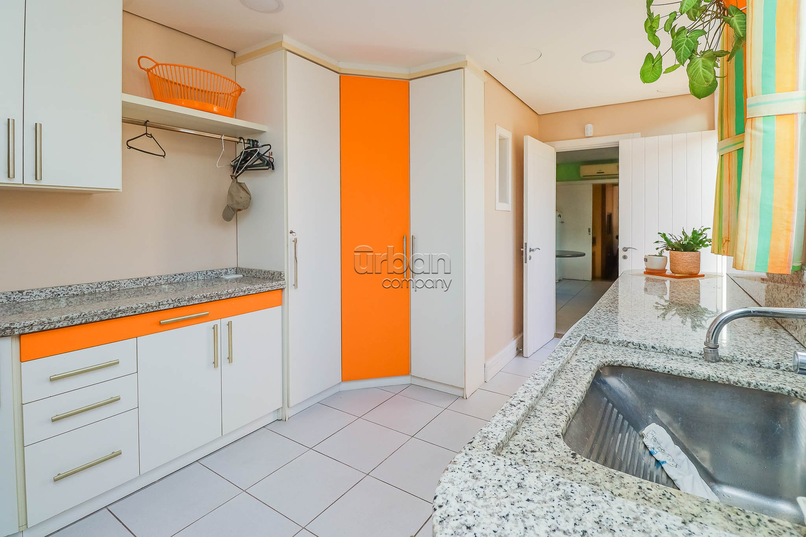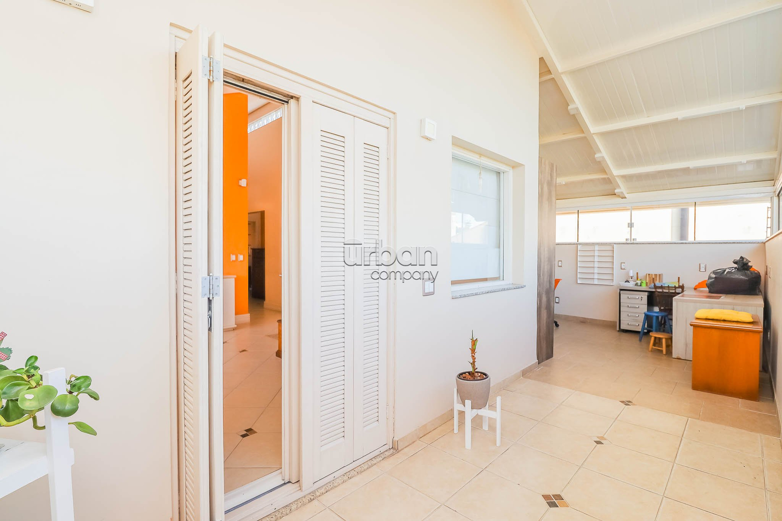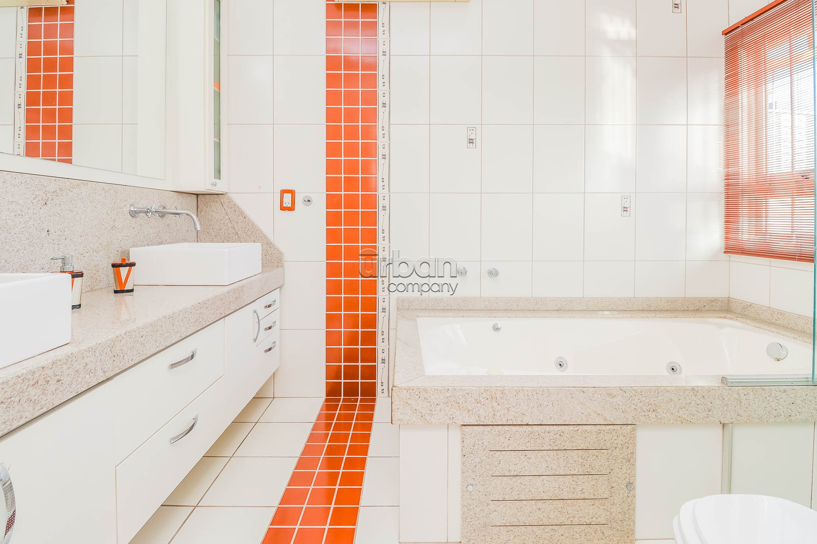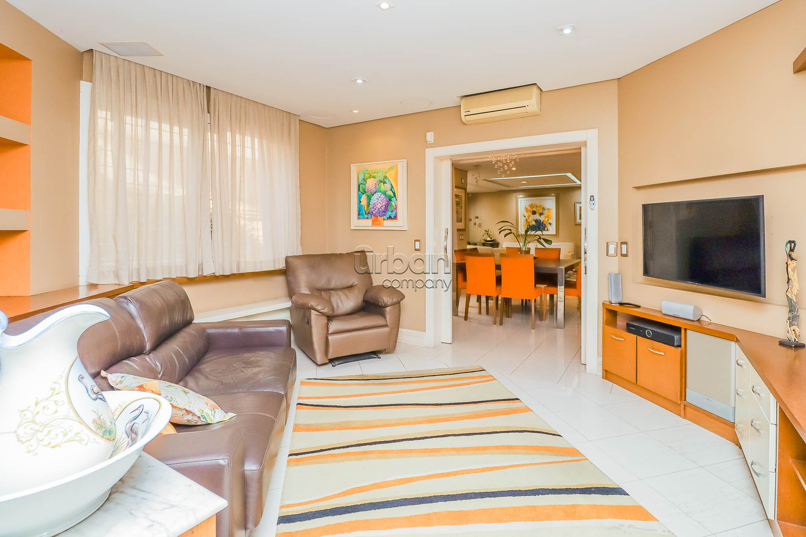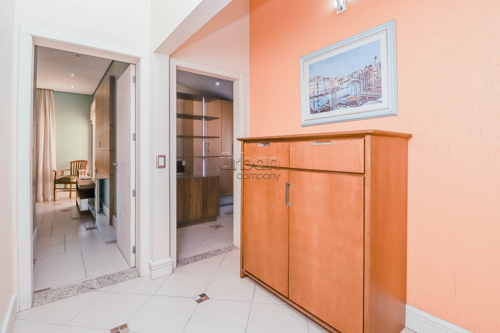 No primeiro pavimento, o living espaçoso para dois ambientes é realçado por uma lareira elegante e um jardim de inverno que traz leveza e tranquilidade. A sala de jantar se conecta à área de estar íntima, ideal para momentos de descanso e entretenimento. Há também um dormitório térreo que pode ser convertido em uma quarta suíte, além de um escritório funcional, cozinha equipada com dependência completa e uma lavanderia ampla.
