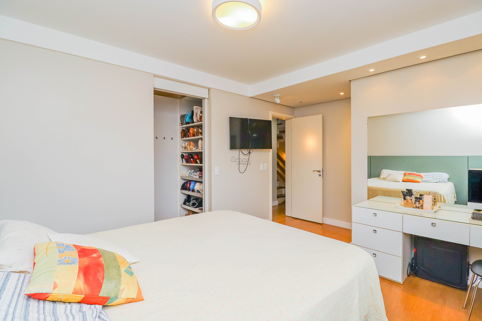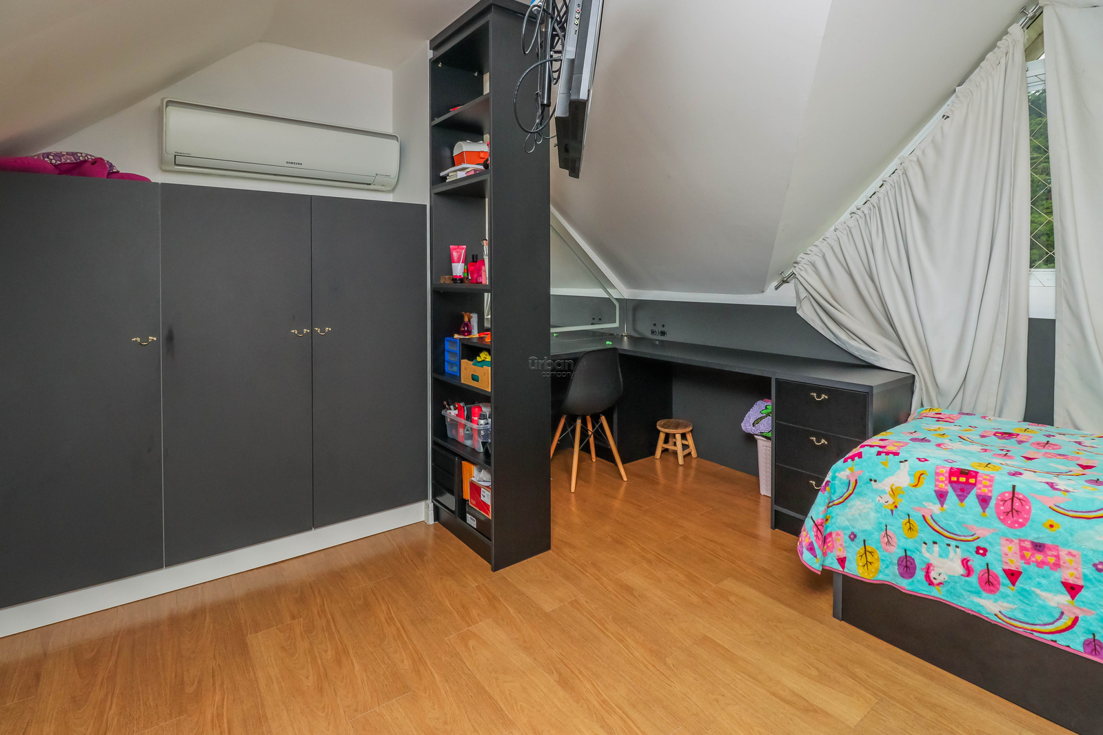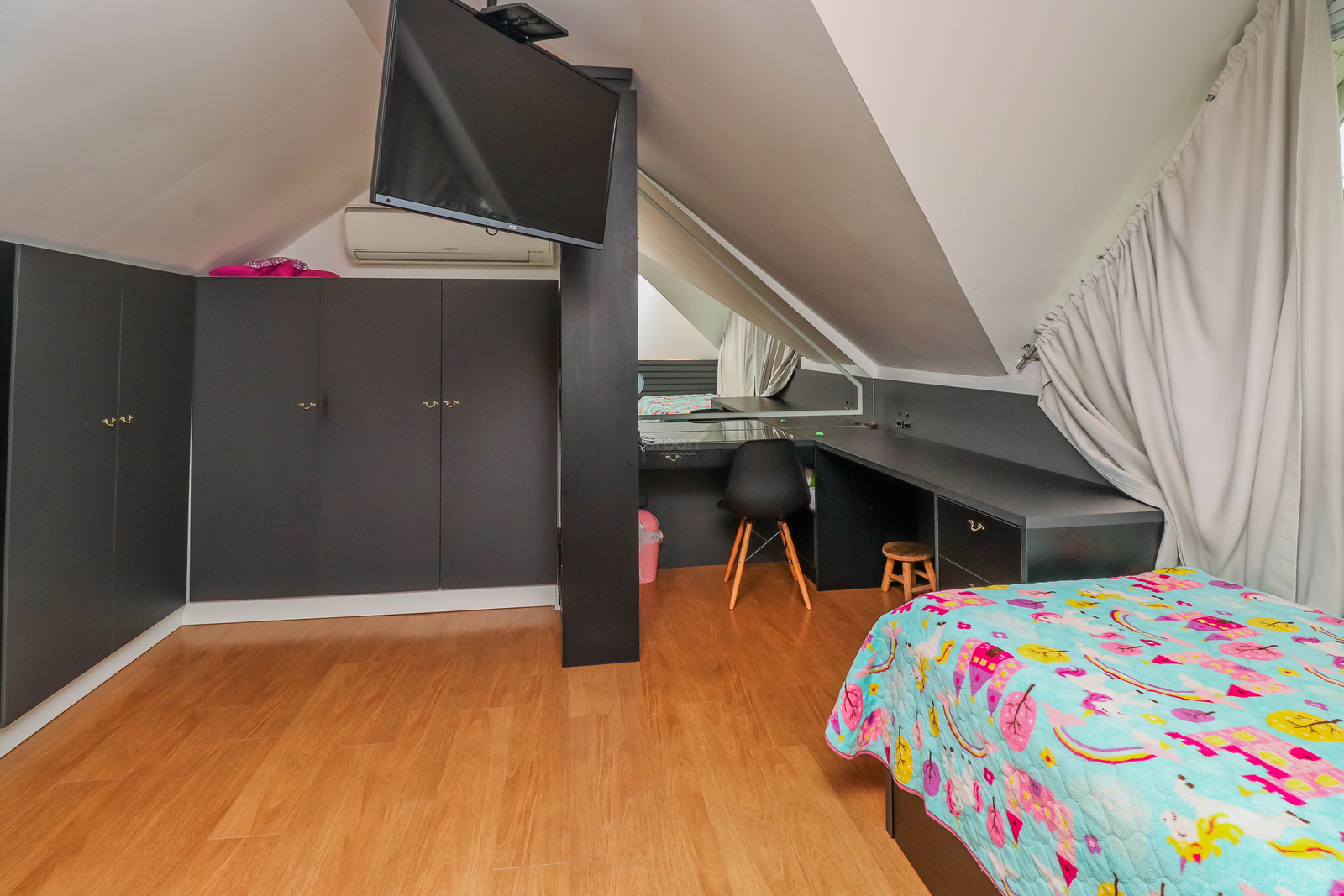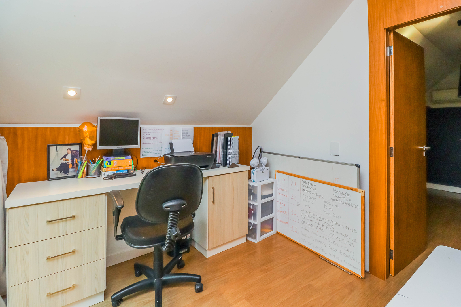 O imóvel conta ainda com duas vagas de garagem cobertas, garantindo segurança e conveniência. No sótão, há um ambiente adicional que foi transformado em uma aconchegante área de TV, ideal para relaxamento e entretenimento.