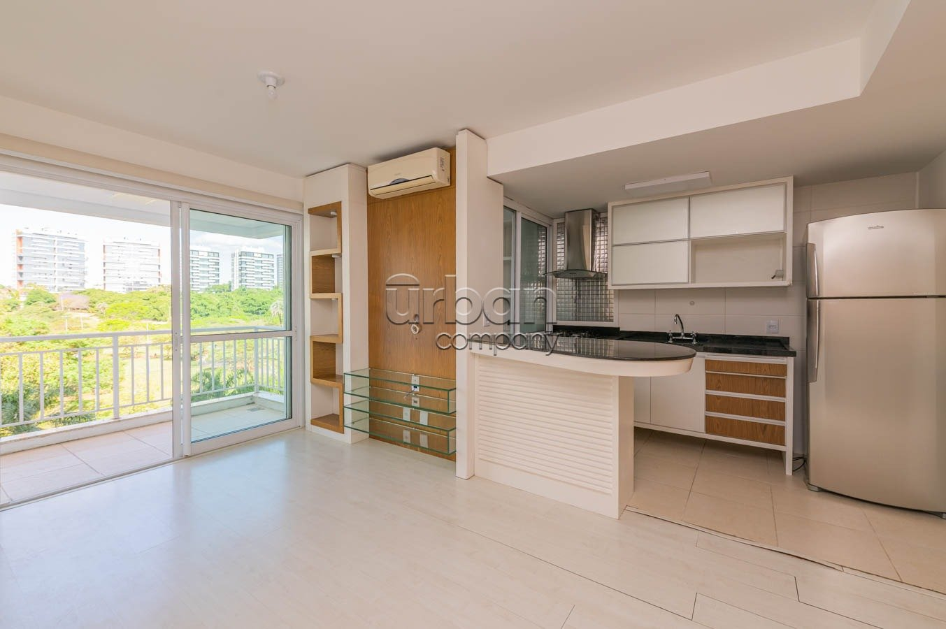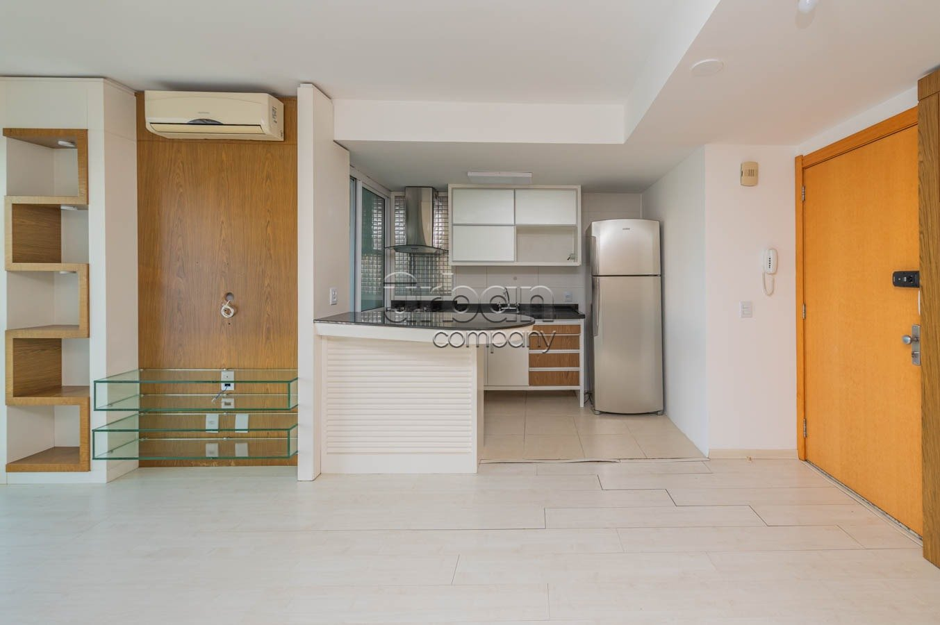 São 65m² privativos, semi mobiliado, 2 dormitórios sendo 1 suíte, amplo living com sacada e uma das melhores vistas da cidade, cozinha americana montada, área de serviço individual, sol da manhã em todos ambientes e 2 vagas cobertas.