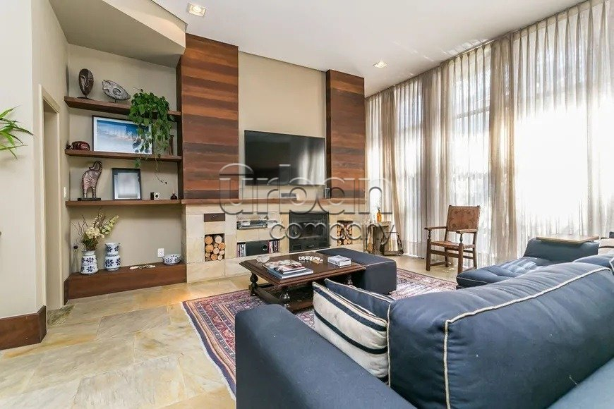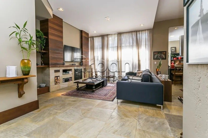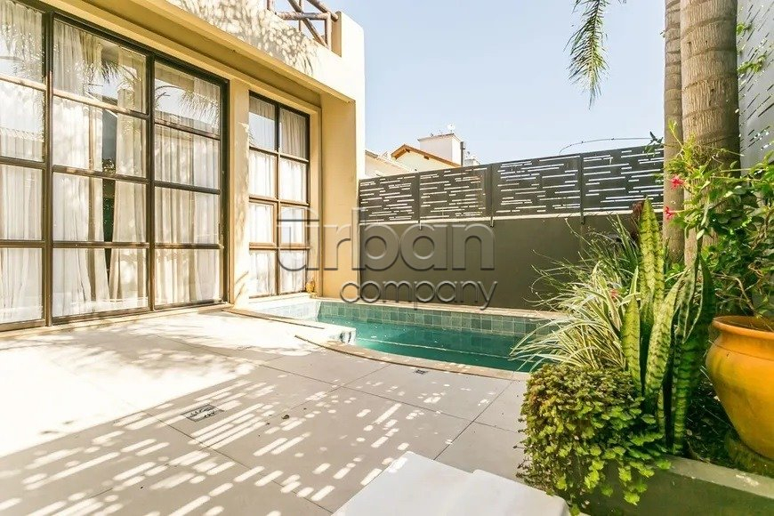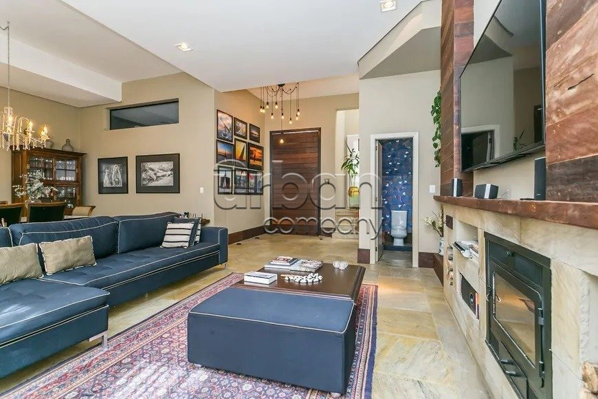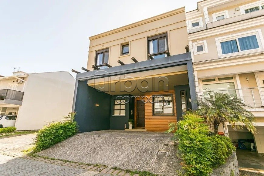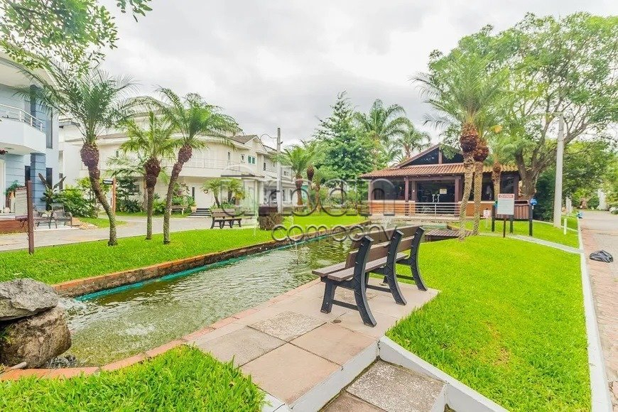 Casa em condomínio com 218 m² privativos, 3 dormitórios, 1suíte, living para três ambientes com sala de estar e jantar, lavabo, lareira, cozinha americana integrada ao living, churrasqueira patio com piscina.