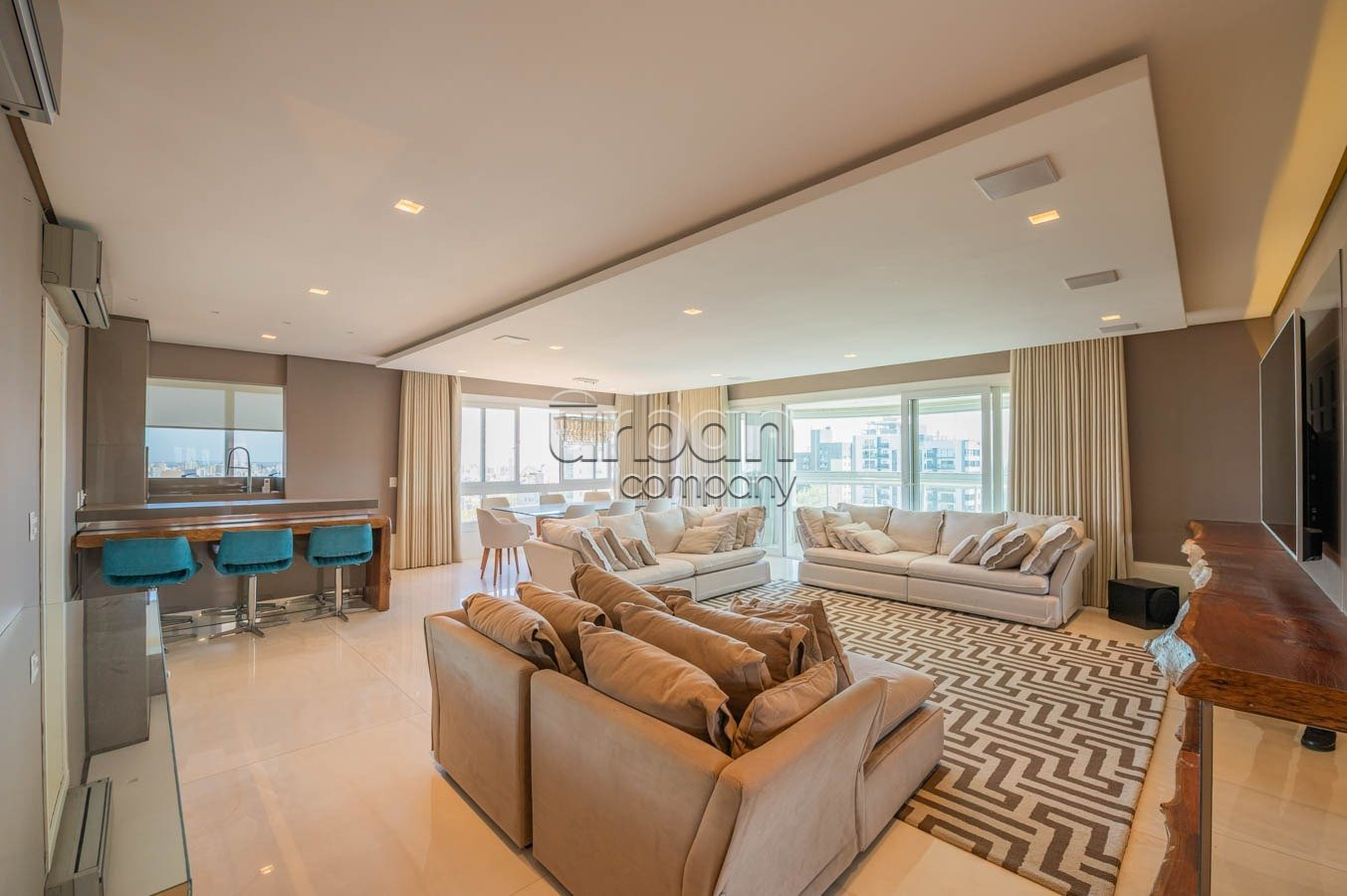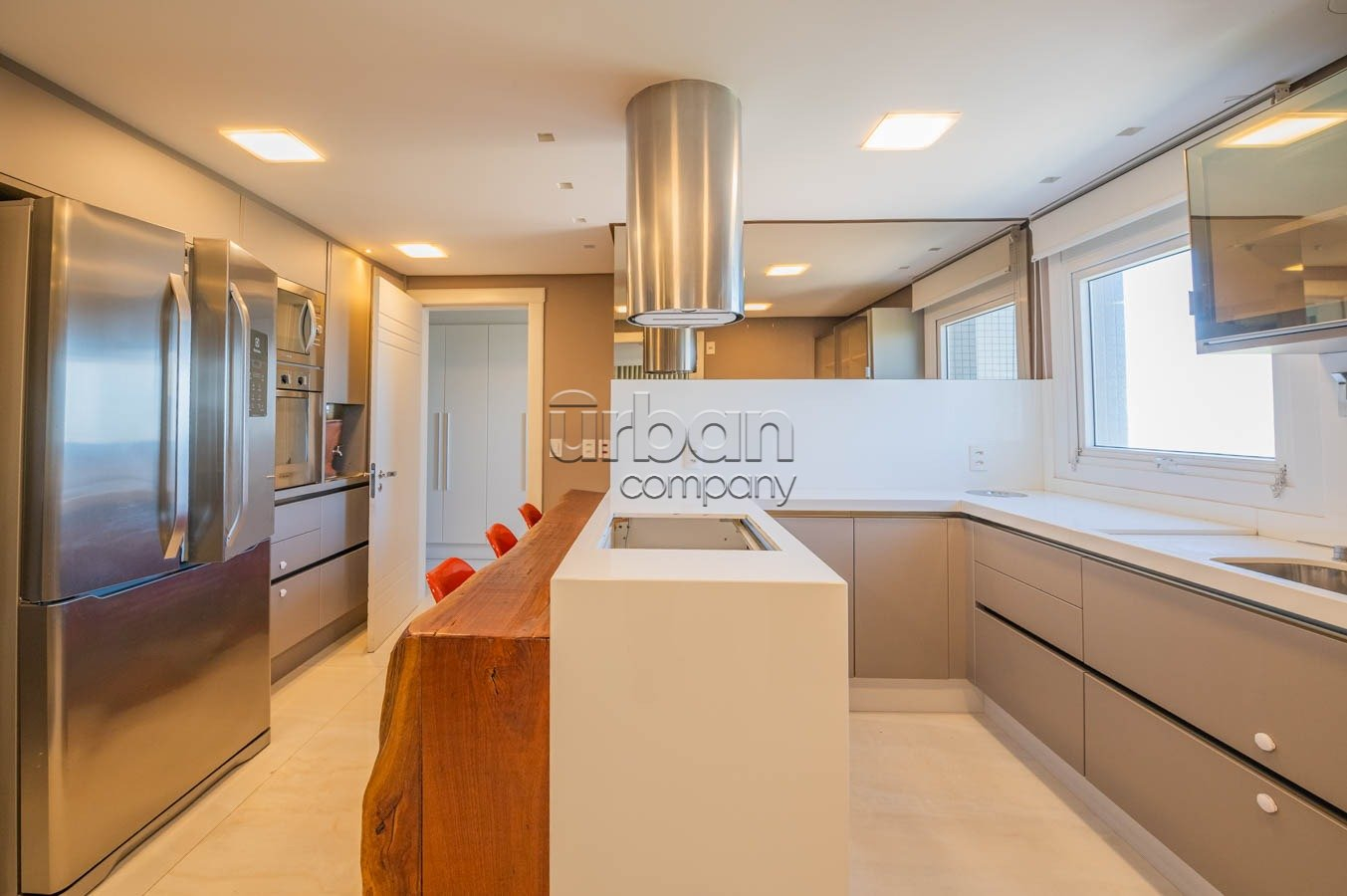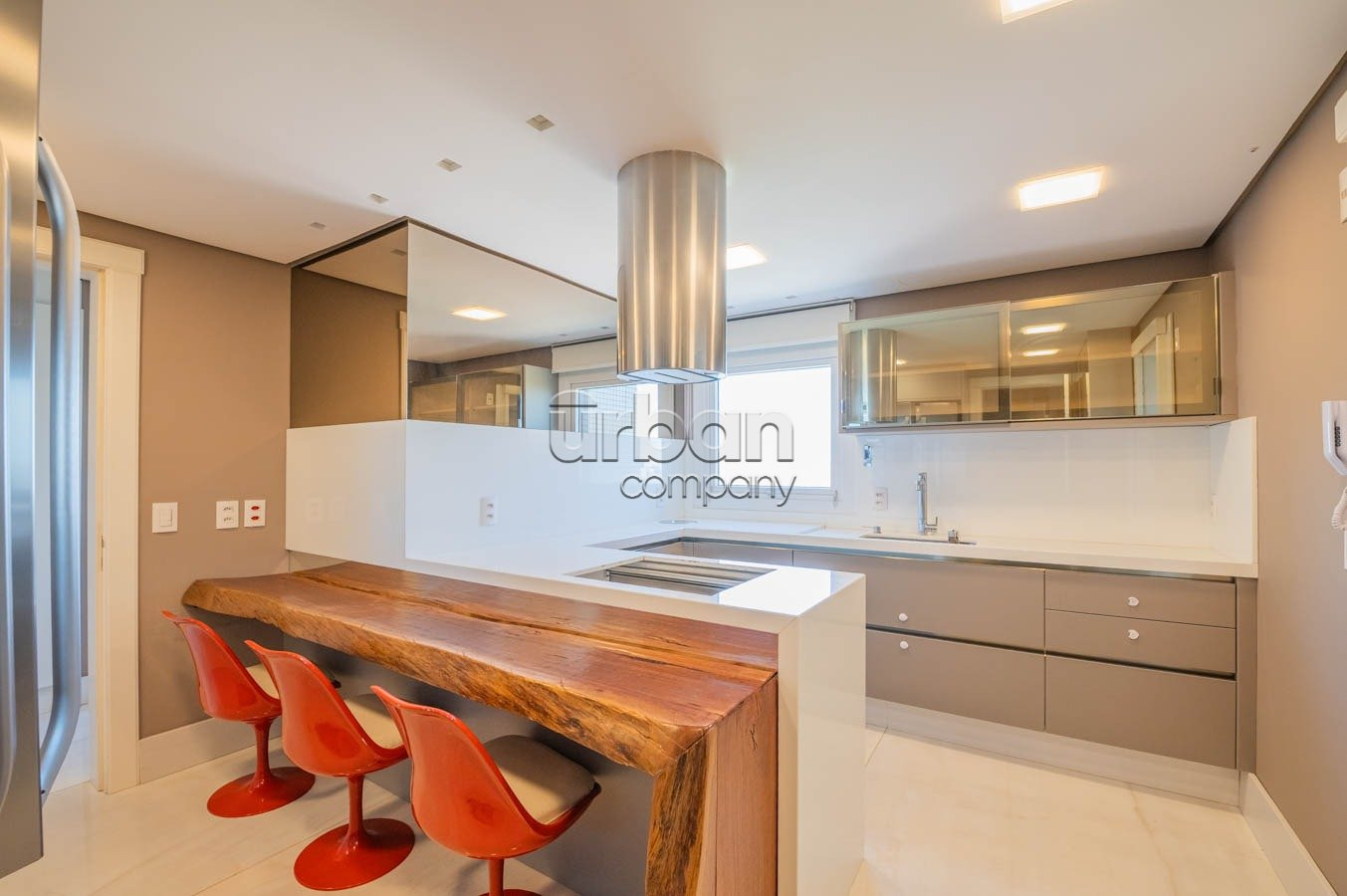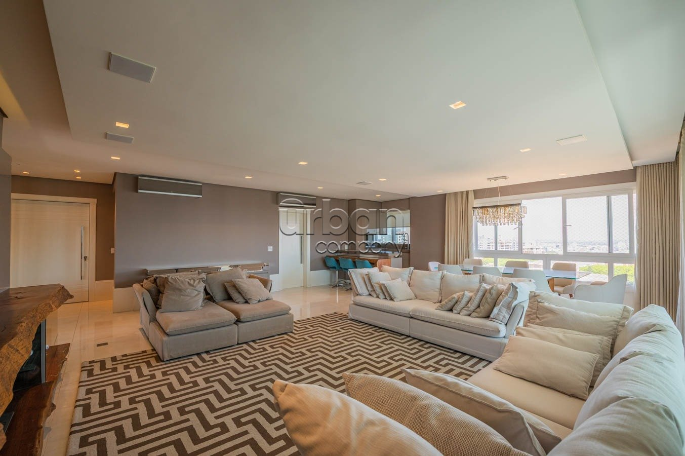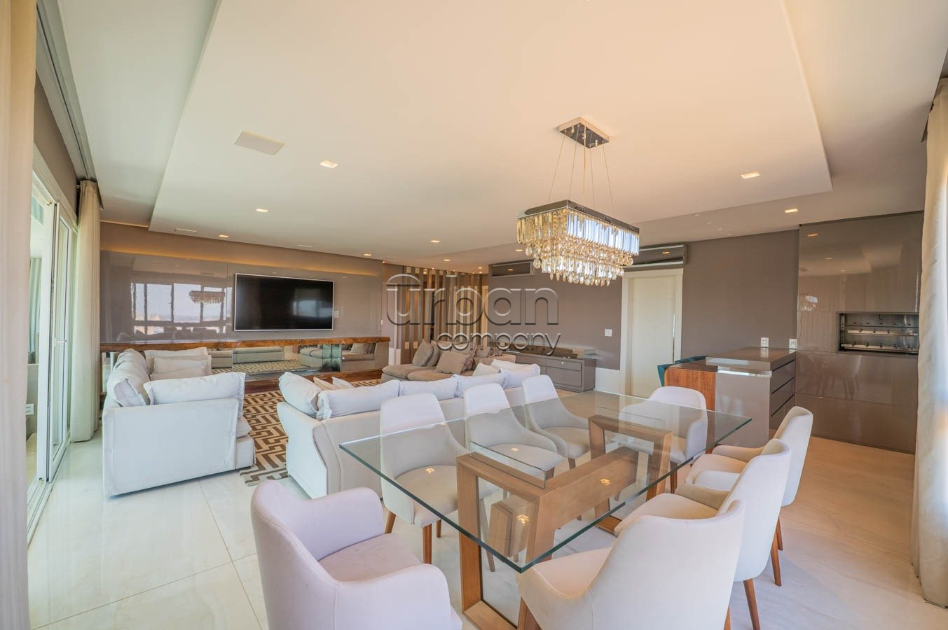 Apartamento com 179 m² privativos, 2 suítes, possui living para 2 ambientes, lareira, cozinha integrada com churrasqueira, lavabo e lavanderia separada.