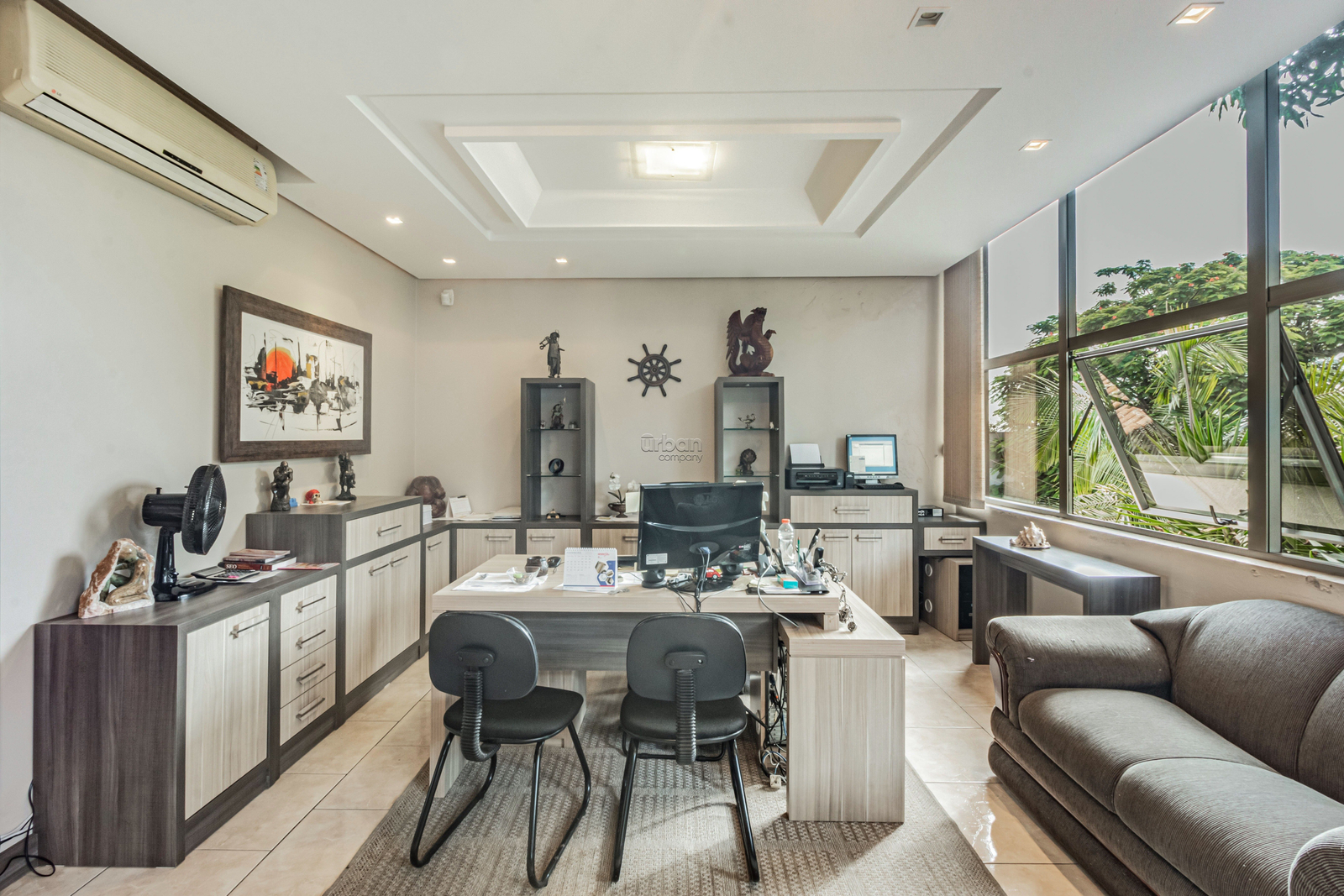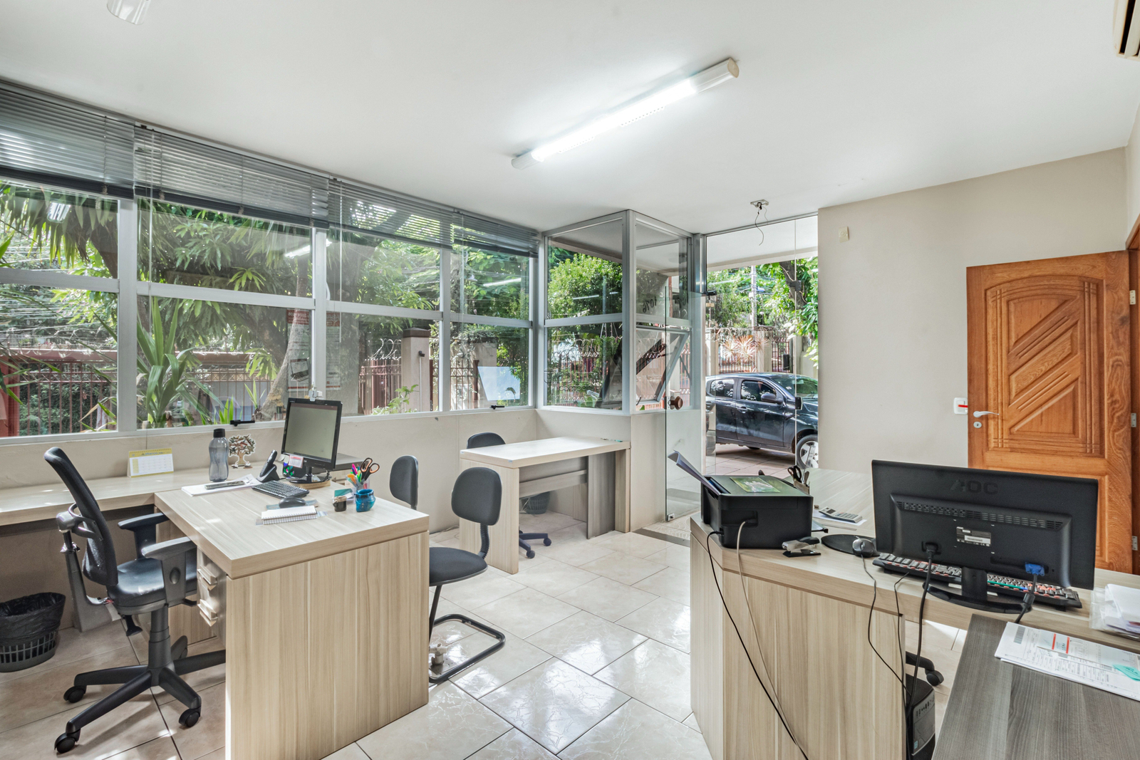 Já a casa comercial, conta com vidro fumê espelhado, 250 m² privativos, dois andares, com 6 salas amplas, 3 banheiros, copa e churrasqueira.