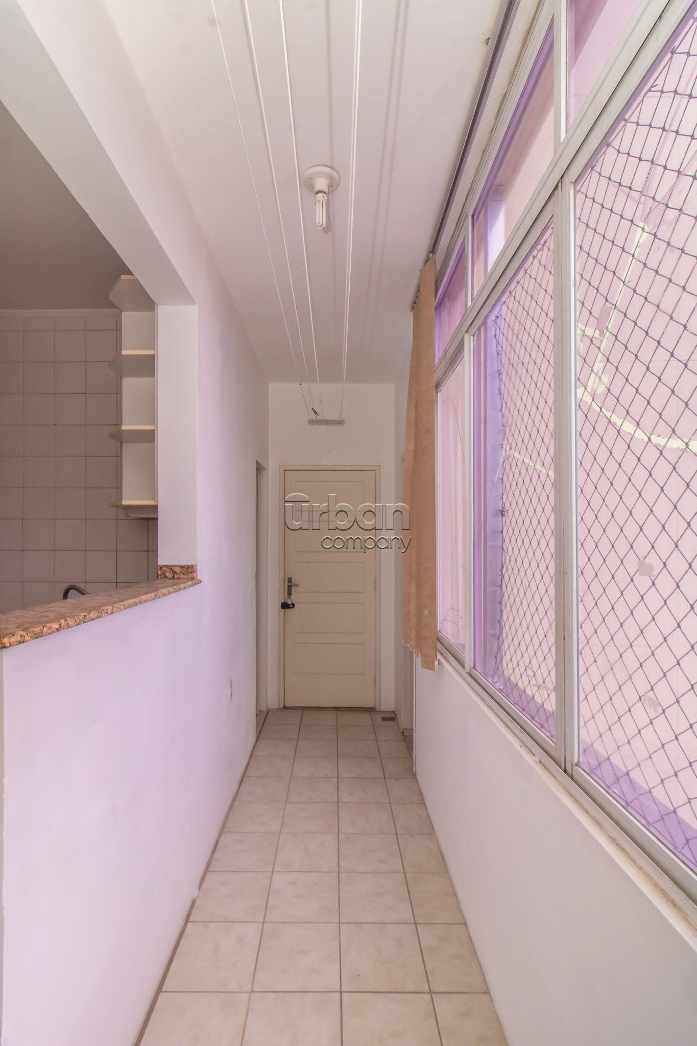 O living possui três ambientes, incluindo sacada, split e gabinete com armários.