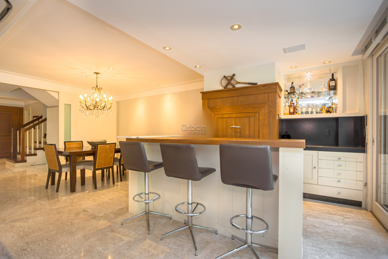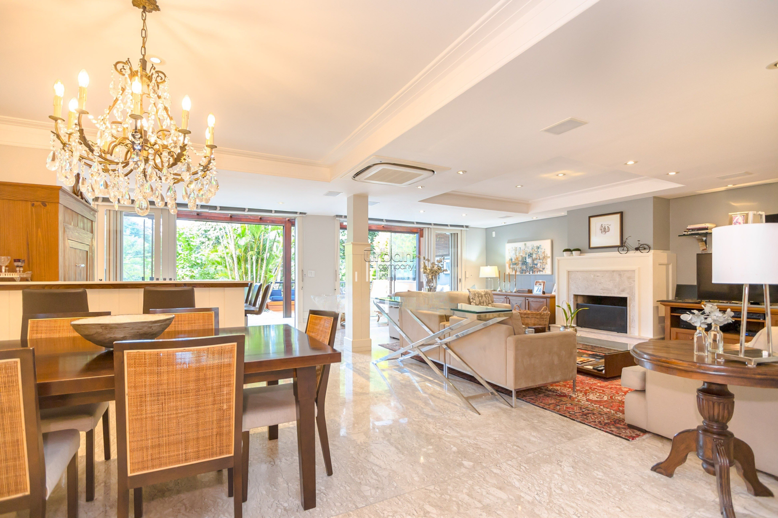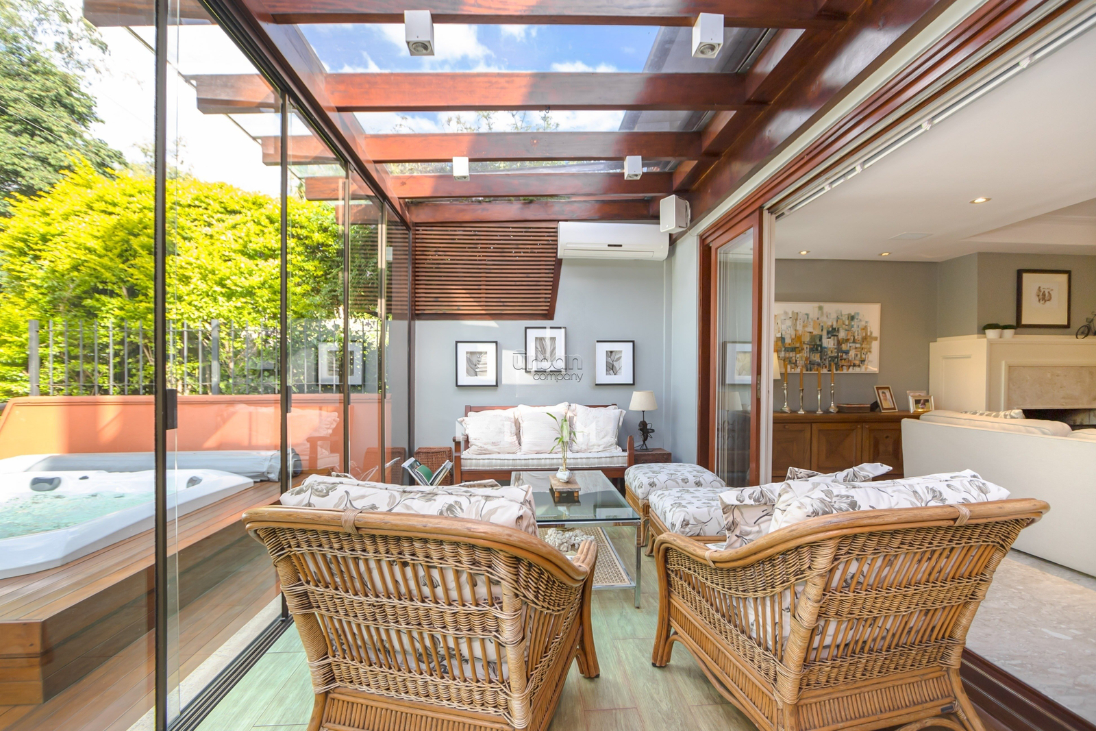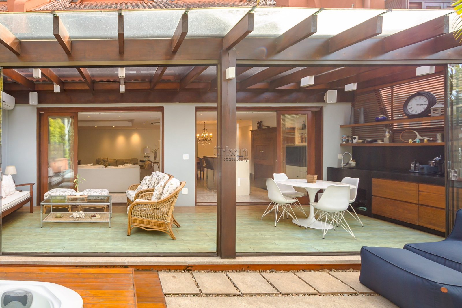 Casa mobiliada com 520m², suíte máster com banheiro ele/ela, amplo living, churrasqueira, lareira, sótão, lavanderia e lavabo. Nos fundos, uma área livre com um belo jardim de inverno.
