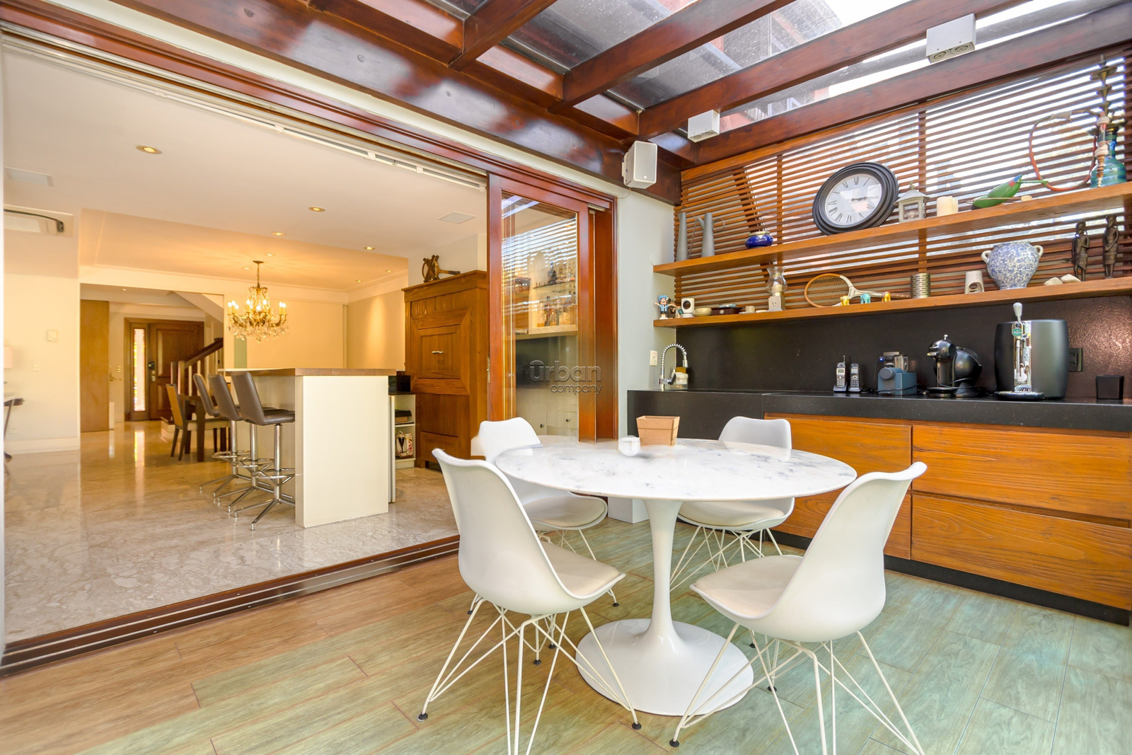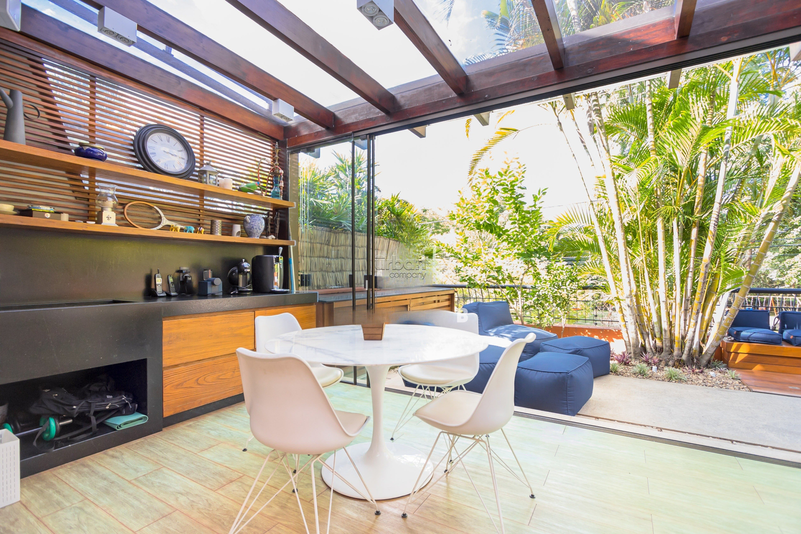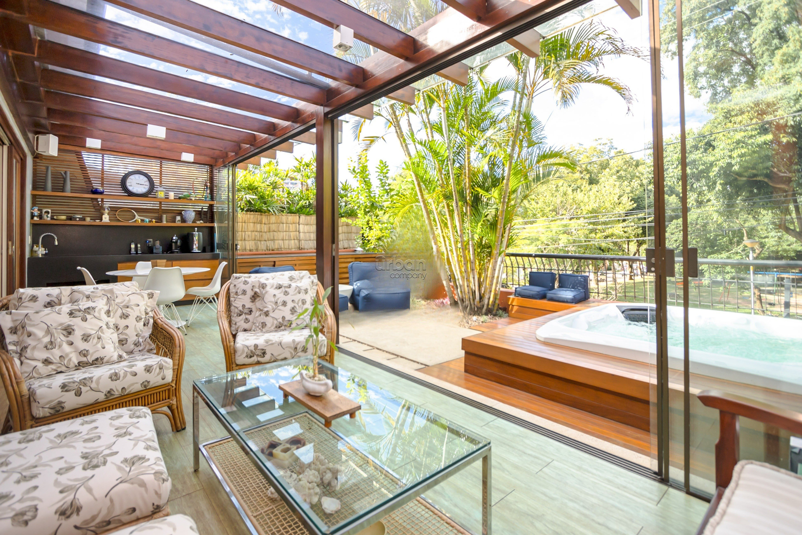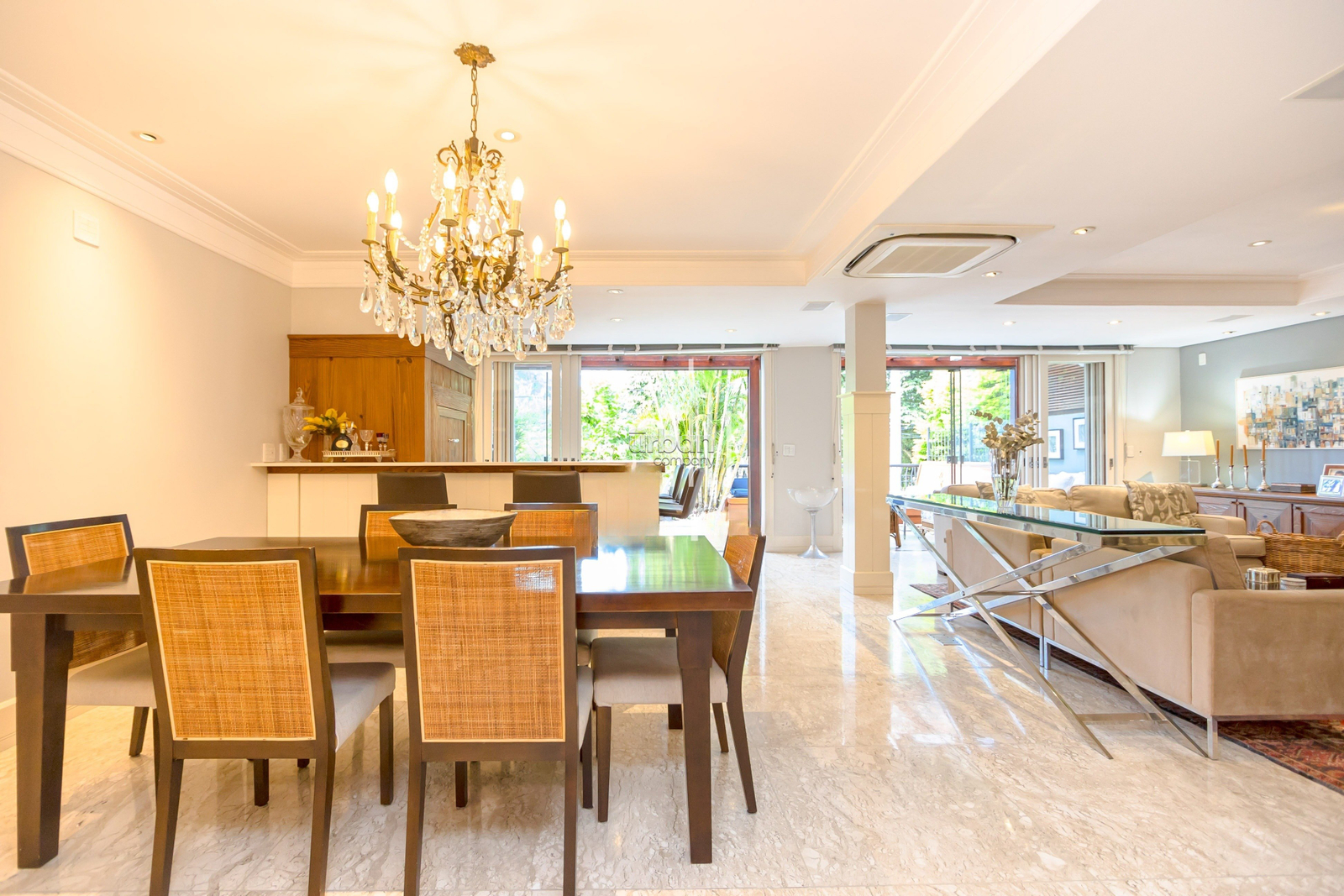 Casa mobiliada com 520m², suíte máster com banheiro ele/ela, amplo living, churrasqueira, lareira, sótão, lavanderia e lavabo. Nos fundos, uma área livre com um belo jardim de inverno.