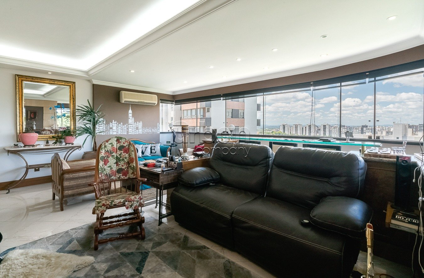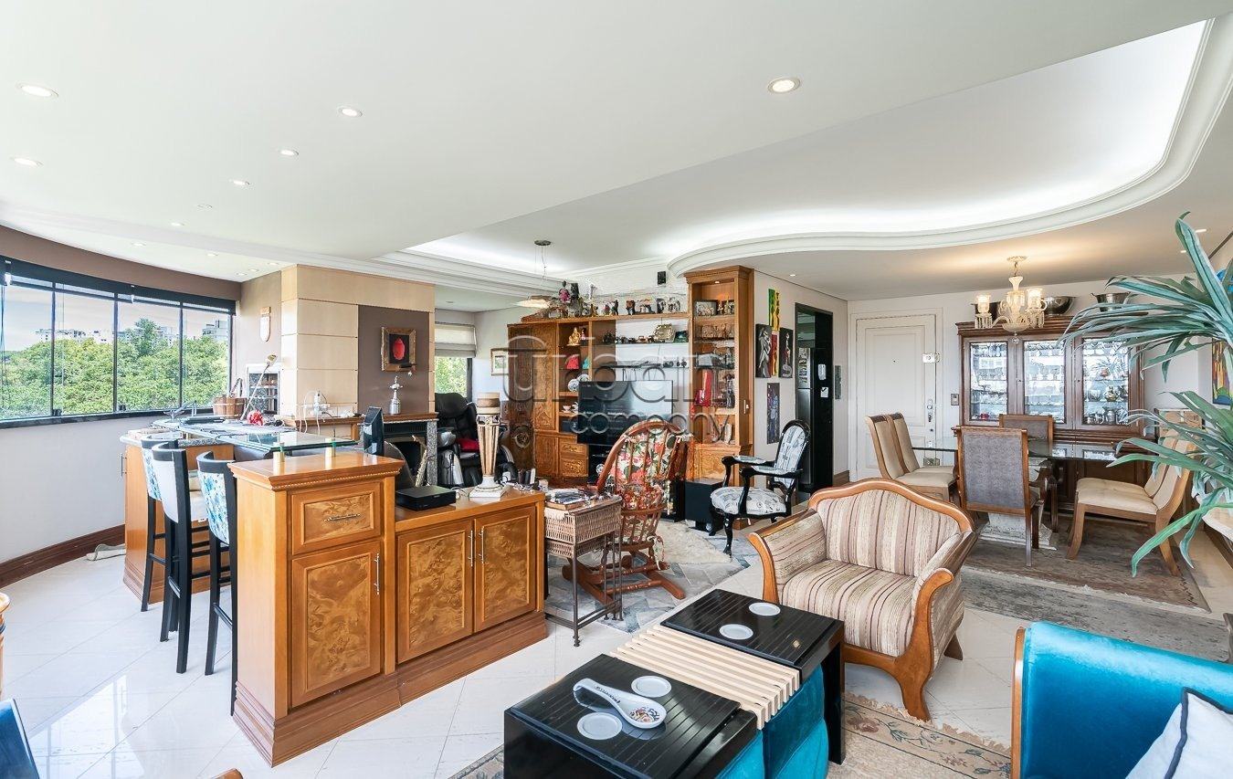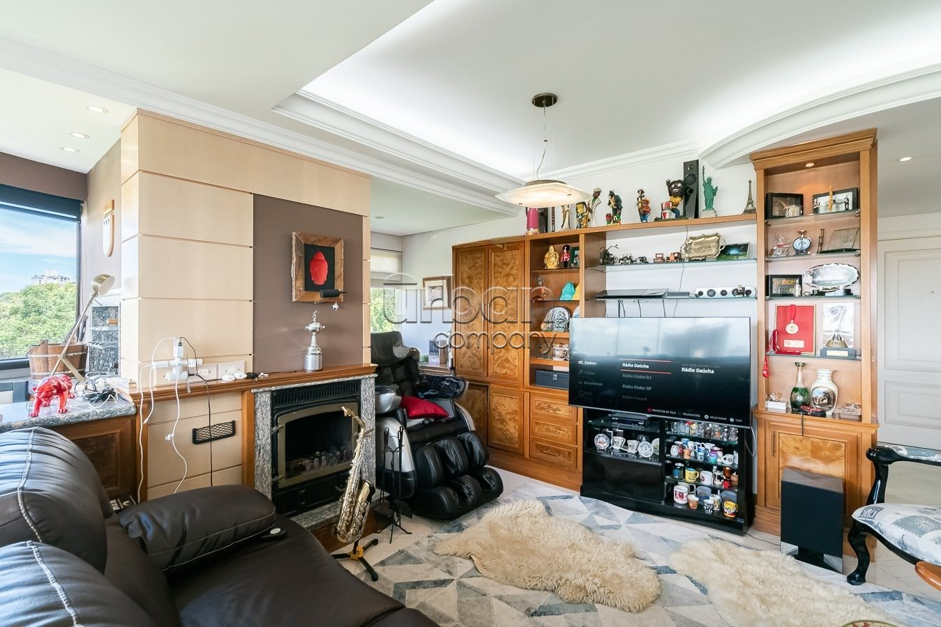 Apartamento com 111 m² de área privativa, living 2 ambientes muito bem iluminado pelas janelas da ampla sacada integrada com vista livre. Lareira e churrasqueira concluem a composição do ambiente. Imóvel semimobiliado, cozinha planejada, área de serviço, 3 vagas de garagem, sendo 2 escrituradas e 1 por direito de uso + depósito.