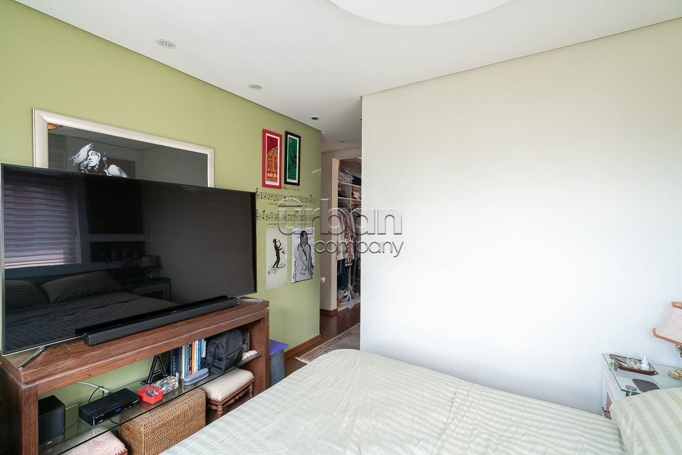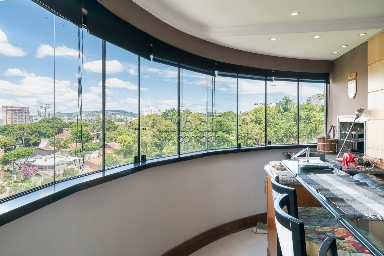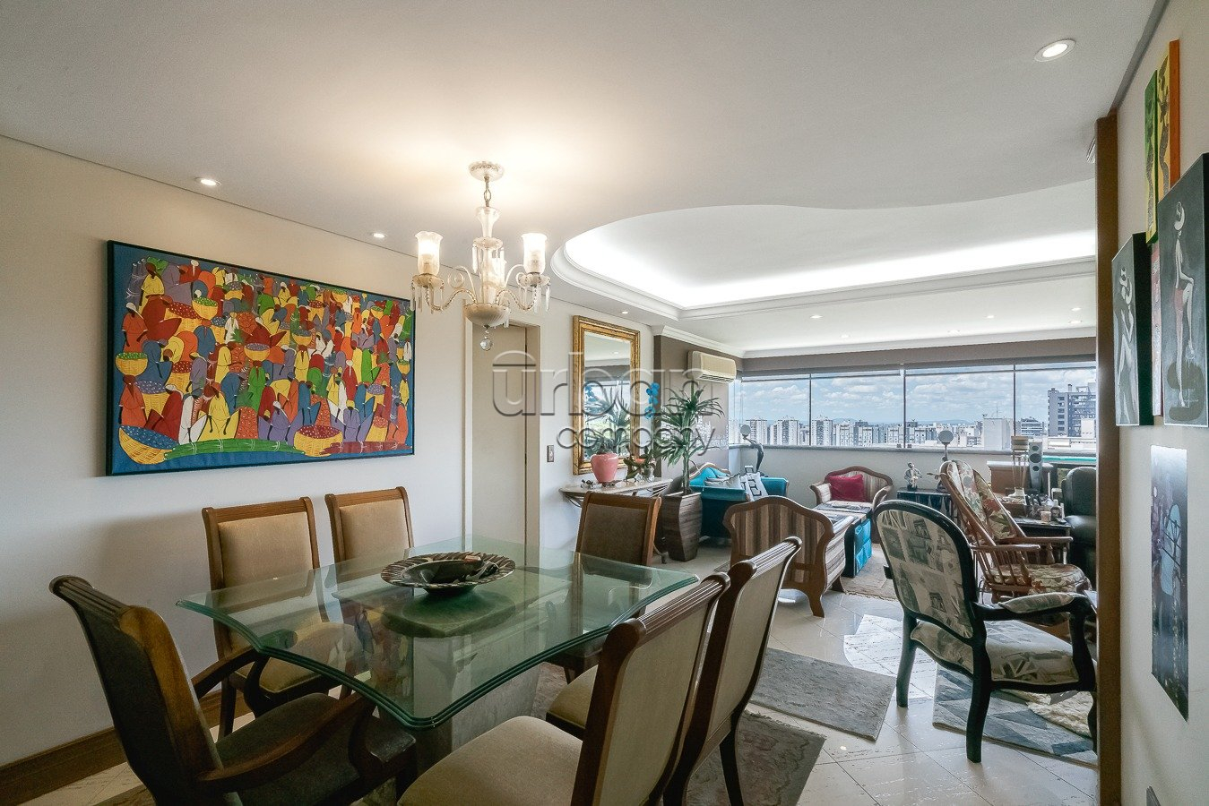 Apartamento com 111 m² de área privativa, living 2 ambientes muito bem iluminado pelas janelas da ampla sacada integrada com vista livre. Lareira e churrasqueira concluem a composição do ambiente. Imóvel semimobiliado, cozinha planejada, área de serviço, 3 vagas de garagem, sendo 2 escrituradas e 1 por direito de uso + depósito.