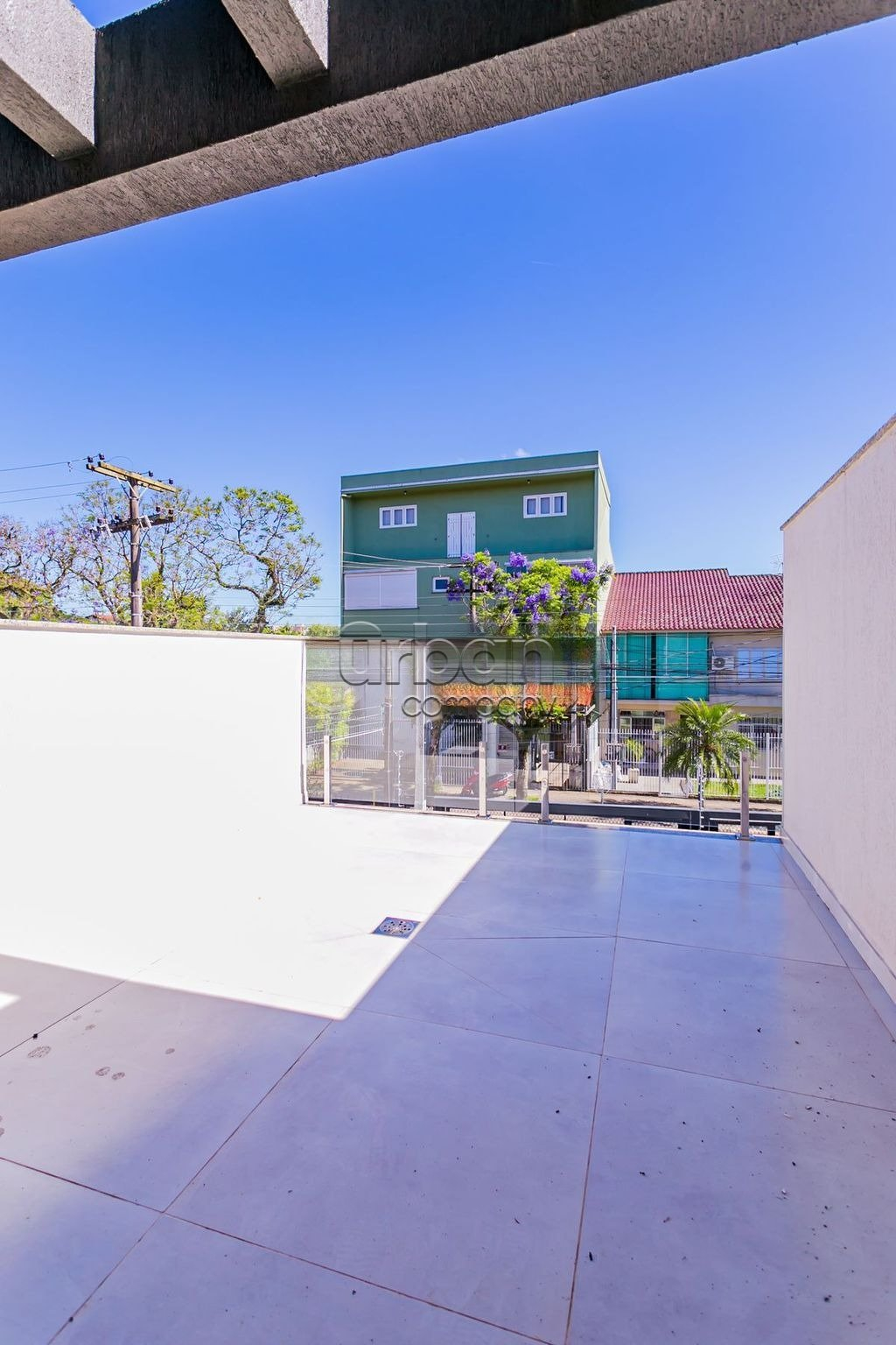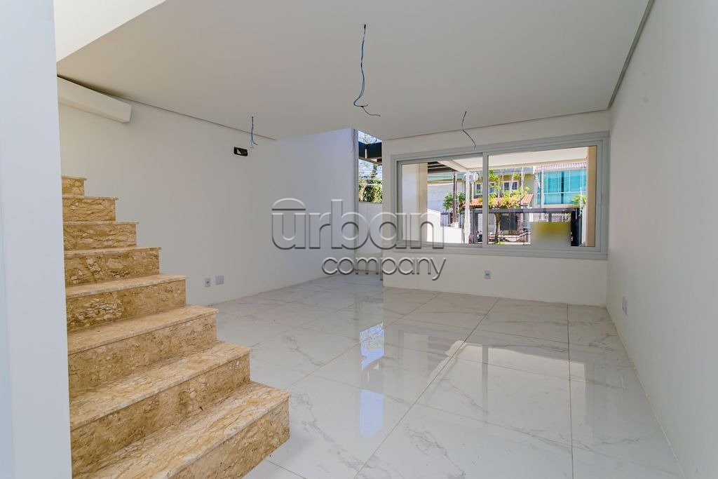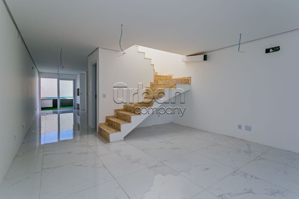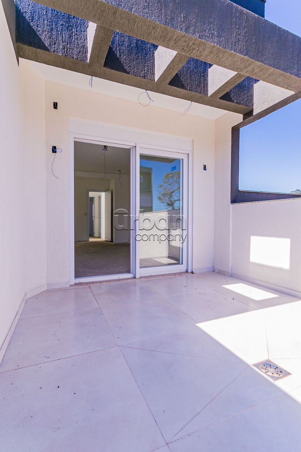 Casa com 150 m² privativos, 3 dormitórios, suíte casal com sacada, living para dois ambientes com sala de estar e jantar definida, churrasqueira e uma bela vista. Conta com 3 vagas de garagem. Espera para lareira, pátio com piscina.