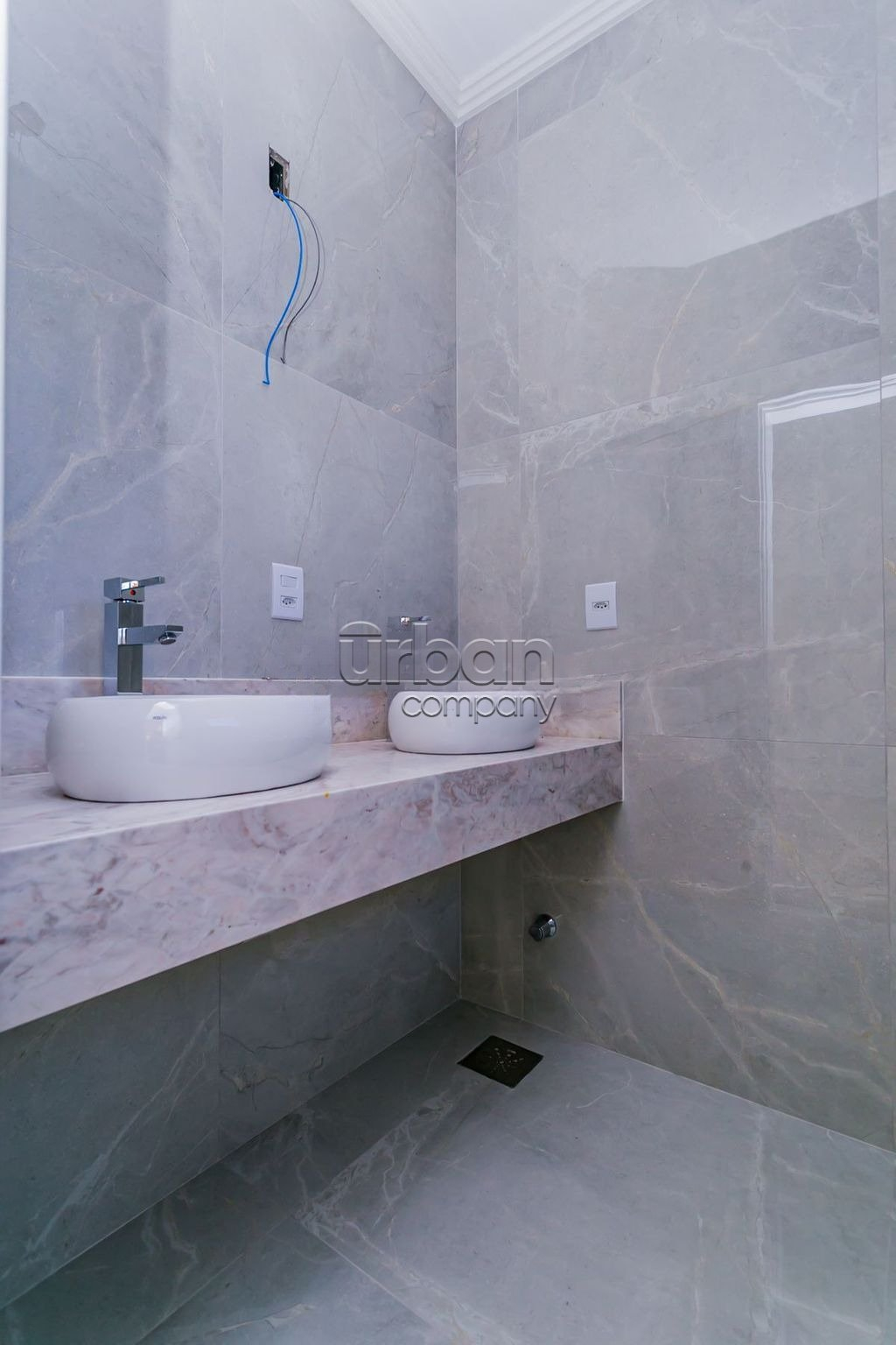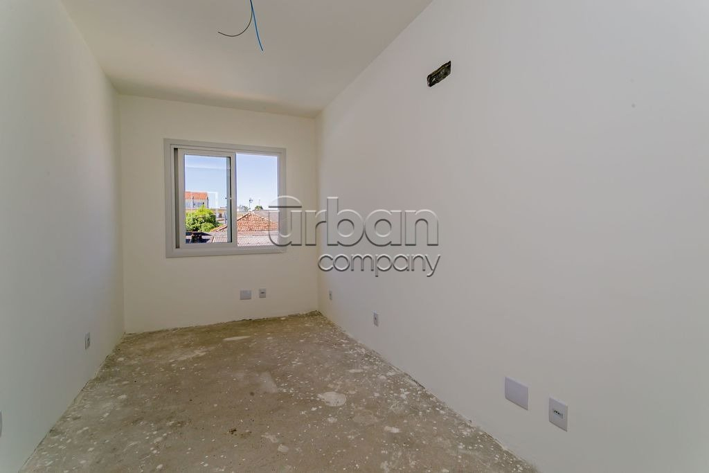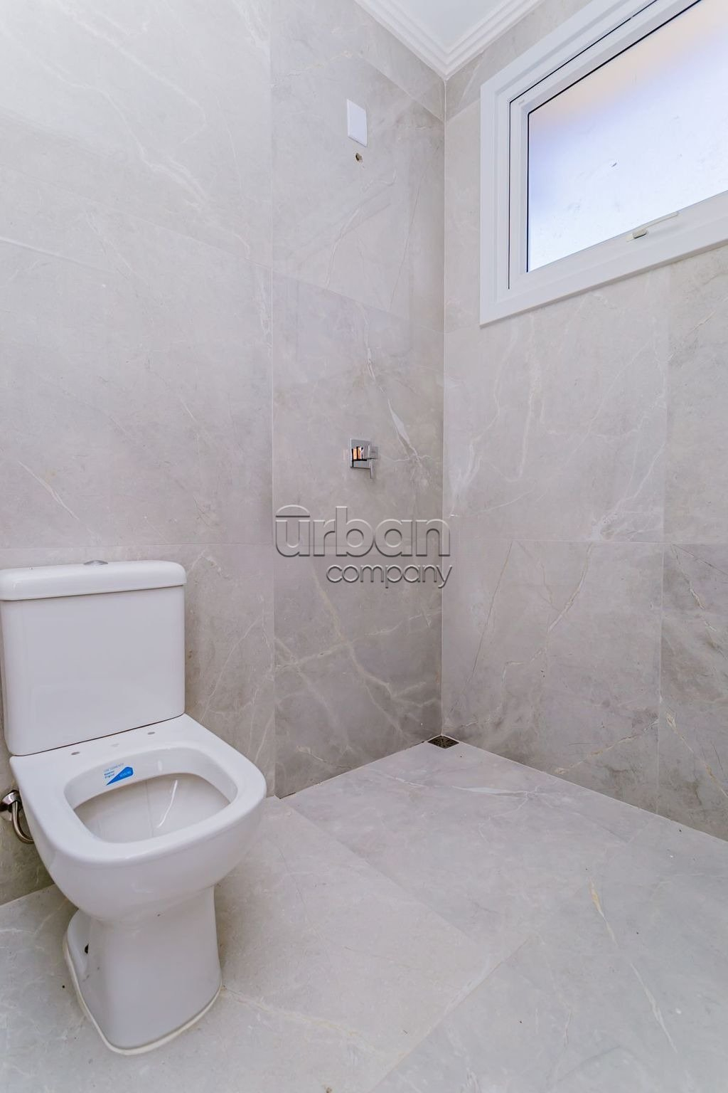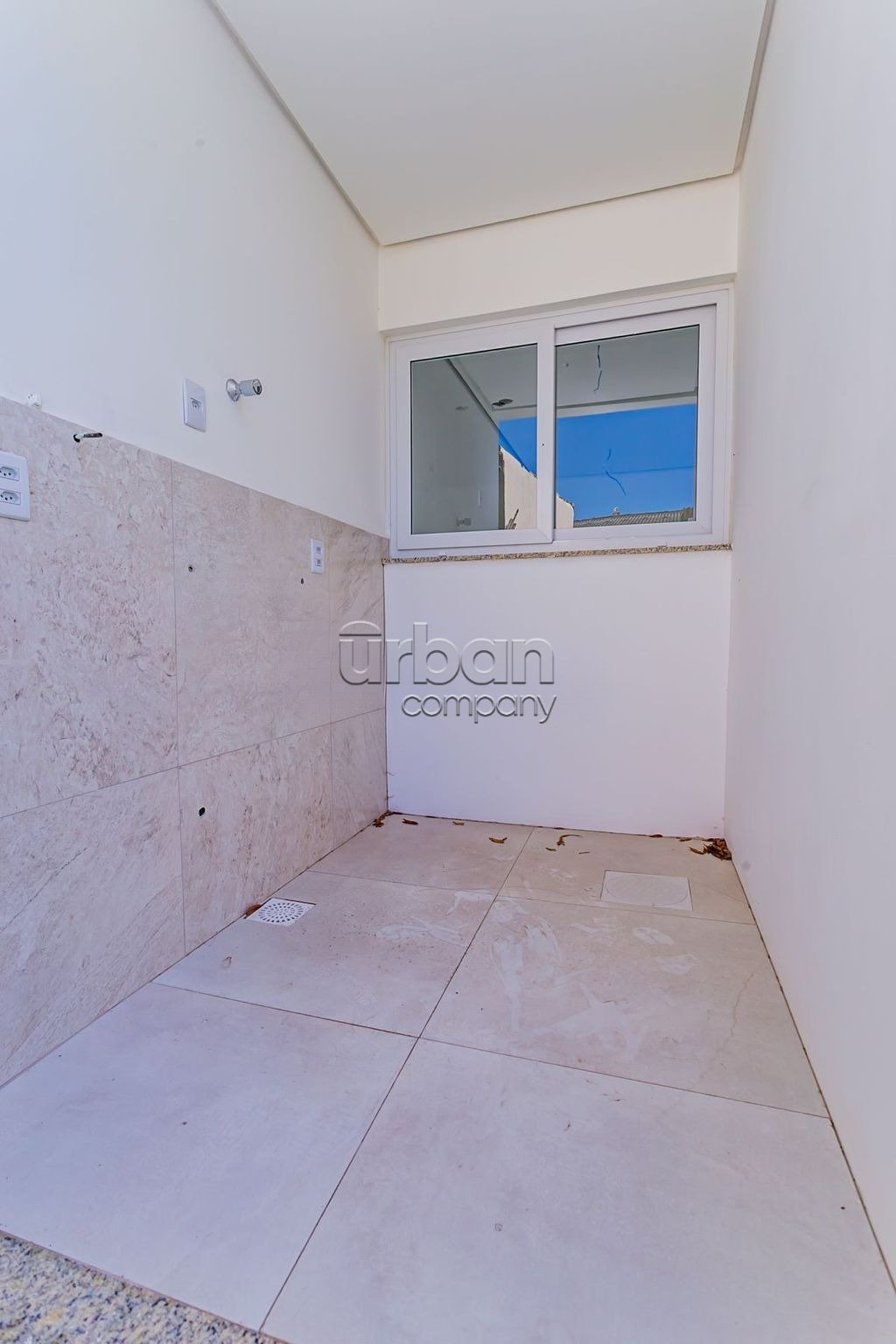 Casa com 150 m² privativos, 3 dormitórios, suíte casal com sacada, living para dois ambientes com sala de estar e jantar definida, churrasqueira e uma bela vista. Conta com 3 vagas de garagem. Espera para lareira, pátio com piscina.