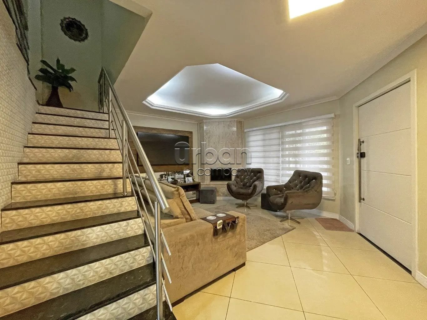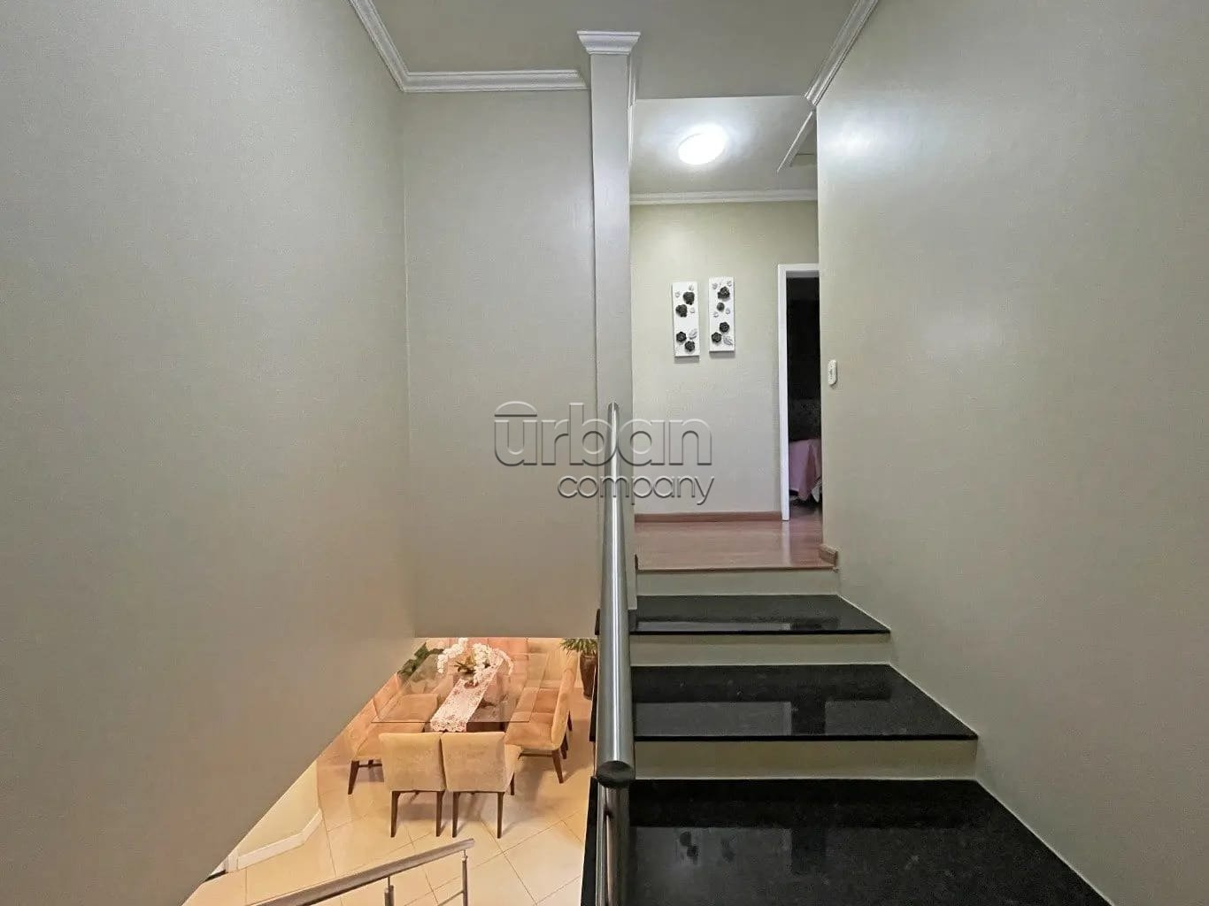 Casa com área privativa de 198 m², 3 dormitórios (incluindo 1 suíte) e uma espaçosa sala de estar/jantar com lareira.