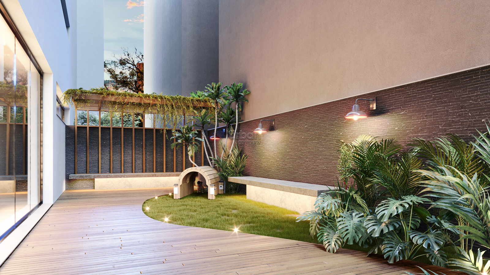 O condomínio dispõe de diversas facilidades, incluindo coworking, fitness, área externa de convivência no rooftop, espaço gourmet, e piscina aquecida.