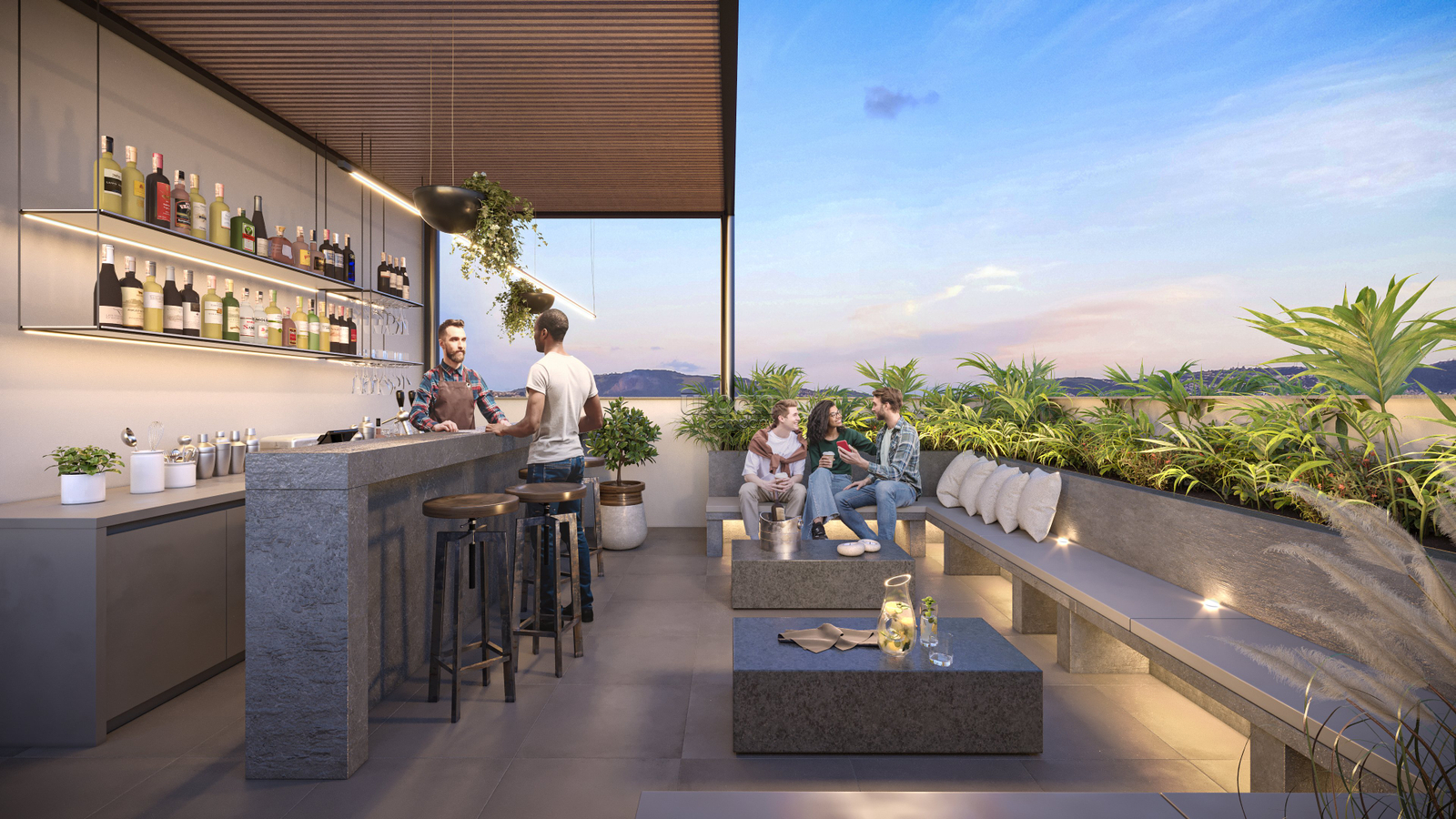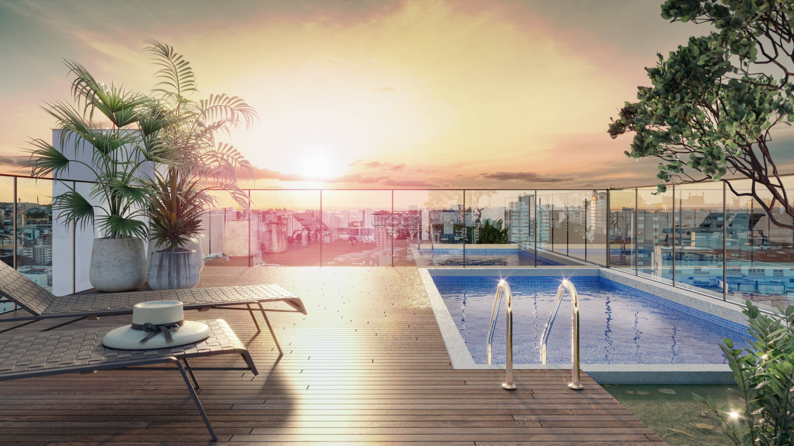 O Upper Barão possui infraestrutura de clube: piscina adulto, salão de festas, coworking, espaço fitness e rooftop.