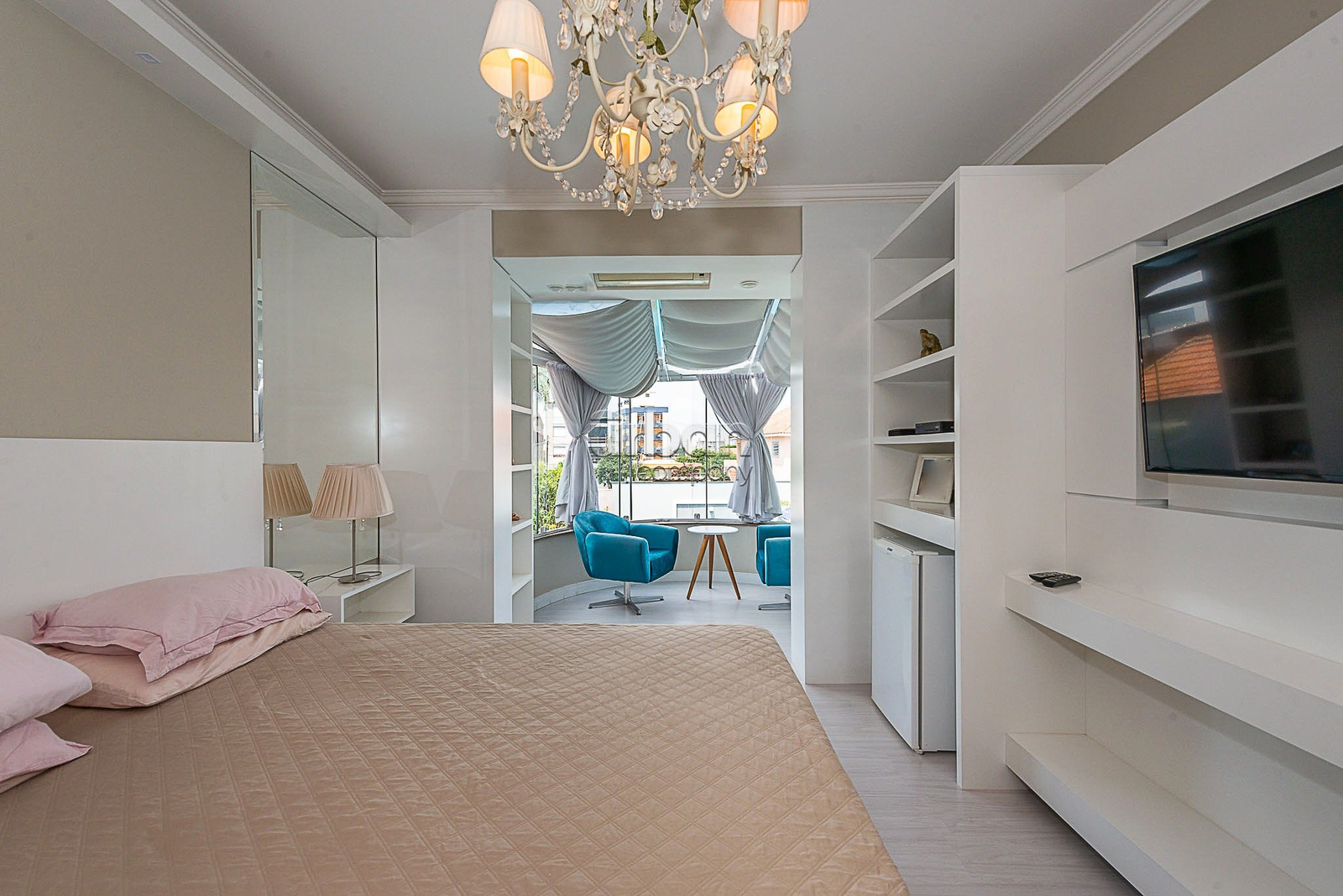 Equipada com ar condicionado e móveis planejados.