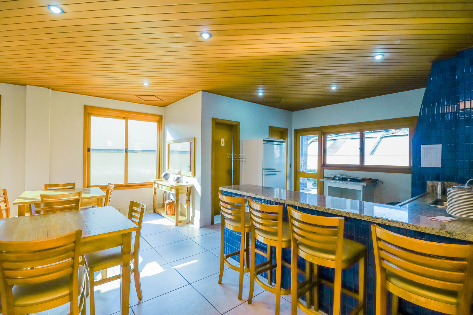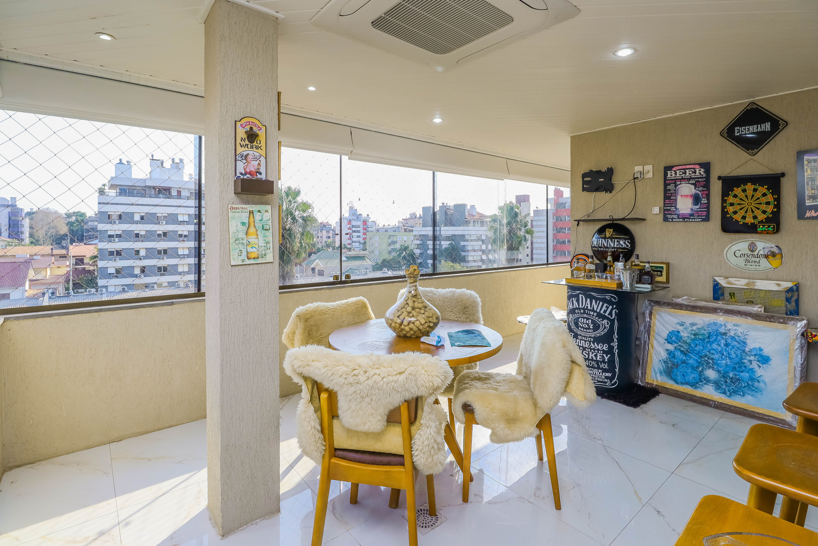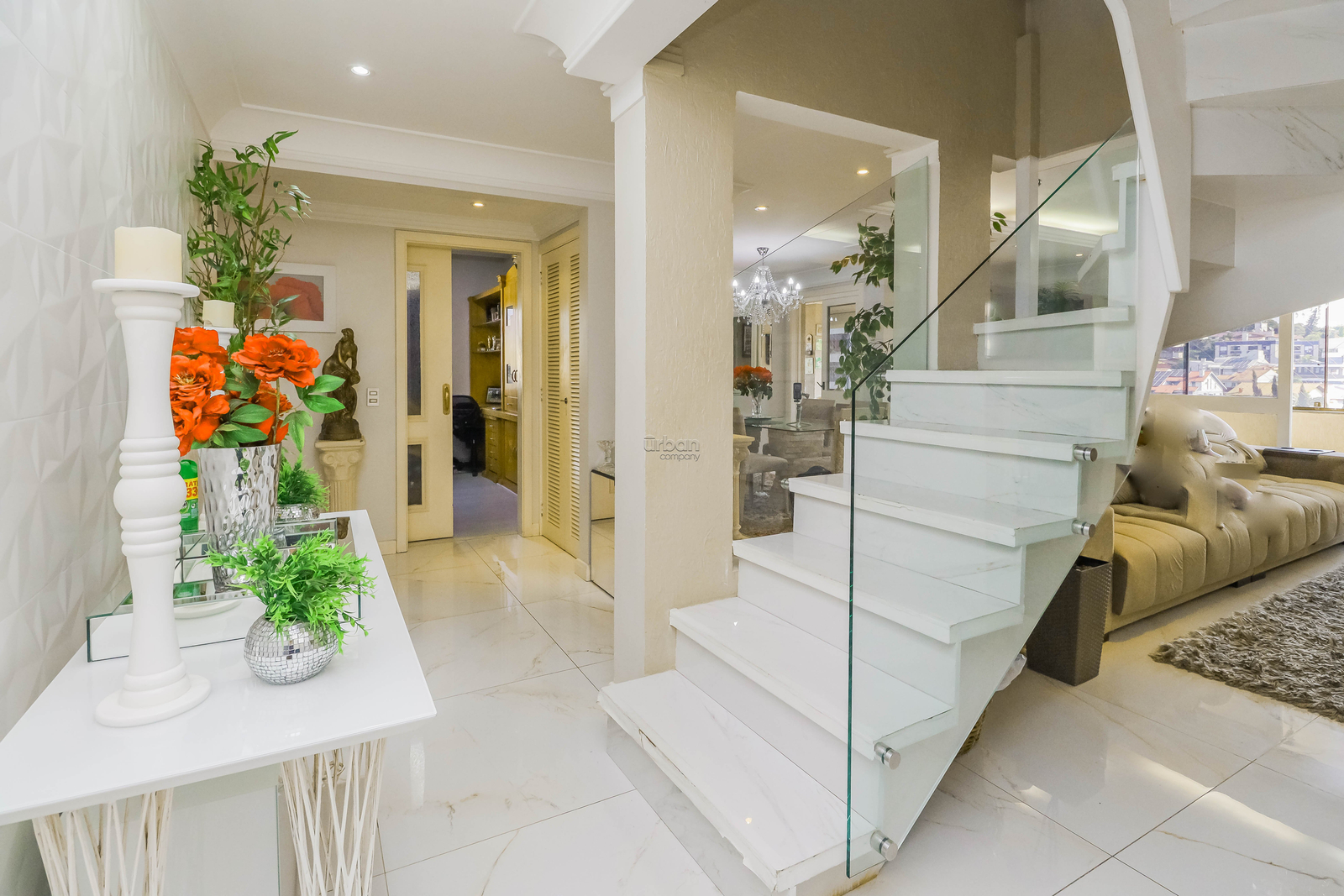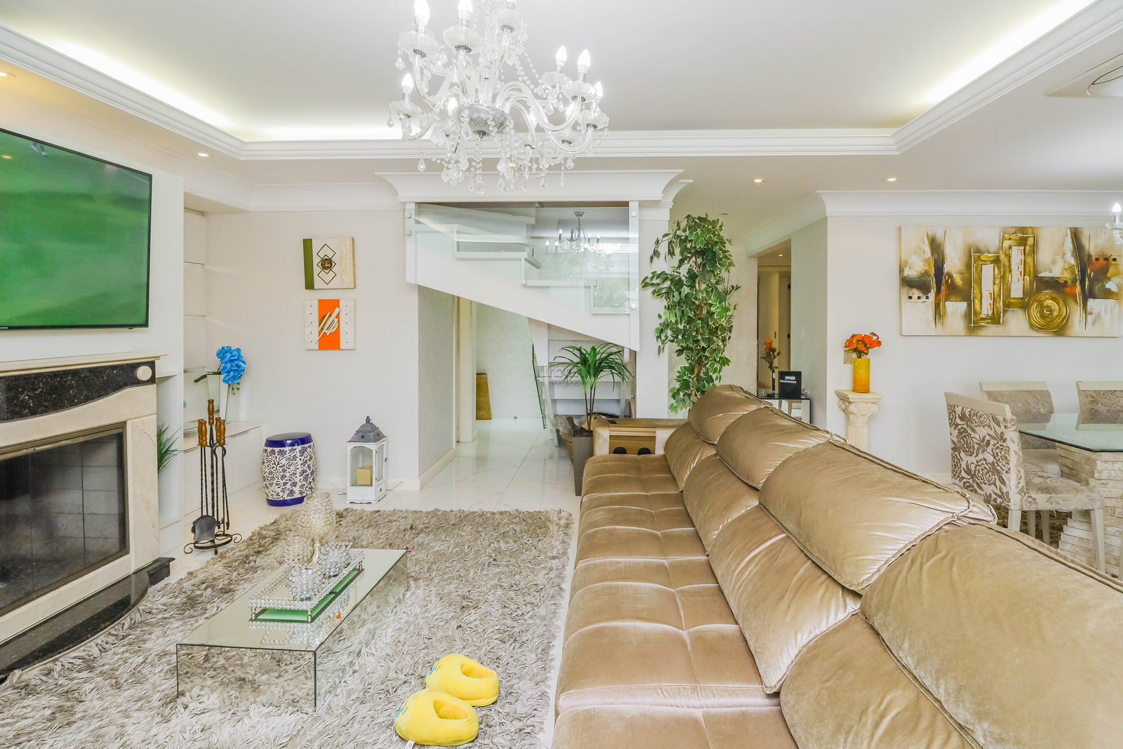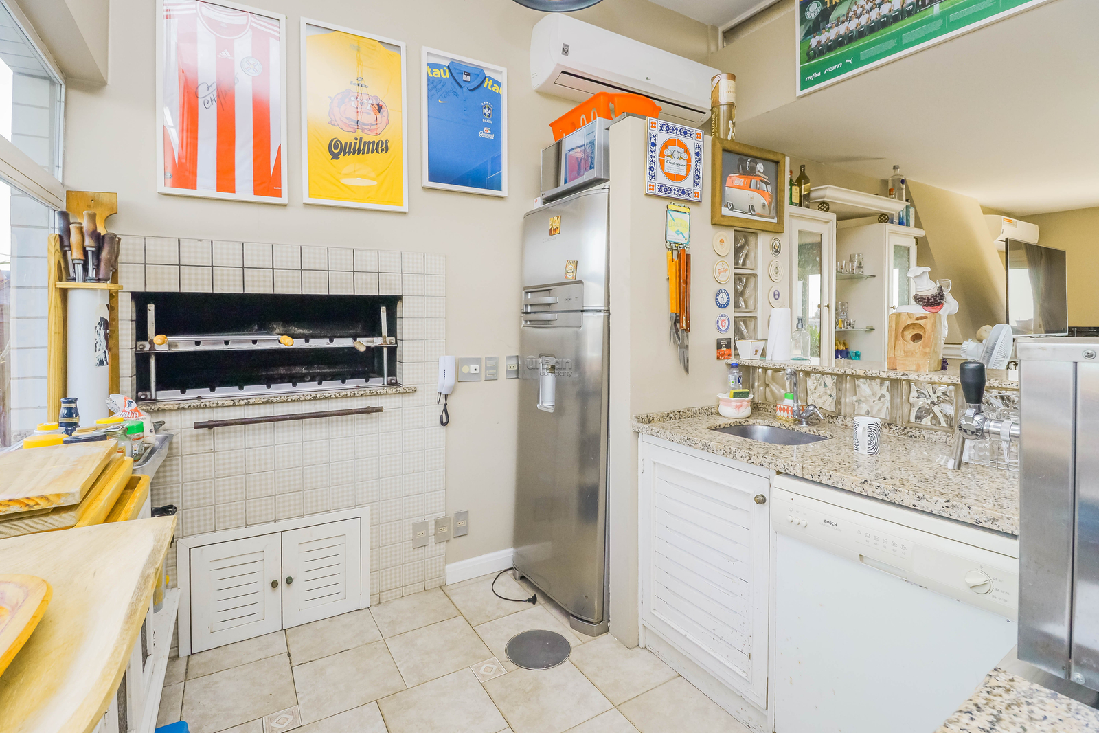 A cobertura possui 414 m² privativos, semimobiliada, 4 dormitórios sendo 1 suíte master com sacada, ampla sala de estar com lareira e sacada, sala de jantar com espaço gourmet com churrasqueira, cozinha montada e lavanderia.
