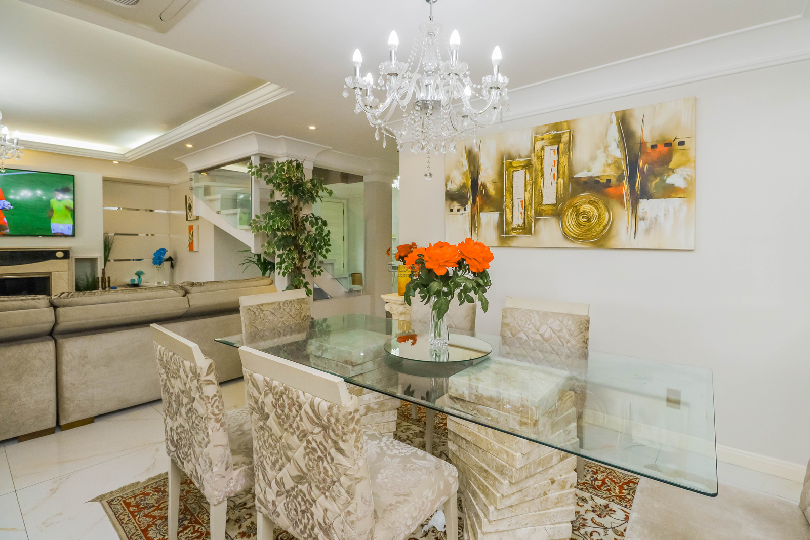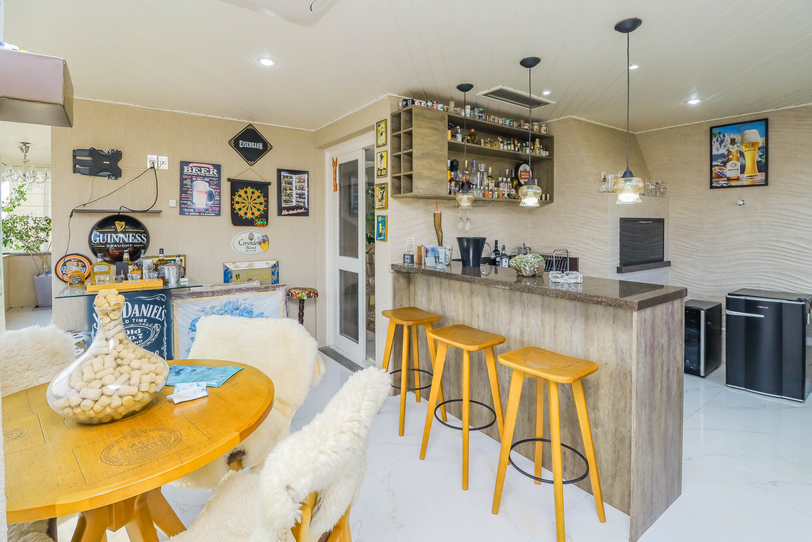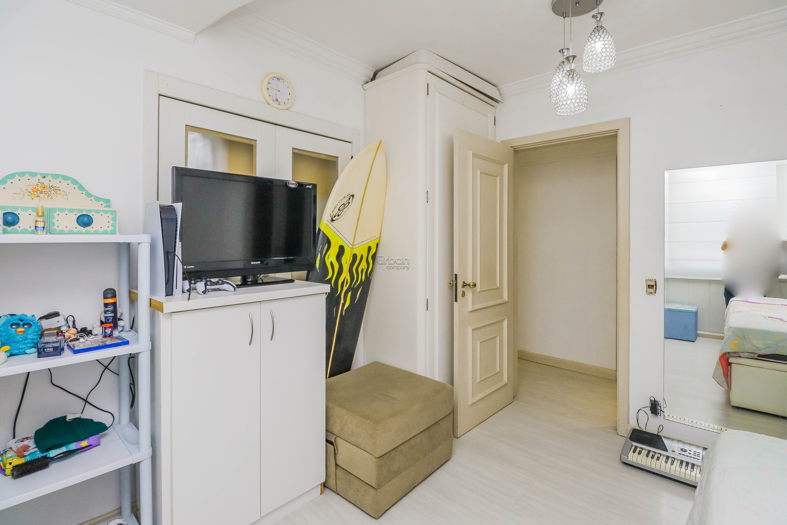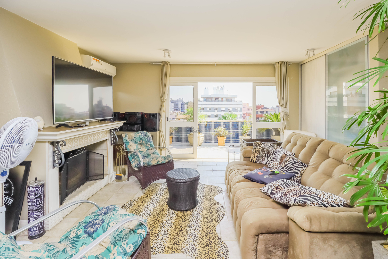 A cobertura possui 414 m² privativos, semimobiliada, 4 dormitórios sendo 1 suíte master com sacada, ampla sala de estar com lareira e sacada, sala de jantar com espaço gourmet com churrasqueira, cozinha montada e lavanderia.