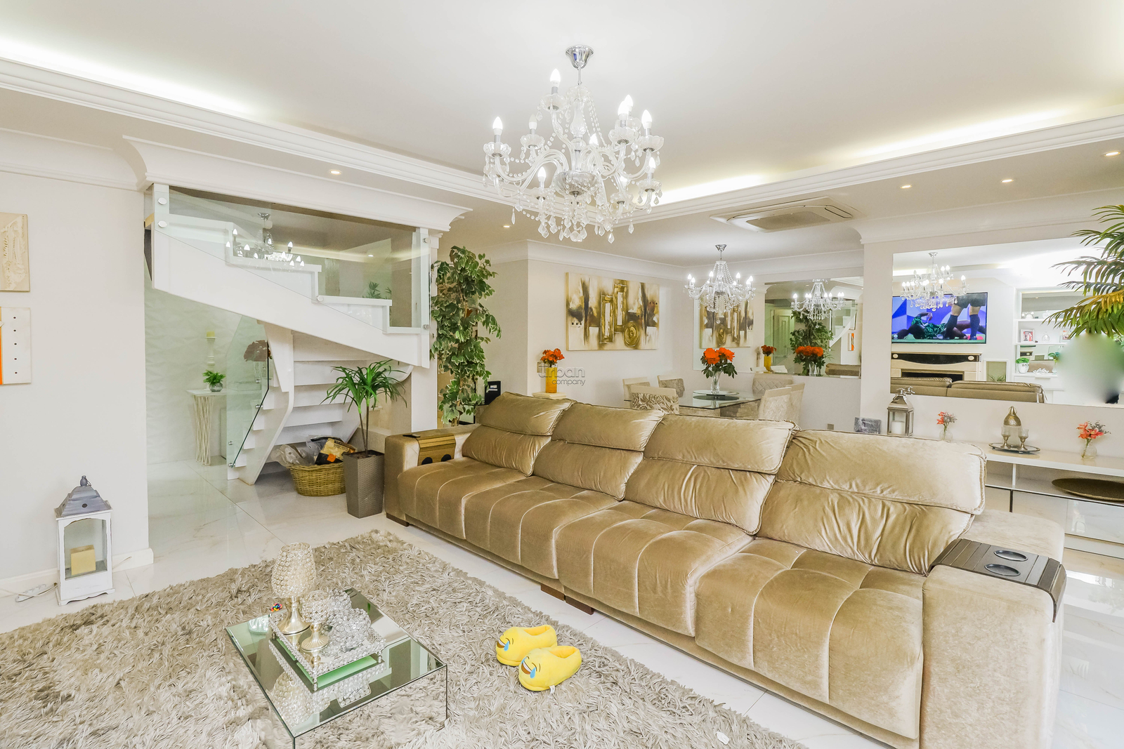 No 2º pavimento temos mais uma sala de estar com lareira e enorme sacada em L, espaço churrasco integrado a sala de jantar e amplo terraço com piscina aquecida.