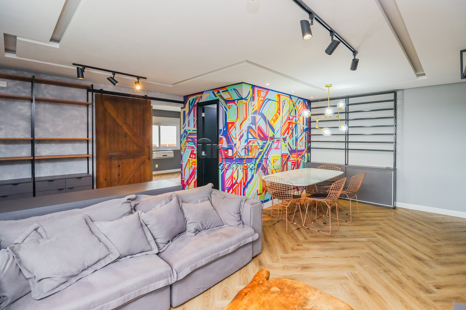 Apartamento com 66 m², amplo espaço social, cozinha americana com churrasqueira integrada, super bem decorado e equipado com linda marcenaria fixa.