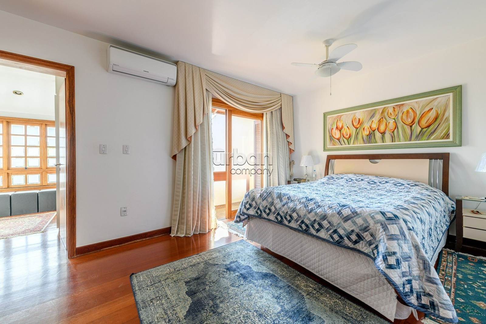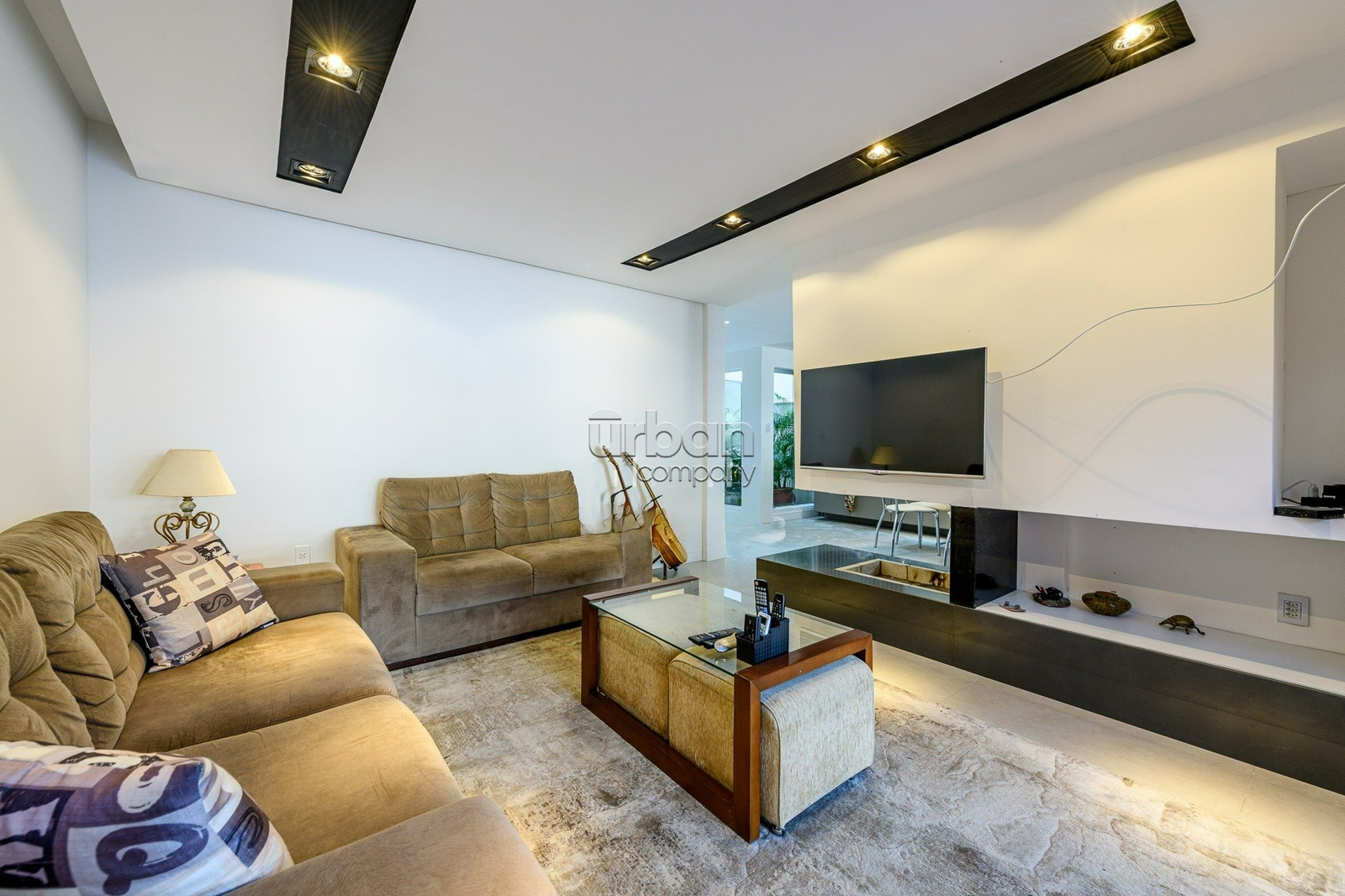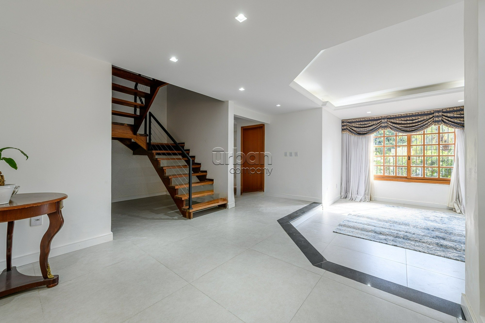 Casa semimobiliada com 310 m², hall de entrada, ampla área social com living para 3 ambientes, gabinete, sala de estar íntimo com lareira, jardim de inverno, sala jantar integrada a cozinha planejada, lavanderia, dependência de empregada, banheiro auxiliar.
