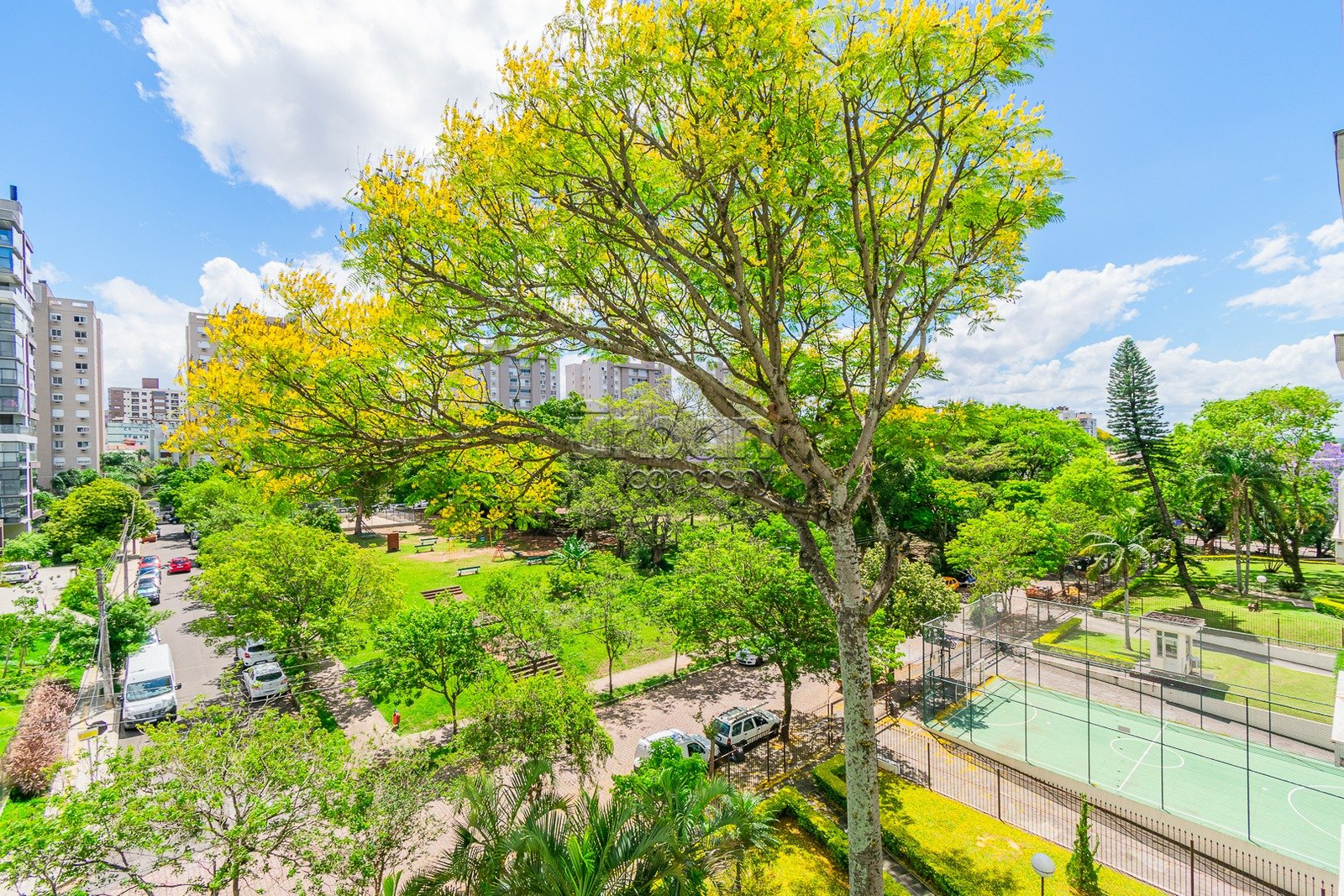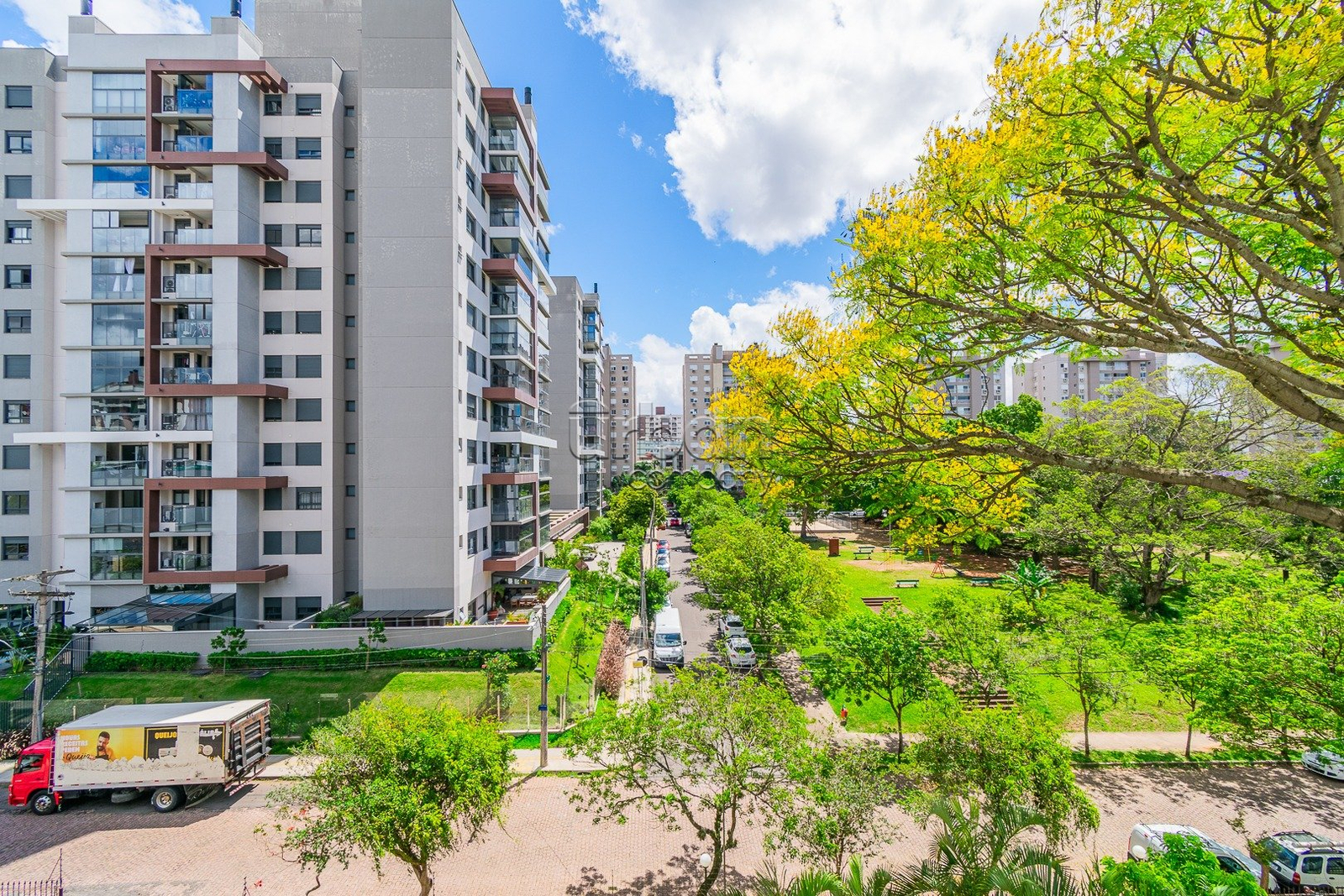 Apartamento com 3 dormitórios, sendo 1 suíte, banheiro social, lavabo, amplo living, sacada com vista para praça arborizada, cozinha sob medida e área de serviço integrada.