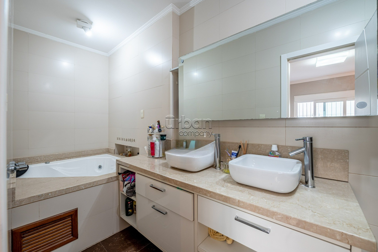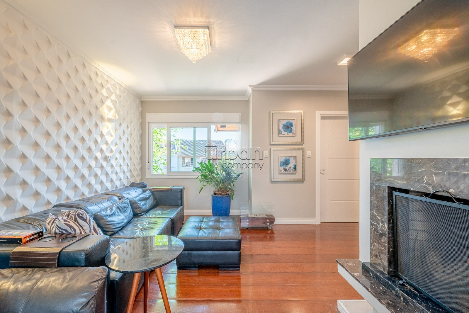 No segundo pavimento, um charmoso estar íntimo também com lareira convida ao relaxamento. As três suítes oferecem conforto e privacidade, destacando-se a suíte máster, que dispõe de um closet, um amplo banheiro com hidromassagem e uma sacada exclusiva.