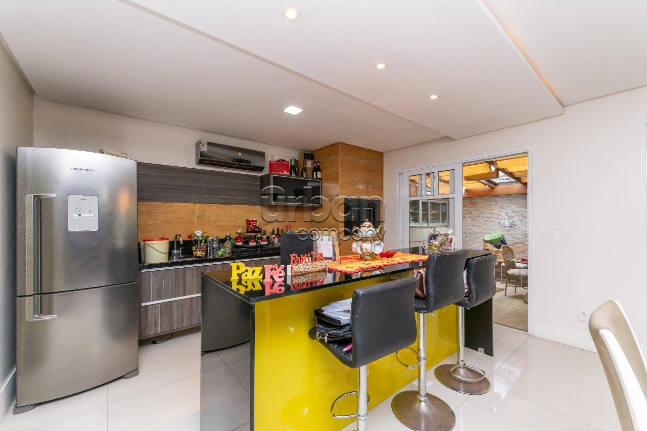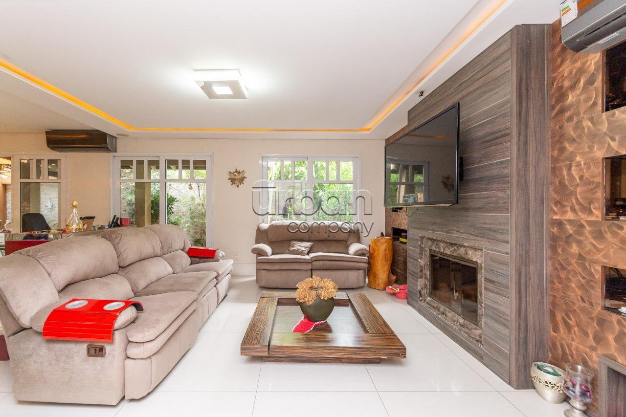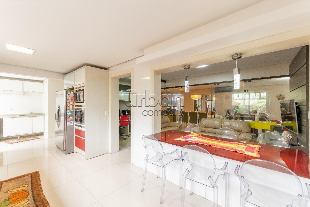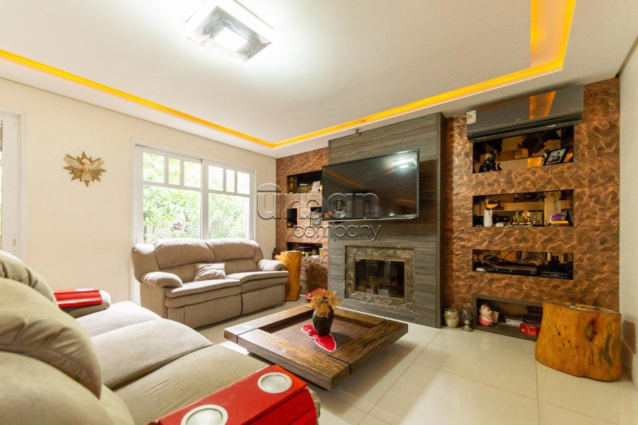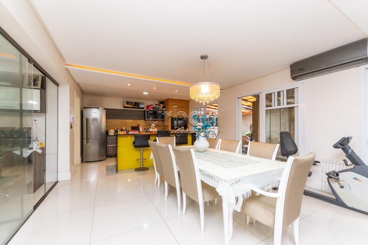 Casa com 446m² de área privativa, composta por 4 dormitórios sendo 4 suites, uma master com banheira, lavabo, lareira, churrasqueira, escritório, dependência de empregada. cozinha separada e duas amplas salas, todos ambientes com móveis sob medida de excelente qualidade e ainda água quente em toda casa. Pátio nos fundos e vaga coberta para 4 automóveis.