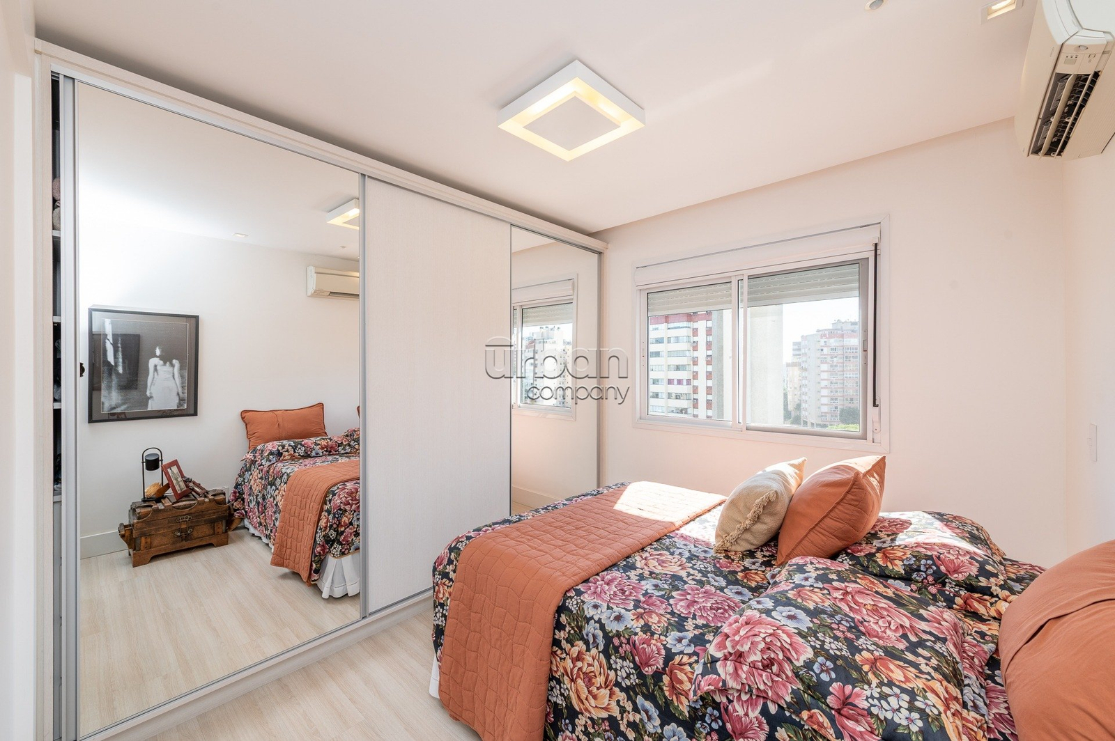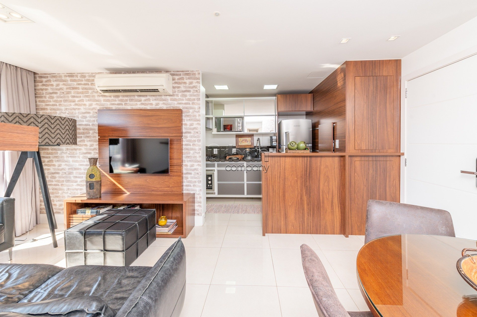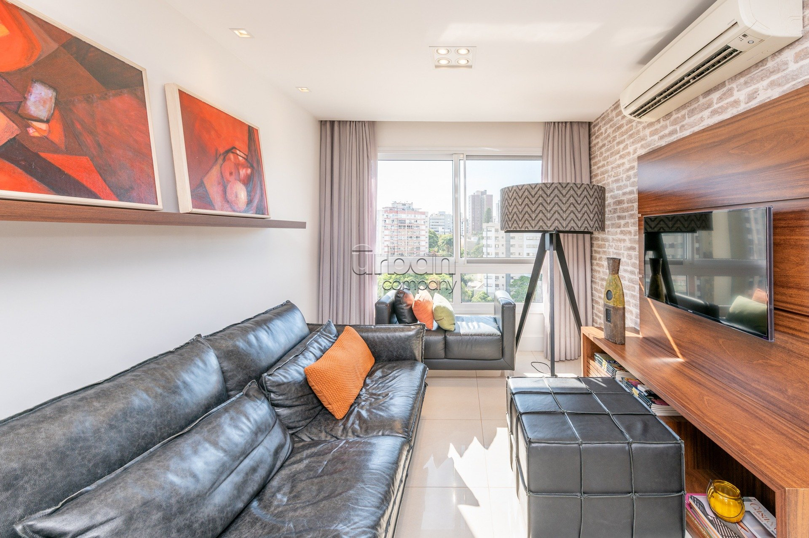 O imóvel possui 62 m² privativos, com living para dois ambientes, churrasqueira, banheiro social, cozinha americana e área de serviço. Situado em andar alto, conta com ótima iluminação natural e excelente orientação solar.
