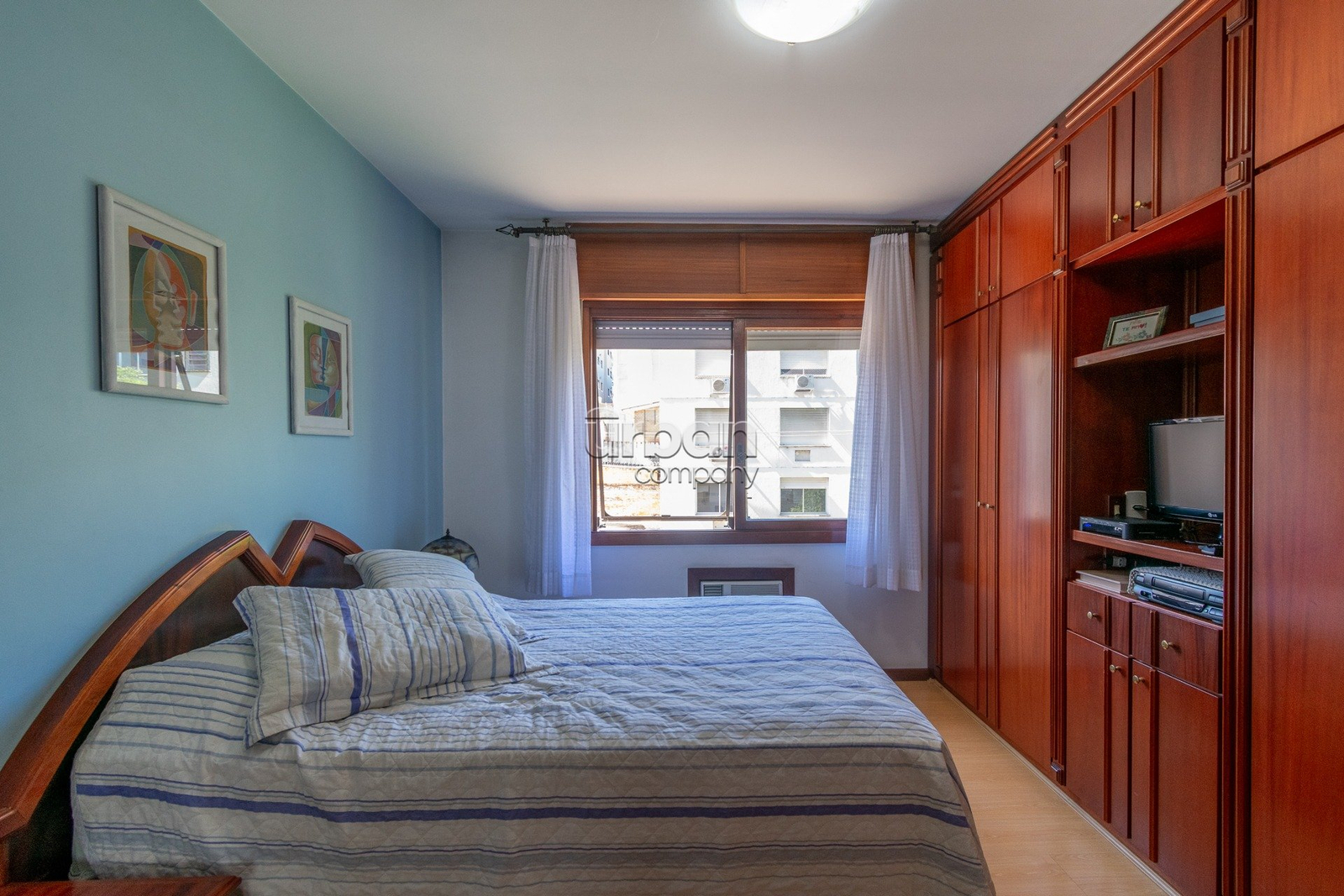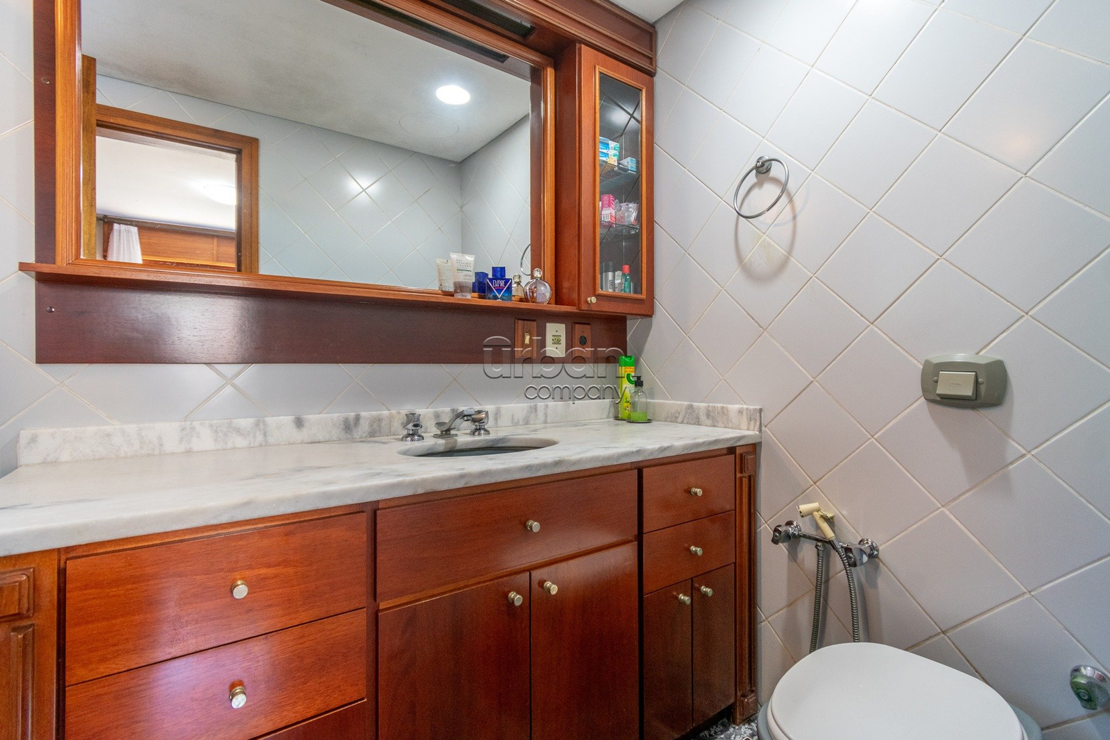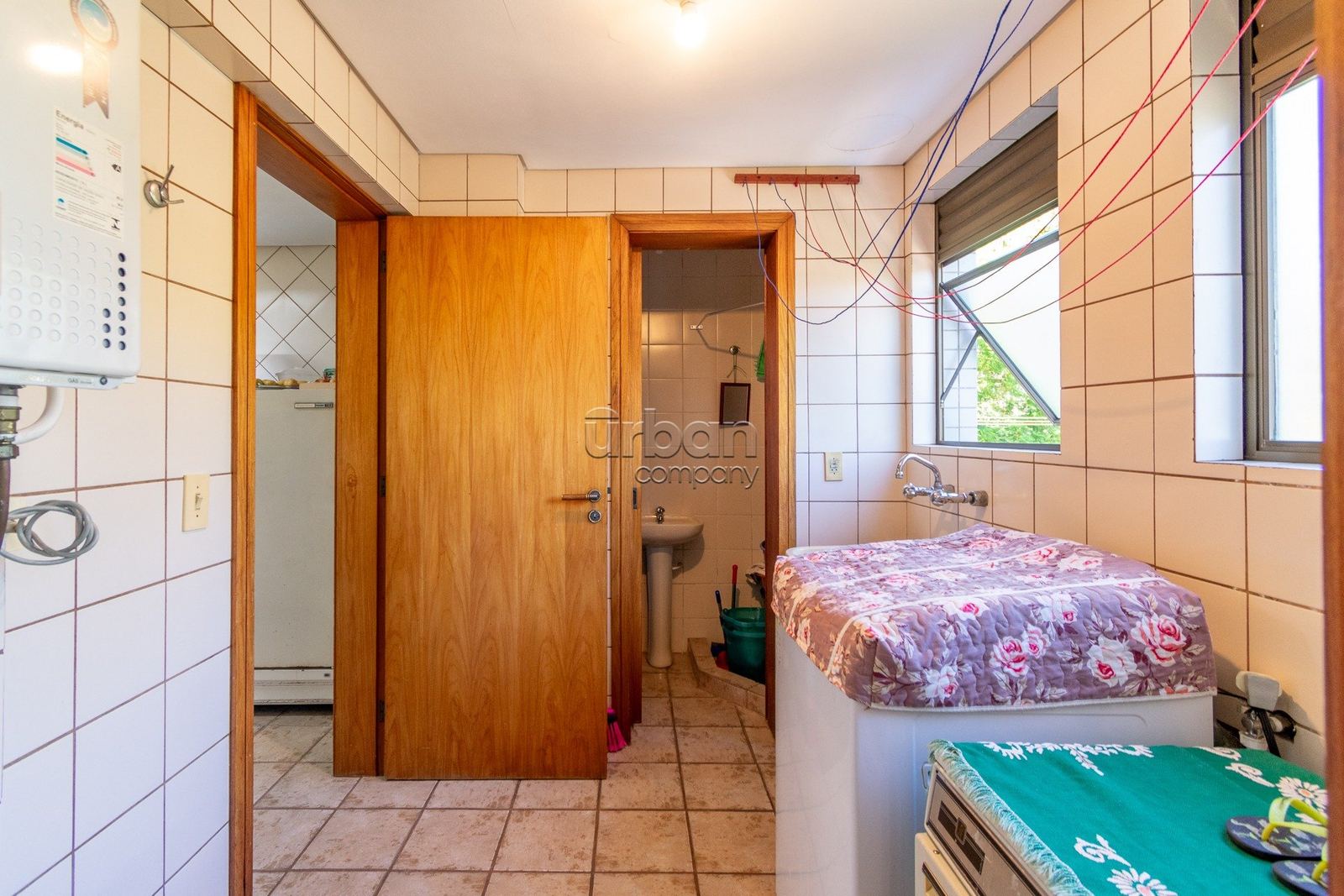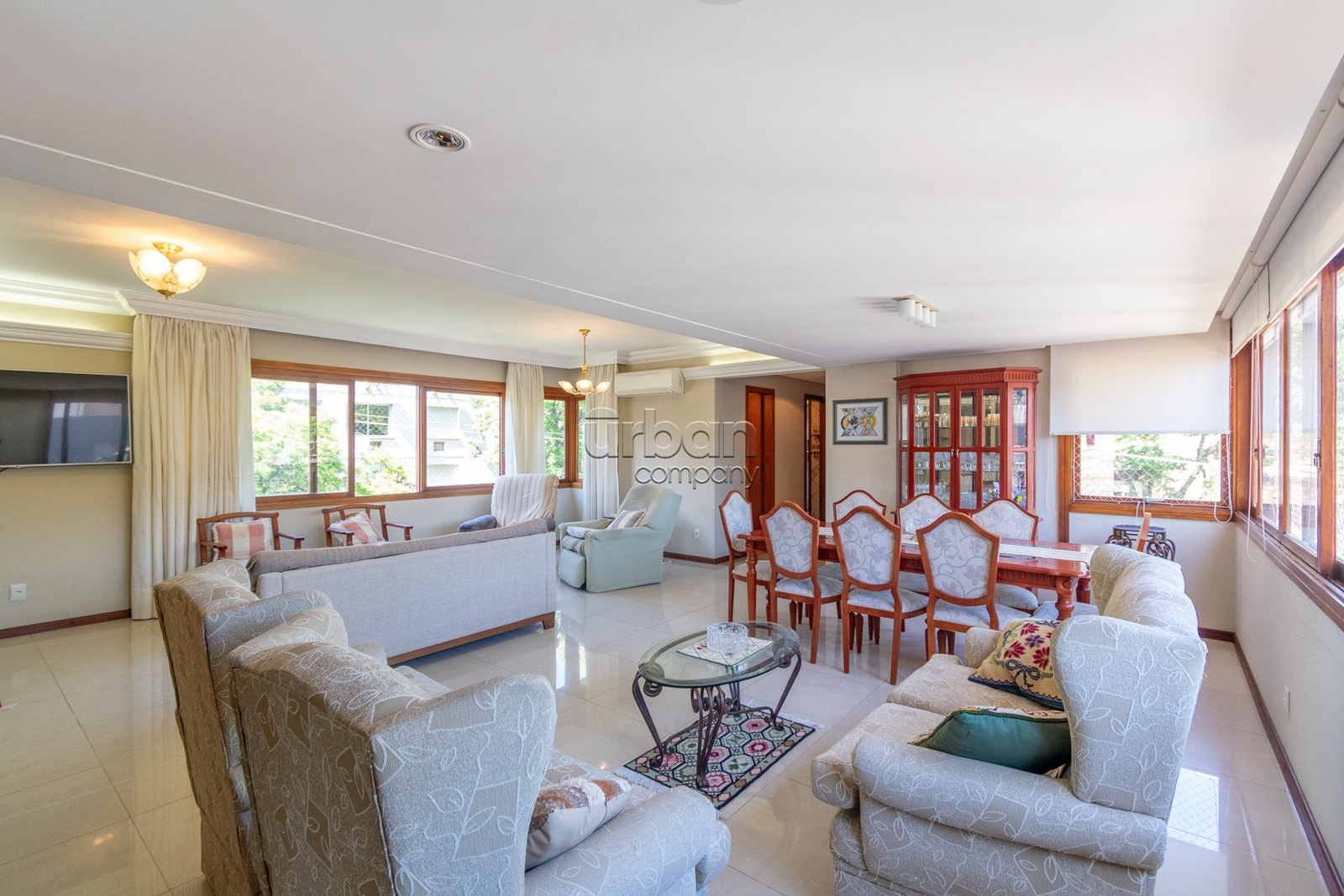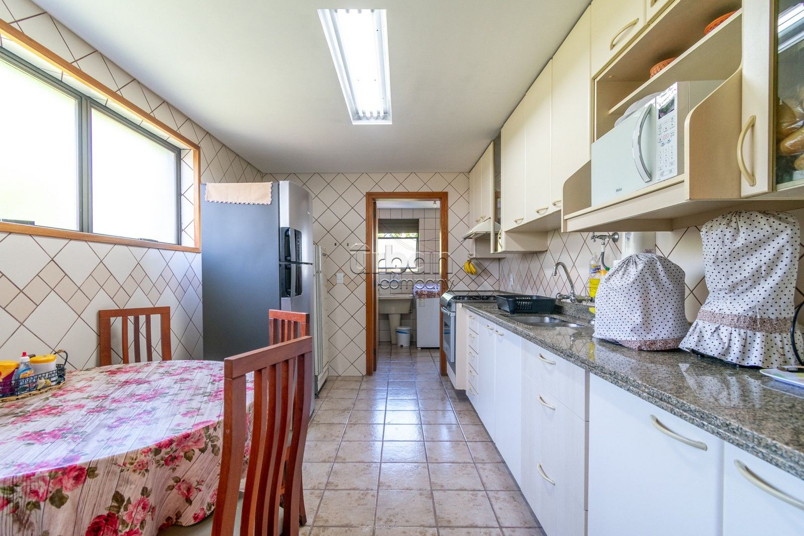 Apartamento com175 m², amplo living ensolarado para 3 ambientes, com grandes janelas que garantem luminosidade, lareira na sala de estar e espaço churrasco. Completam a área social um lavabo e um gabinete, além de uma copa-cozinha mobiliada, área de serviço, banheiro auxiliar e dependência.