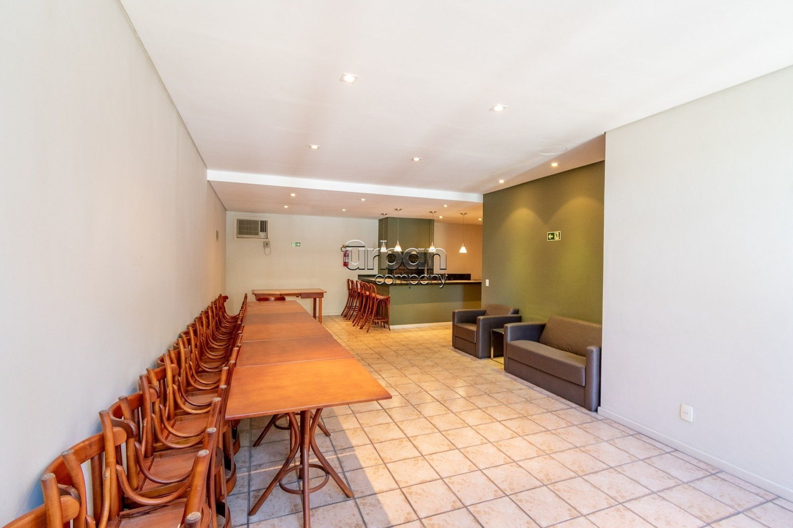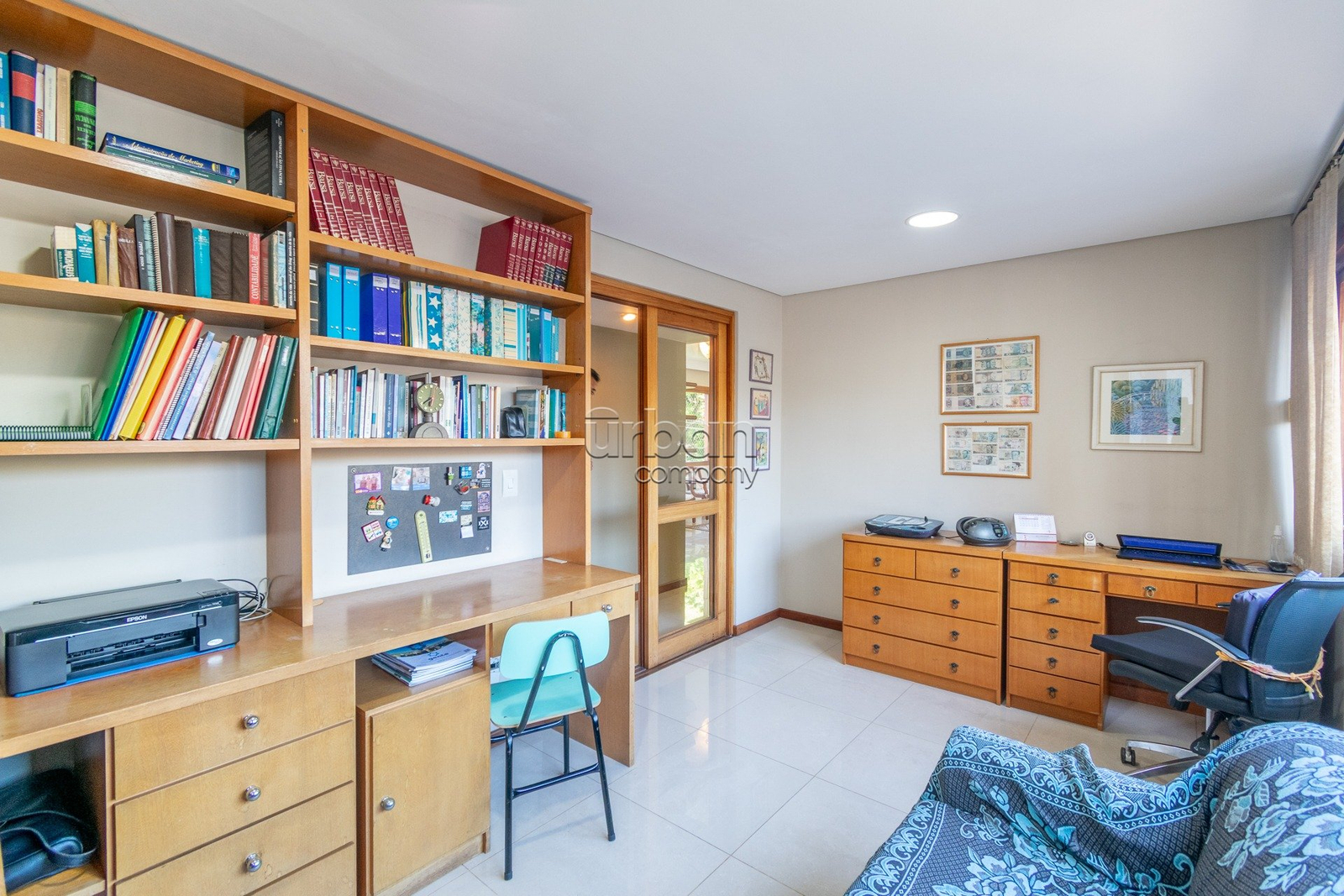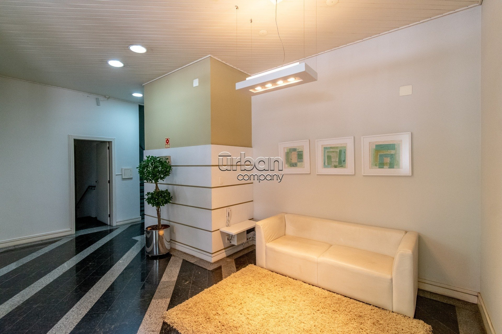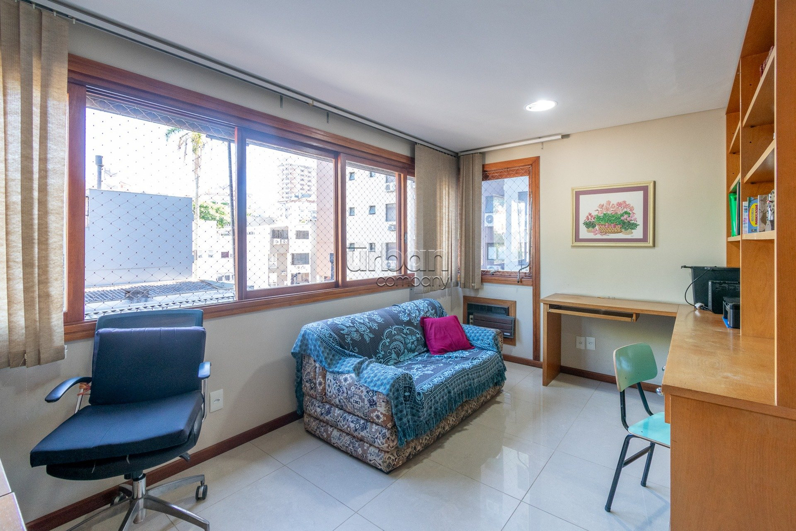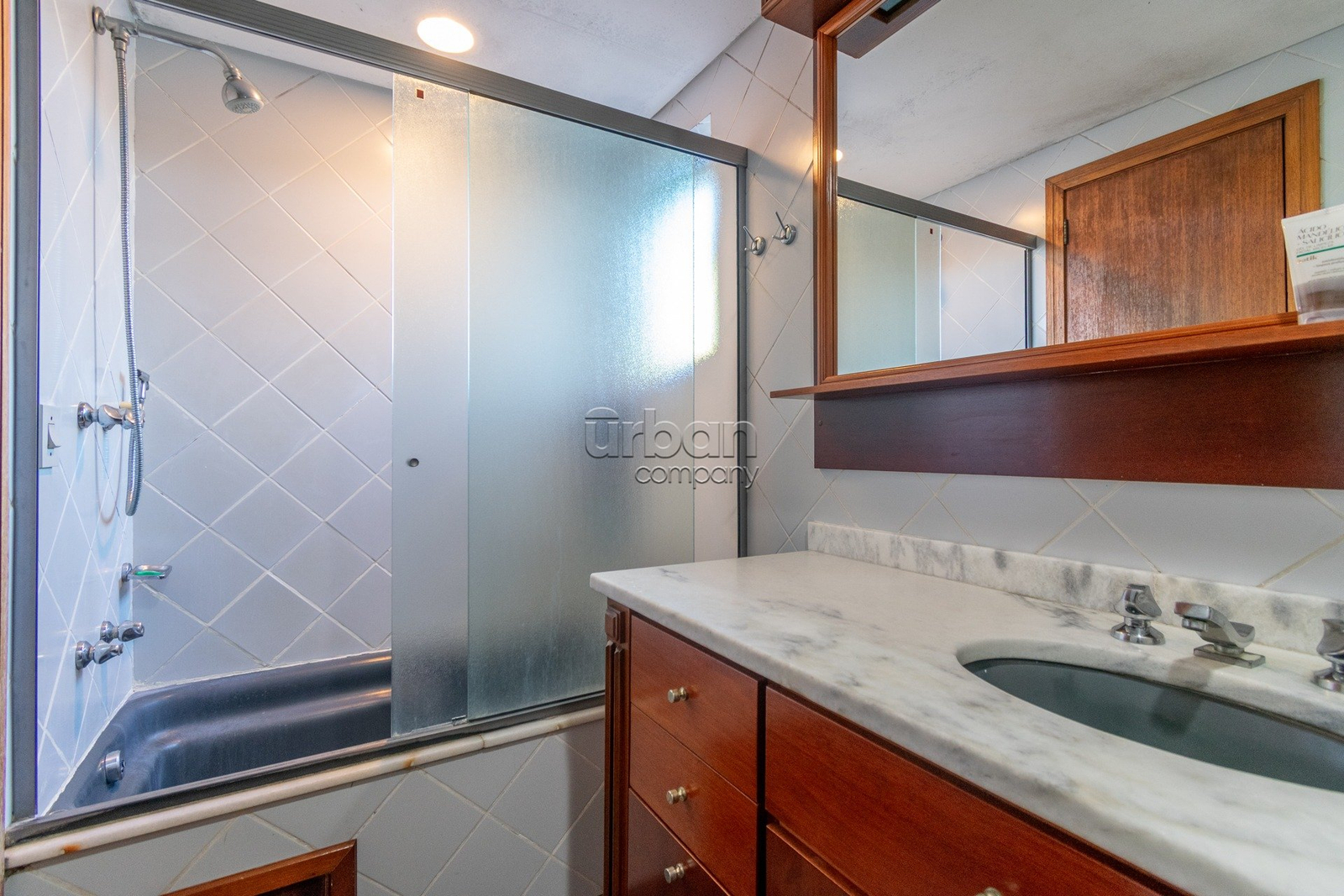 Apartamento com175 m², amplo living ensolarado para 3 ambientes, com grandes janelas que garantem luminosidade, lareira na sala de estar e espaço churrasco. Completam a área social um lavabo e um gabinete, além de uma copa-cozinha mobiliada, área de serviço, banheiro auxiliar e dependência.