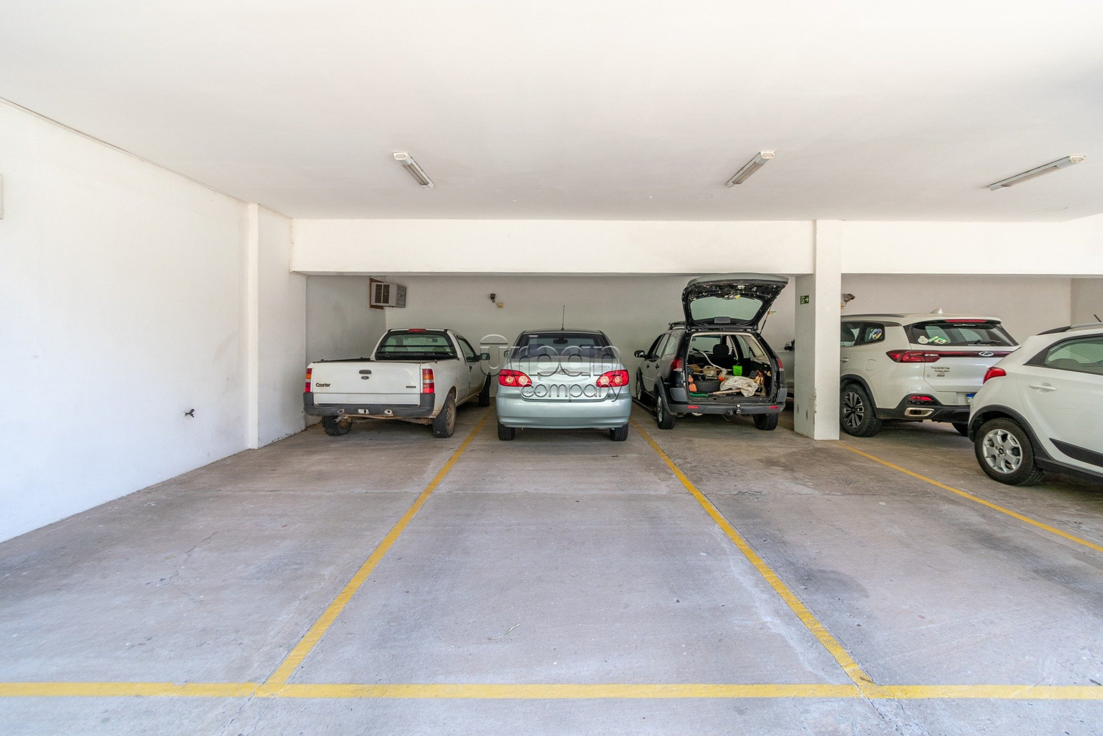 O apartamento oferece 3 vagas de garagem, sendo 1 dupla e 1 simples, além de um depósito.