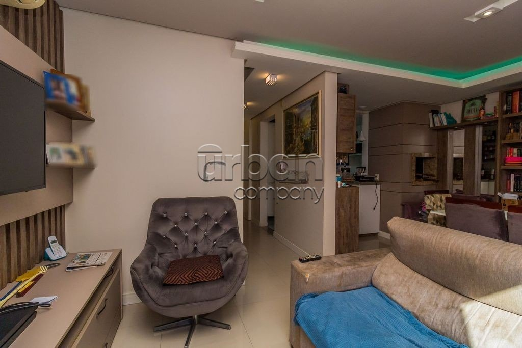 O living é composto por dois ambientes, equipado com lareira e teto rebaixado em gesso. A cozinha integrada com churrasqueira.