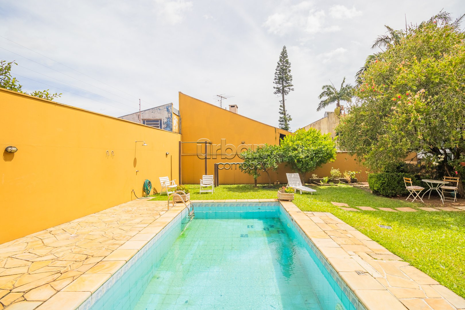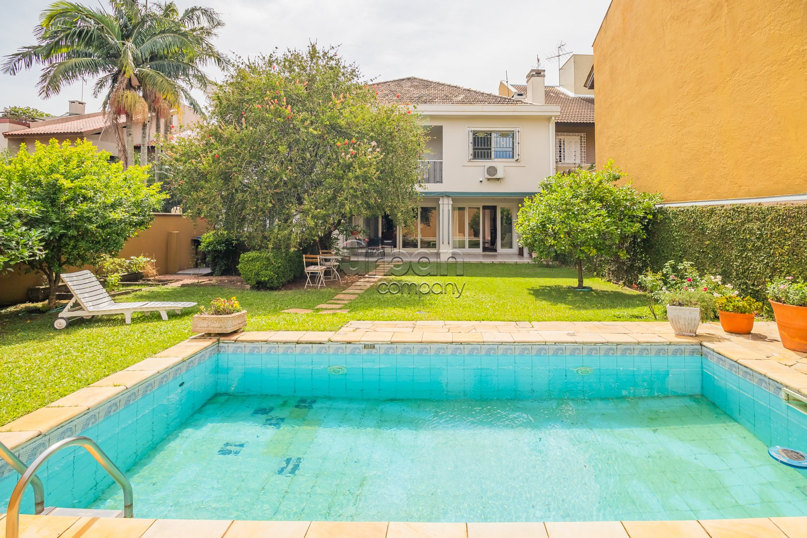 Piscina com excelente orientação solar, cercada por um ambiente seguro e privativo.