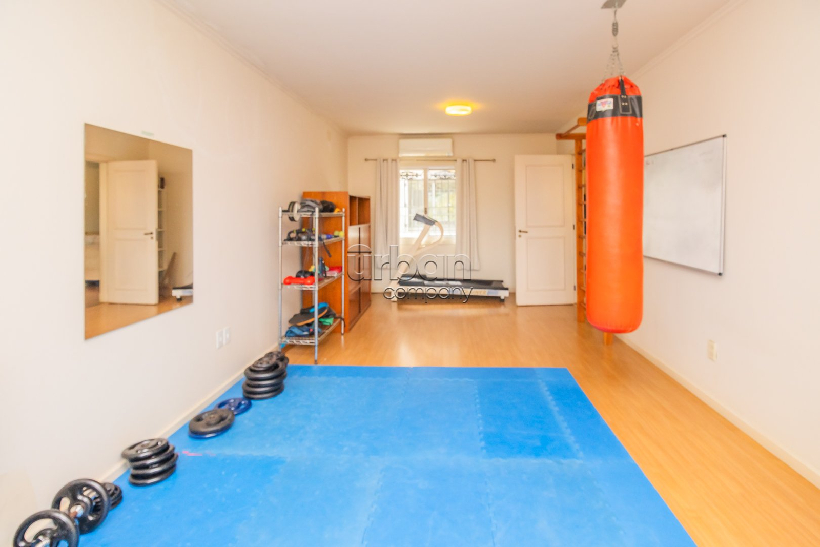 Academia privativa com estrutura para treinos completos.