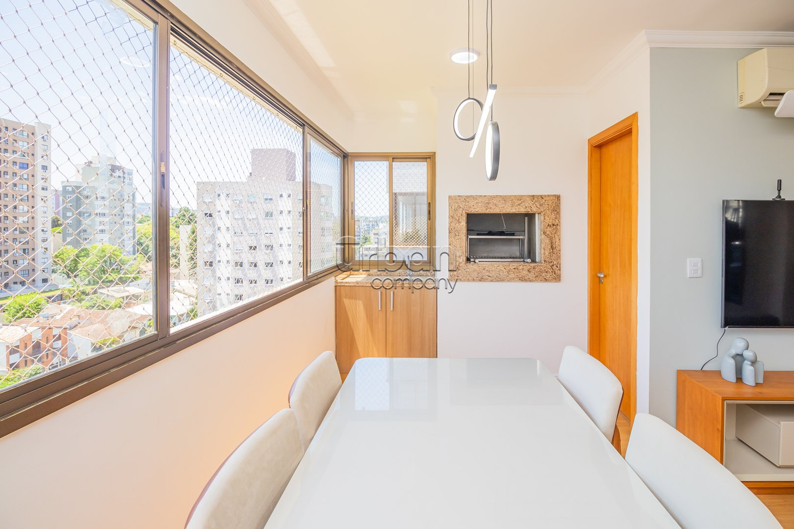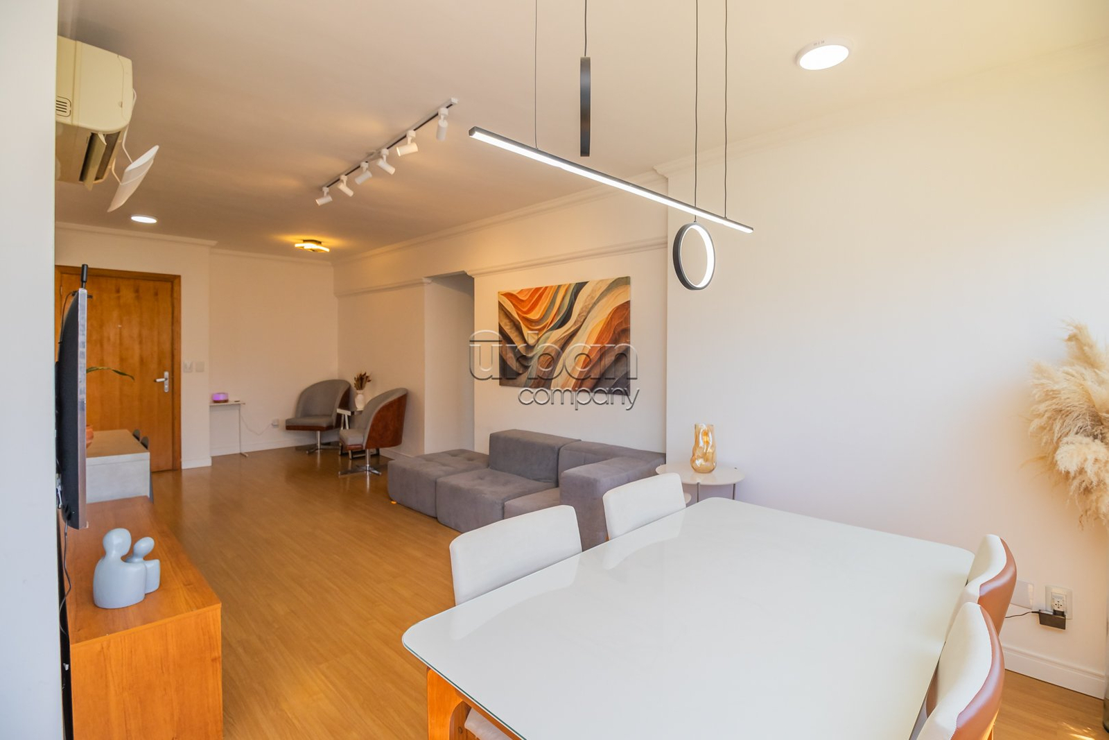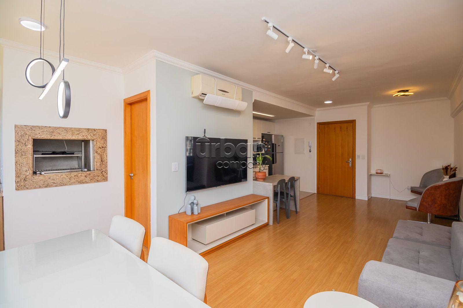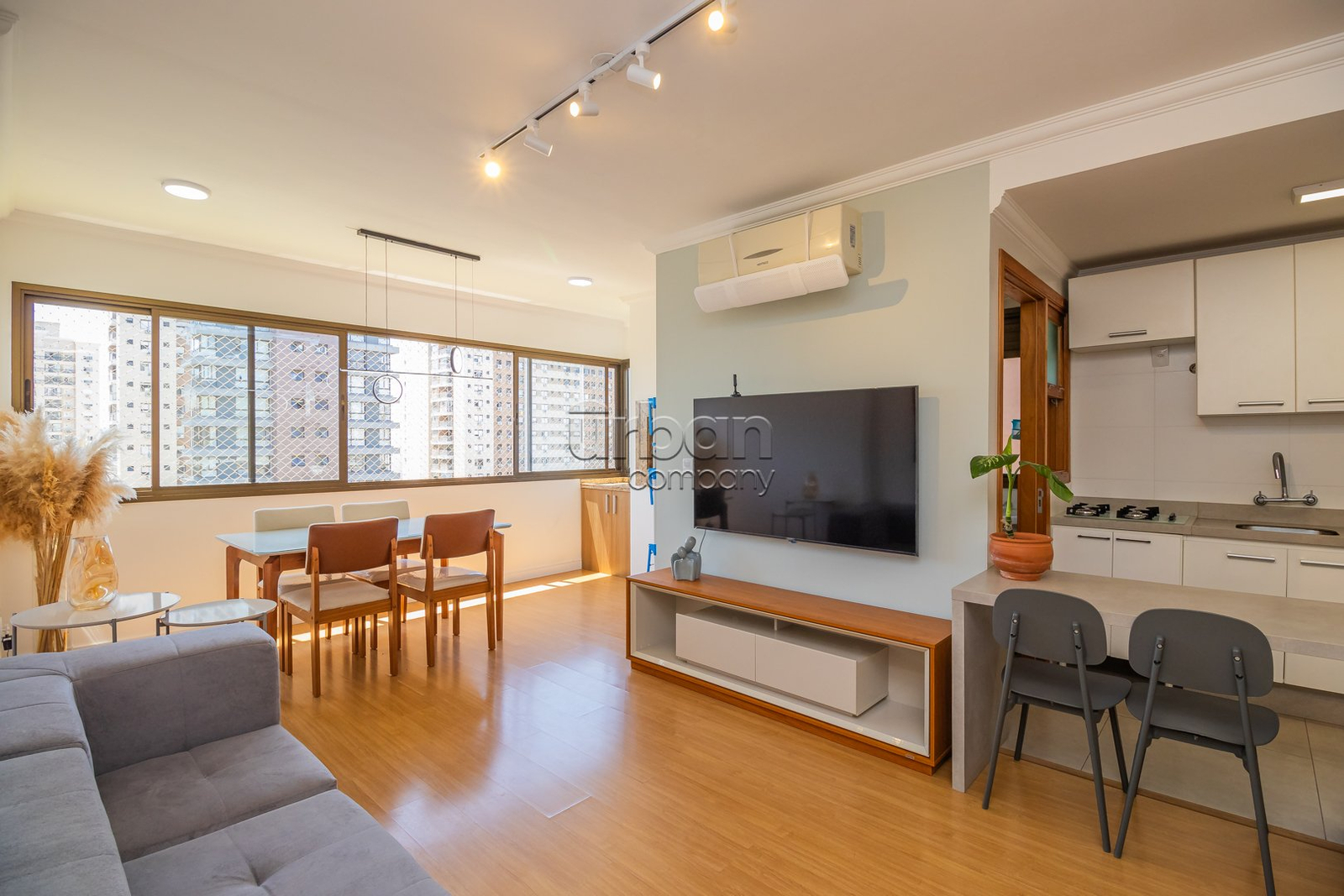O imóvel conta com um amplo living para dois ambientes, espaço gourmet integrado à cozinha equipada com móveis planejados, e área de serviço separada. São 2 dormitórios, sendo uma suíte, e um banheiro social, todos com acabamentos de alto padrão e ventilação direta.