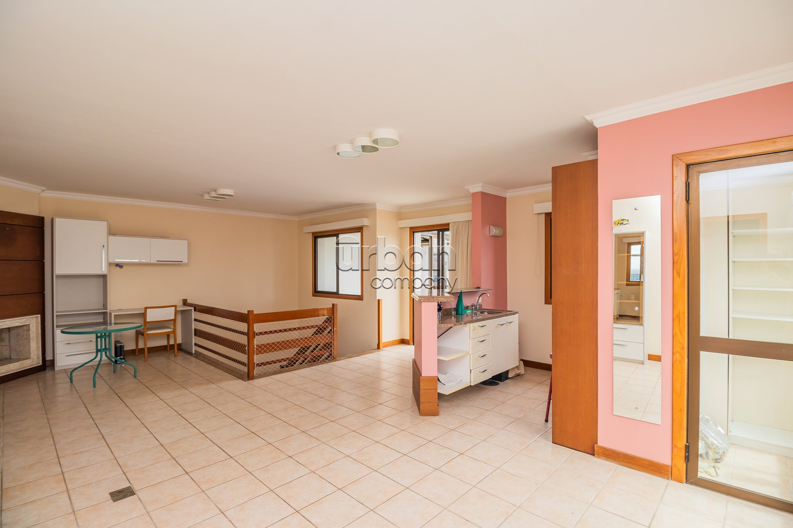 No andar superior, você encontrará um amplo living com lareira, um espaço gourmet com churrasqueira, um escritório e um terraço com piscina, perfeito para momentos de lazer e relaxamento. O imóvel está em excelente estado de conservação e está desocupado, facilitando a visitação.