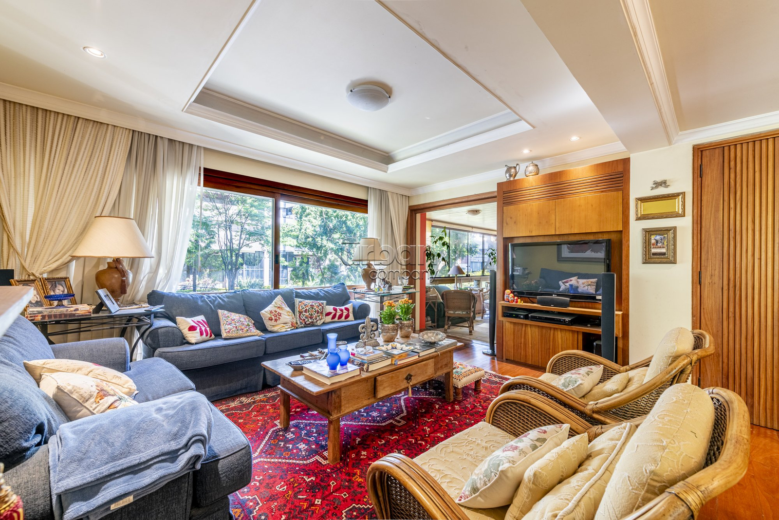 Ao entrar, você será recebido por um elegante hall de entrada, seguido por um amplo living para dois ambientes com piso em taboão, que confere charme e aconchego ao ambiente. O apartamento também possui um lavabo e uma sacada fechada com churrasqueira, ideal para momentos de confraternização.